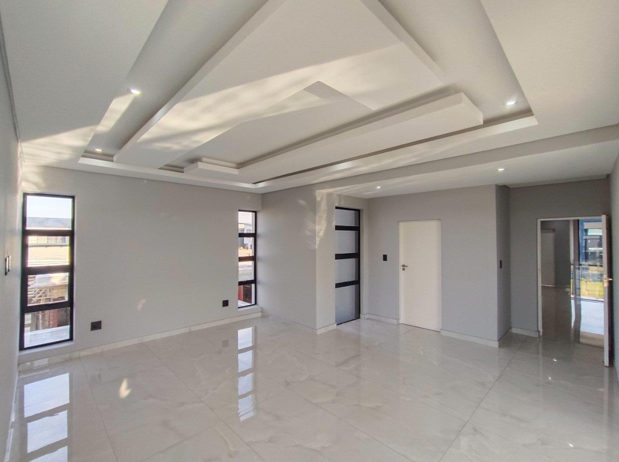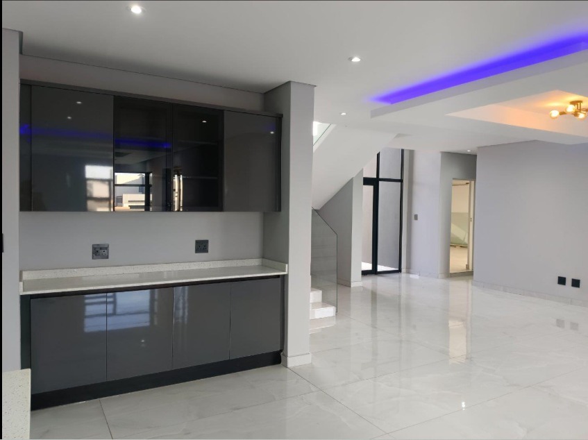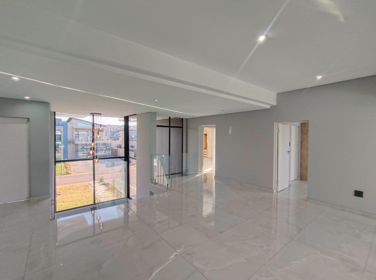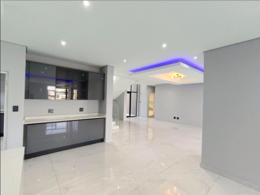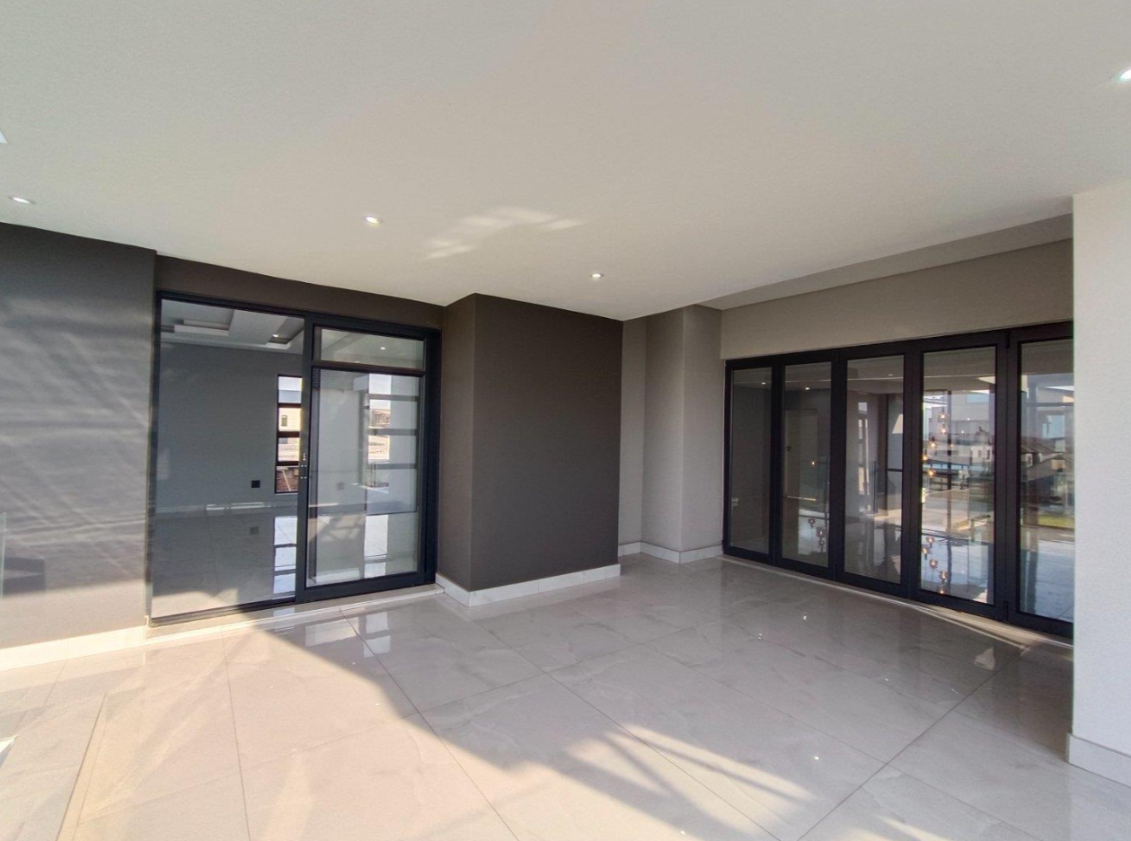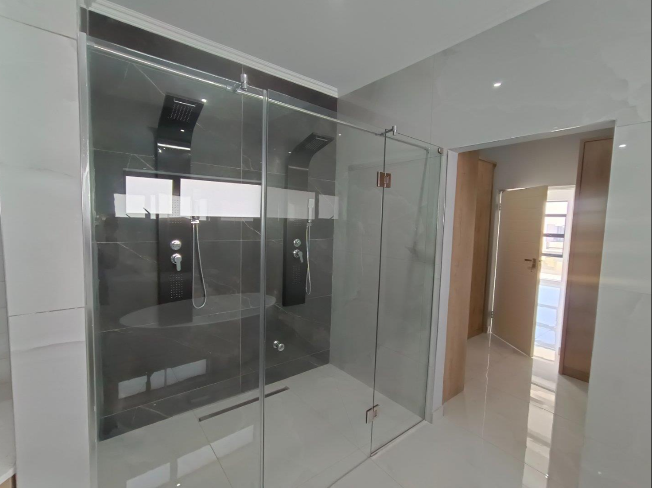 Discover contemporary luxury within the prestigious Six Fountains Residential Estate in Pretoria. This striking 5-bedroom, 5-bathroom residence boasts a modern architectural design with a sophisticated grey and white facade, large windows, and elegant glass balcony railings, creating an impressive kerb appeal. Spanning a generous 504 sqm on a 756 sqm erf, this home offers ample space for discerning families. The interior unfolds into expansive open-plan living areas, featuring two lounges and a dedicated dining room, perfect for both intimate gatherings and grand entertaining. The heart of the home is a sleek, modern kitchen, equipped with high-gloss cabinetry, a large island with integrated appliances, and polished tiled flooring throughout. Enhanced by special lighting, air conditioning, and a cozy fireplace, comfort and style are paramount. Accommodation includes five well-appointed bedrooms and five bathrooms, with three offering private en-suite facilities, alongside a convenient guest toilet. A dedicated study provides an ideal space for remote work or quiet contemplation, ensuring functionality for every lifestyle need. Outdoor amenities comprise a well-maintained garden, extensive paving, and a private driveway leading to three integrated garages, offering secure parking and storage. As part of an exclusive estate, residents benefit from 24-hour security, an access gate, and a clubhouse, fostering a secure and vibrant community atmosphere. Enjoy scenic views and seamless connectivity with fibre internet access. Key Features: * 5 Bedrooms, 5 Bathrooms (3 En-suite) * Modern Open-Plan Living Areas (2 Lounges, 1 Dining Room) * Sleek Kitchen with Integrated Appliances * Dedicated Study * 3 Garages and Paved Driveway * Air Conditioning and Fireplace * Estate Living with 24-Hour Security and Access Gate * Clubhouse Access * Fibre Connectivity * Scenic Views