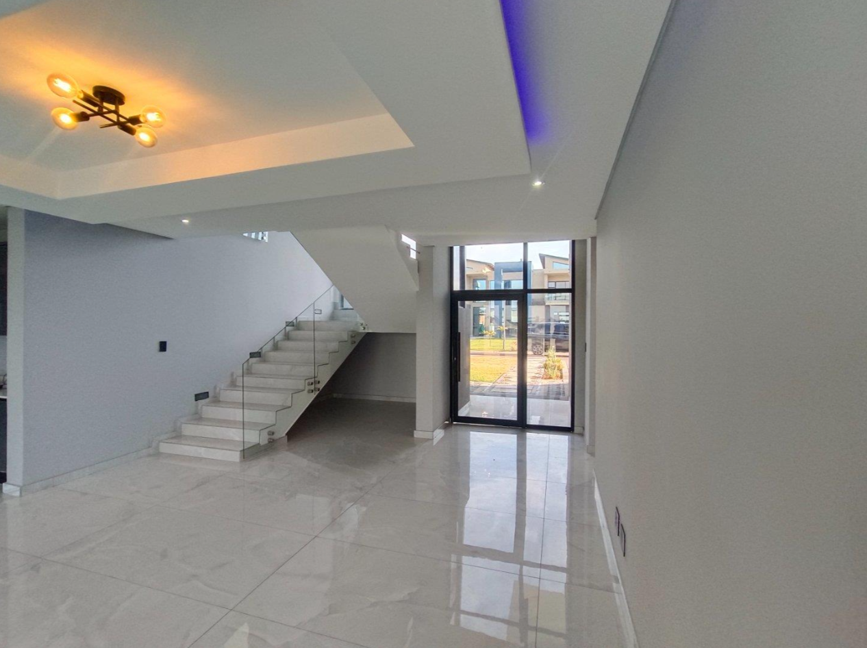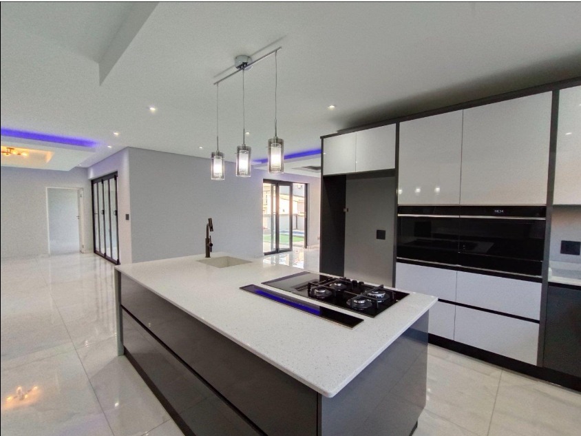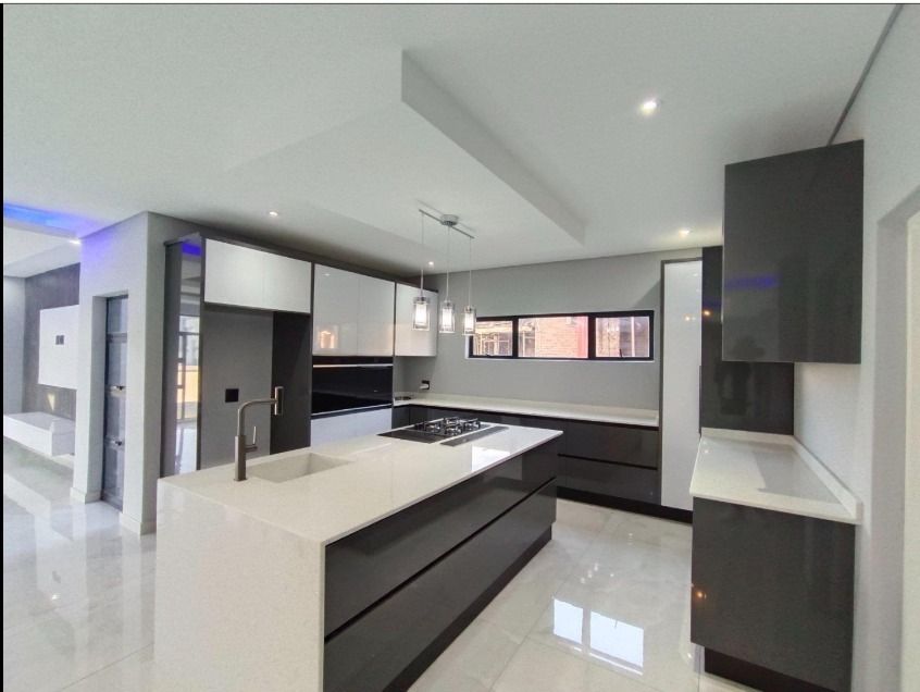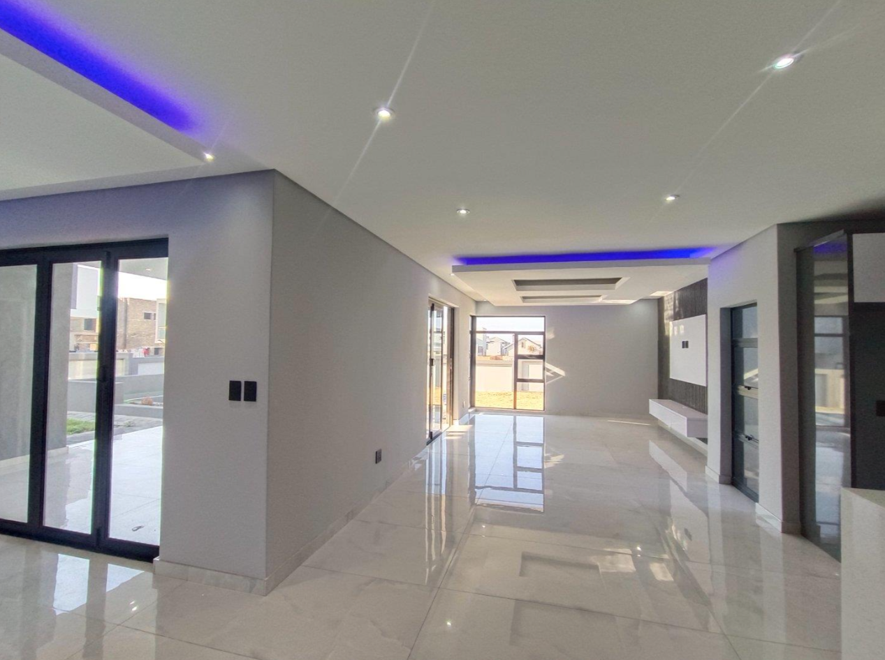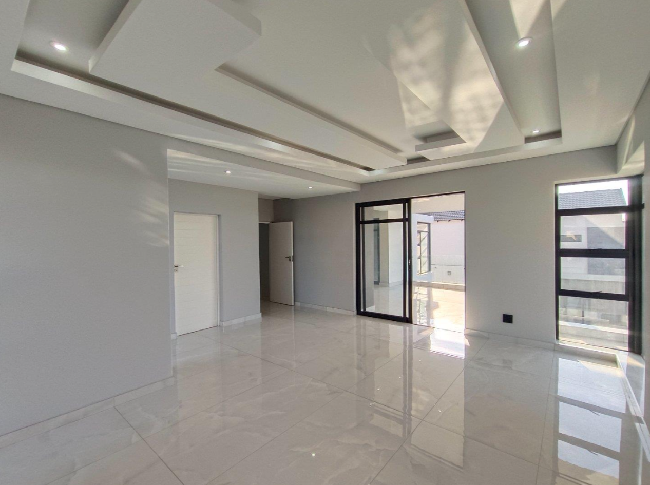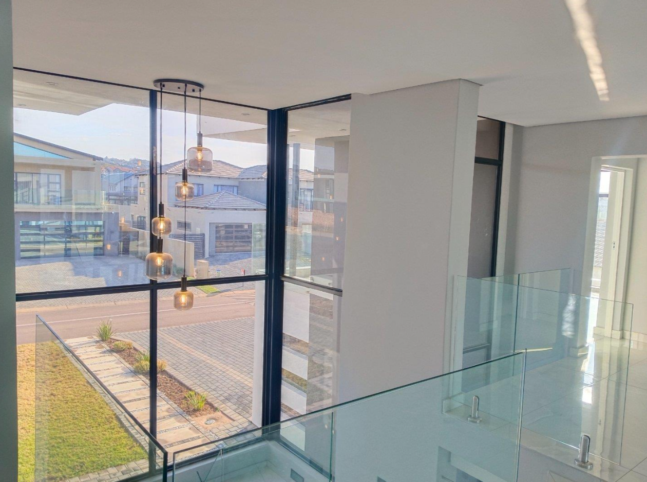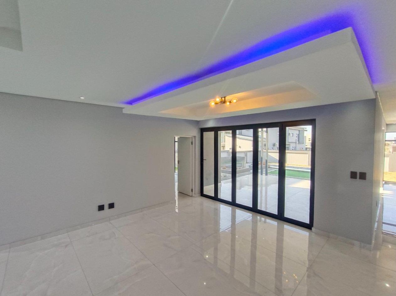 Discover contemporary luxury within the prestigious Six Fountains Residential Estate in Pretoria. This striking 5-bedroom, 5-bathroom residence boasts a modern architectural design with a sophisticated grey and white facade, large windows, and elegant glass balcony railings, creating an impressive kerb appeal. Spanning a generous 504 sqm on a 756 sqm erf, this home offers ample space for discerning families. The interior unfolds into expansive open-plan living areas, featuring two lounges and a dedicated dining room, perfect for both intimate gatherings and grand entertaining. The heart of the home is a sleek, modern kitchen, equipped with high-gloss cabinetry, a large island with integrated appliances, and polished tiled flooring throughout. Enhanced by special lighting, air conditioning, and a cozy fireplace, comfort and style are paramount. Accommodation includes five well-appointed bedrooms and five bathrooms, with three offering private en-suite facilities, alongside a convenient guest toilet. A dedicated study provides an ideal space for remote work or quiet contemplation, ensuring functionality for every lifestyle need. Outdoor amenities comprise a well-maintained garden, extensive paving, and a private driveway leading to three integrated garages, offering secure parking and storage. As part of an exclusive estate, residents benefit from 24-hour security, an access gate, and a clubhouse, fostering a secure and vibrant community atmosphere. Enjoy scenic views and seamless connectivity with fibre internet access. Key Features: * 5 Bedrooms, 5 Bathrooms (3 En-suite) * Modern Open-Plan Living Areas (2 Lounges, 1 Dining Room) * Sleek Kitchen with Integrated Appliances * Dedicated Study * 3 Garages and Paved Driveway * Air Conditioning and Fireplace * Estate Living with 24-Hour Security and Access Gate * Clubhouse Access * Fibre Connectivity * Scenic Views