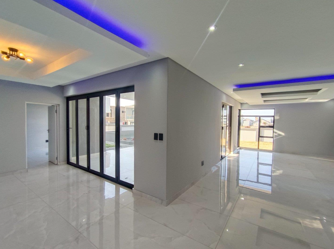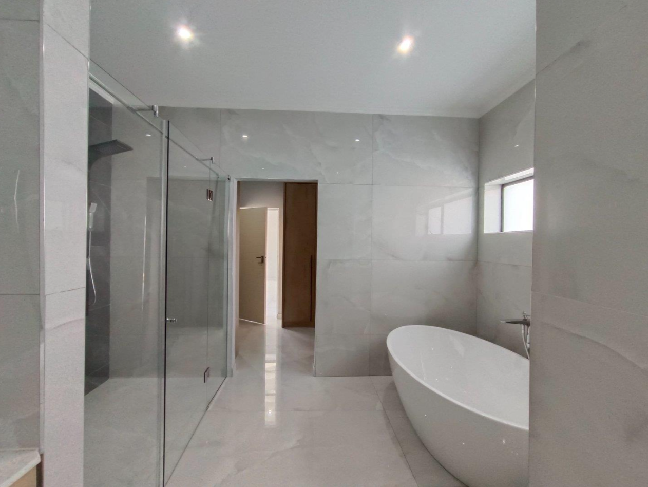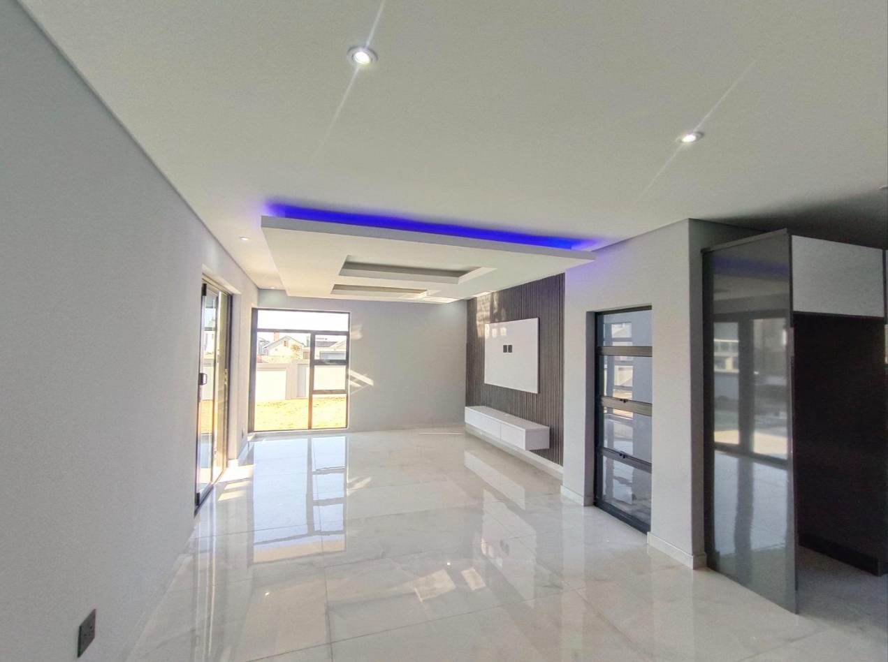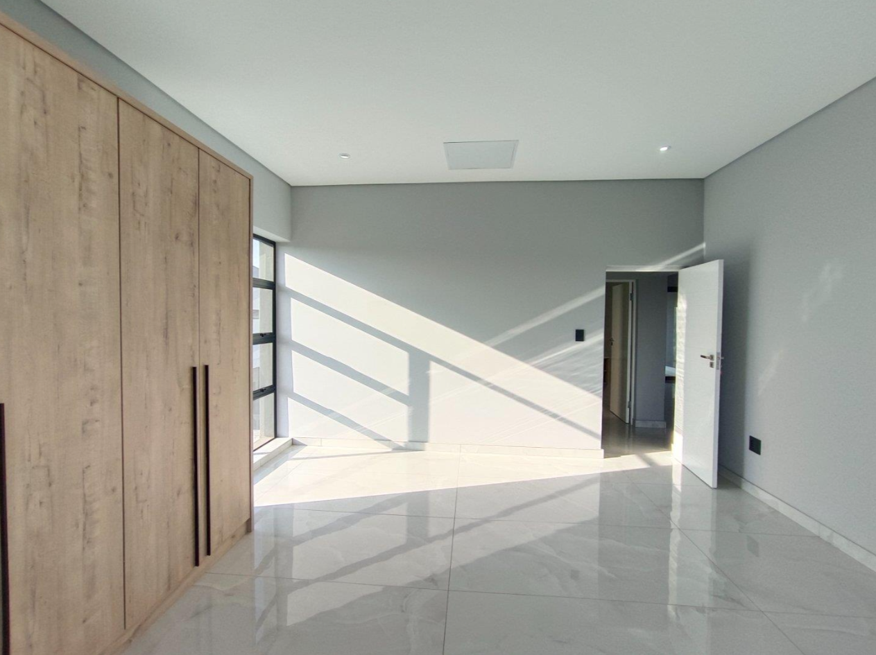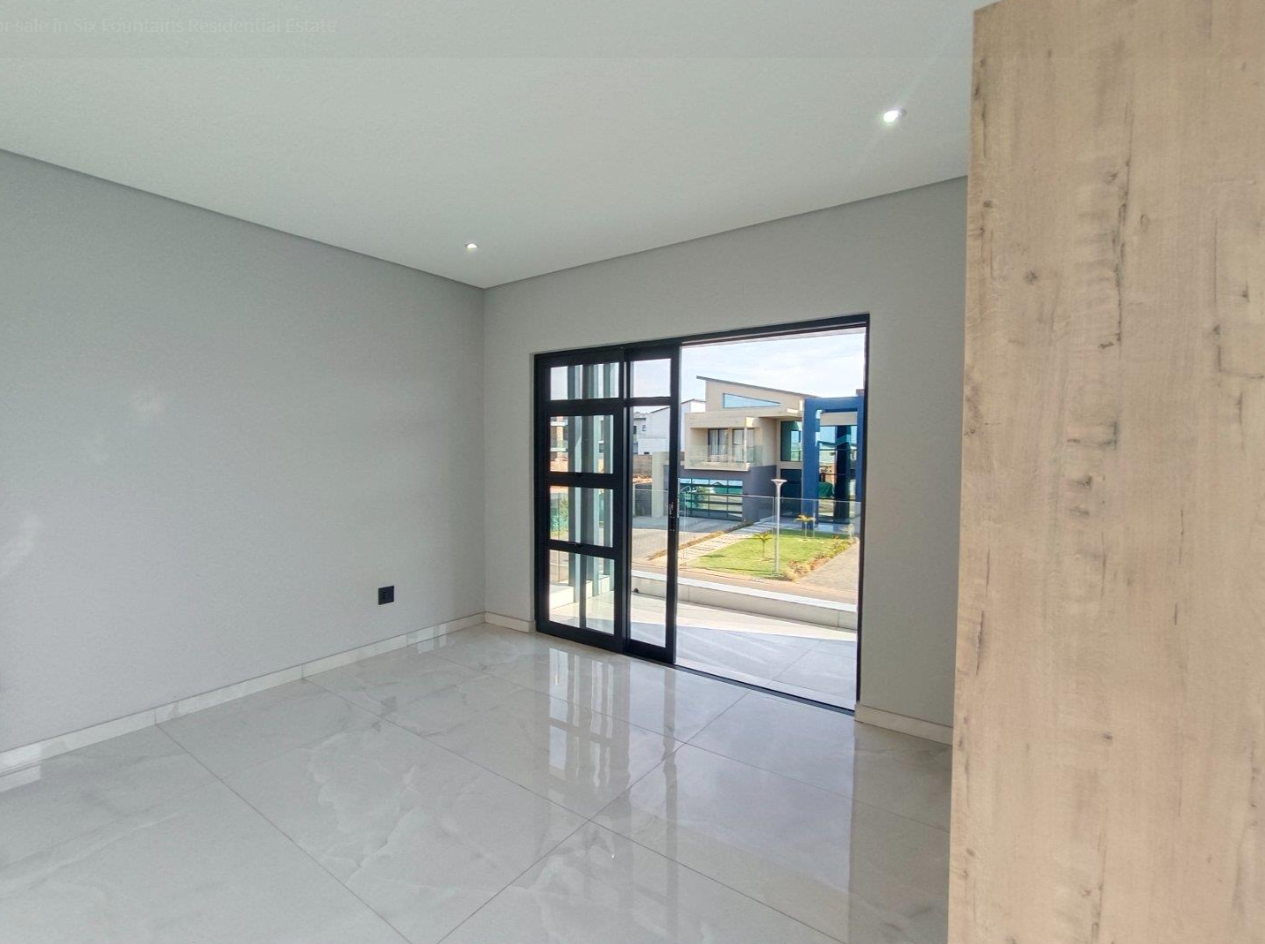 Discover contemporary luxury within the prestigious Six Fountains Residential Estate in Pretoria. This striking 5-bedroom, 5-bathroom residence boasts a modern architectural design with a sophisticated grey and white facade, large windows, and elegant glass balcony railings, creating an impressive kerb appeal. Spanning a generous 504 sqm on a 756 sqm erf, this home offers ample space for discerning families. The interior unfolds into expansive open-plan living areas, featuring two lounges and a dedicated dining room, perfect for both intimate gatherings and grand entertaining. The heart of the home is a sleek, modern kitchen, equipped with high-gloss cabinetry, a large island with integrated appliances, and polished tiled flooring throughout. Enhanced by special lighting, air conditioning, and a cozy fireplace, comfort and style are paramount. Accommodation includes five well-appointed bedrooms and five bathrooms, with three offering private en-suite facilities, alongside a convenient guest toilet. A dedicated study provides an ideal space for remote work or quiet contemplation, ensuring functionality for every lifestyle need. Outdoor amenities comprise a well-maintained garden, extensive paving, and a private driveway leading to three integrated garages, offering secure parking and storage. As part of an exclusive estate, residents benefit from 24-hour security, an access gate, and a clubhouse, fostering a secure and vibrant community atmosphere. Enjoy scenic views and seamless connectivity with fibre internet access. Key Features: * 5 Bedrooms, 5 Bathrooms (3 En-suite) * Modern Open-Plan Living Areas (2 Lounges, 1 Dining Room) * Sleek Kitchen with Integrated Appliances * Dedicated Study * 3 Garages and Paved Driveway * Air Conditioning and Fireplace * Estate Living with 24-Hour Security and Access Gate * Clubhouse Access * Fibre Connectivity * Scenic Views