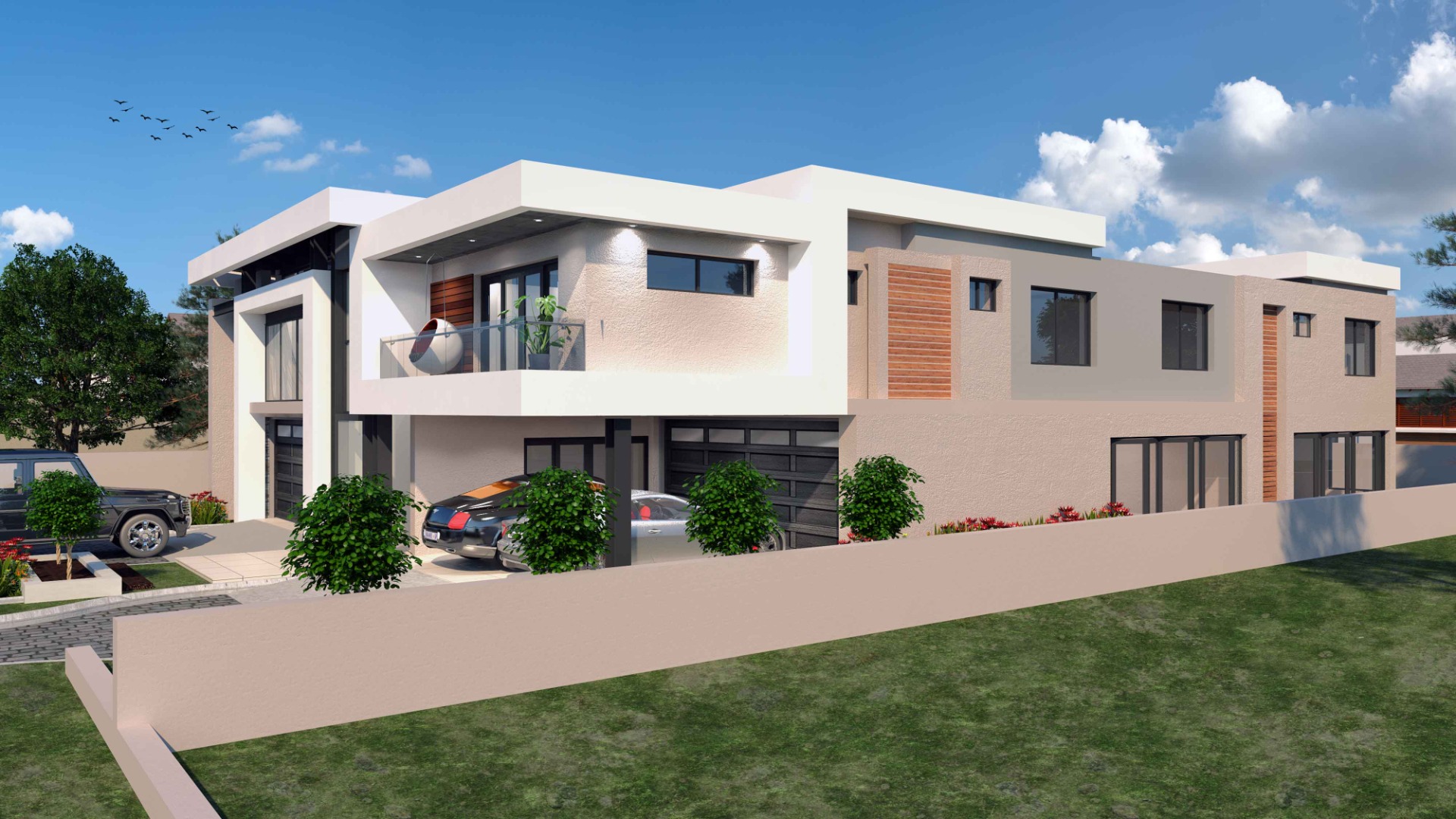 Upstairs, the home is designed as a private sanctuary with a luxurious main bedroom suite, walk-in closet, and en-suite bathroom, complemented by additional bedrooms, multiple en-suites, and a shared bathroom. A pyjama lounge, home cinema, gym, and playroom elevate the home into a complete lifestyle experience, further enhanced by balconies and striking double-volume design elements.