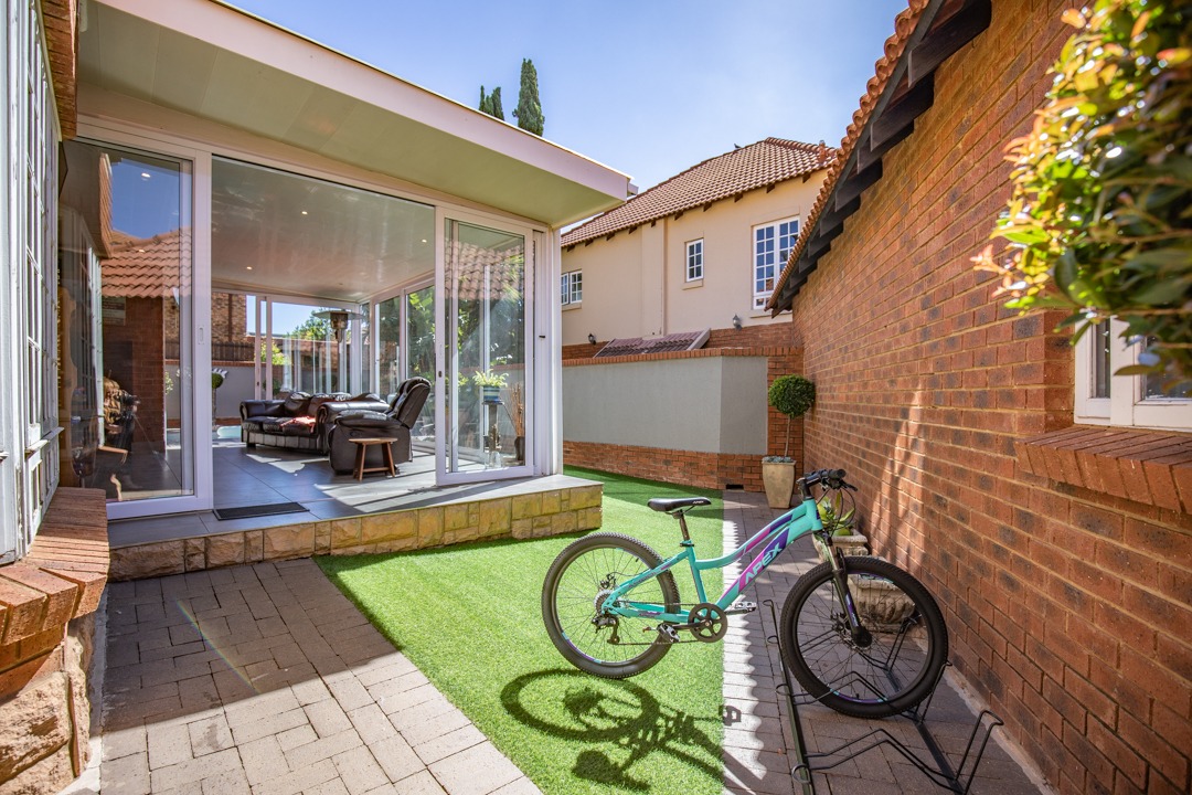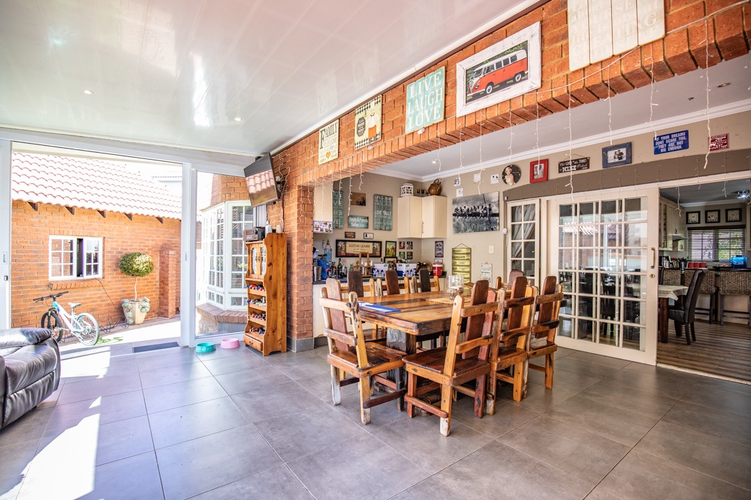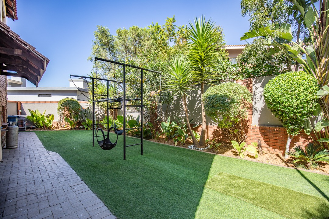 Outside, your private oasis awaits! The backyard features a refreshing swimming pool, perfect for a quick dip on a hot day, surrounded by a paved patio area that’s great for lounging. You’ll appreciate the low-maintenance artificial turf in the compact garden, which means more time enjoying and less time mowing. Plus, there’s lush, mature tropical landscaping around the pool, adding to that holiday vibe. And for those who love a good braai, you’ll be pleased to know there’s a built-in braai, making outdoor entertaining a breeze. With a double garage and additional parking, there’s space for all your vehicles too.