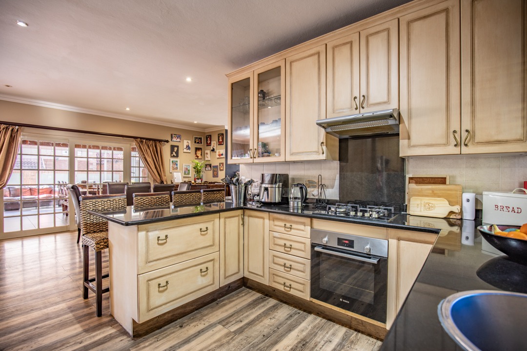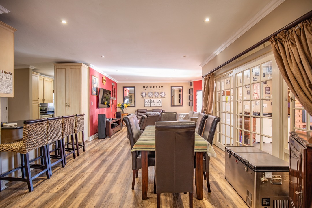 This home offers four comfy bedrooms and three bathrooms, including a private en-suite for that extra bit of luxury. There’s also a handy guest toilet for visitors. If you work from home or need a quiet spot for hobbies, you’ll love the dedicated study. It’s a well-lit room with large bay windows and extensive built-in desks and shelving, providing plenty of space to get things done. The kitchen is ready for all your culinary adventures, and with an erf size of 500 sqm and a floor size of 275 sqm, there’s ample room for everyone to spread out.