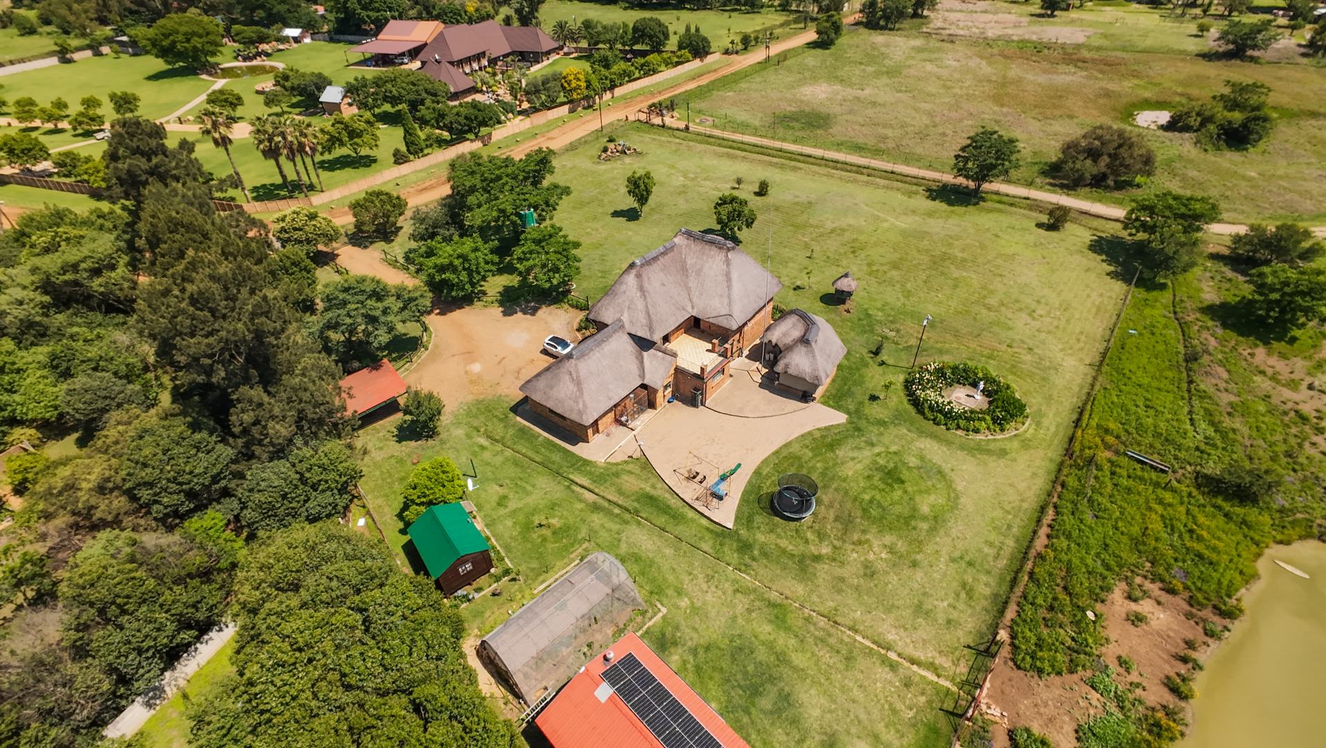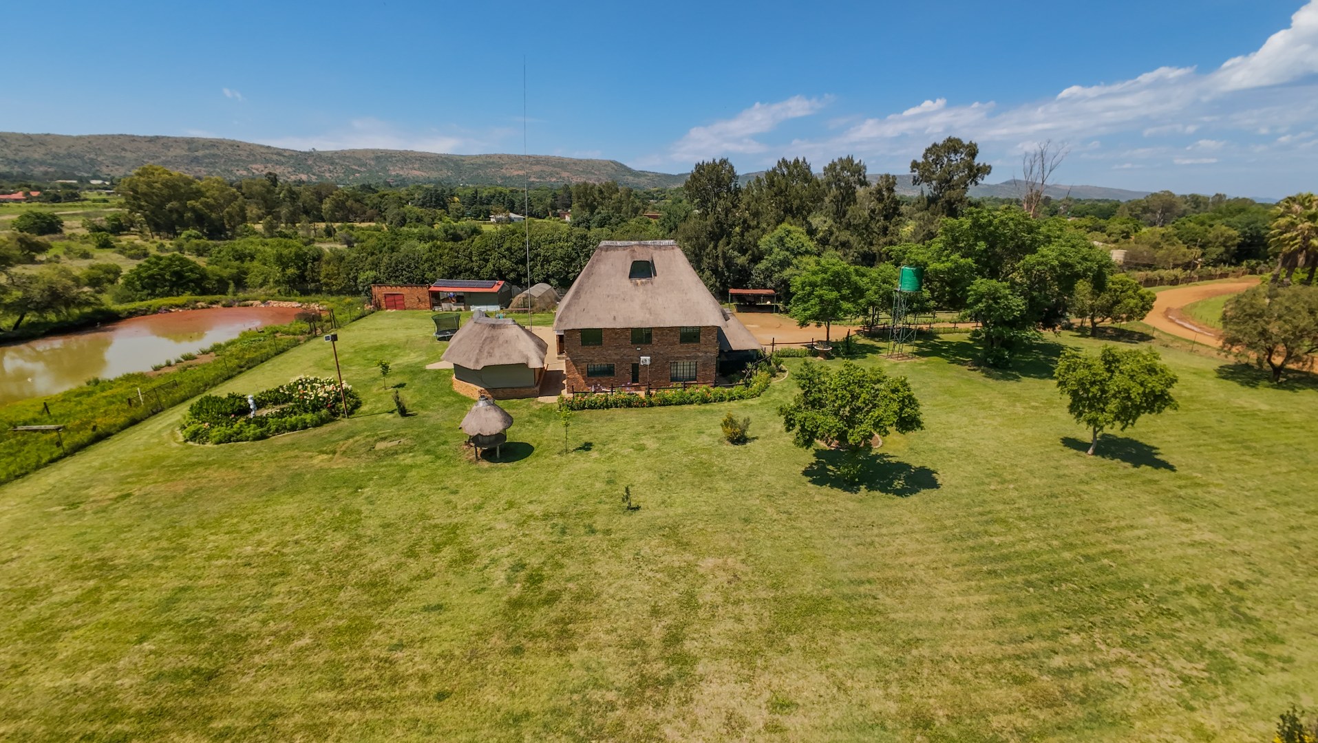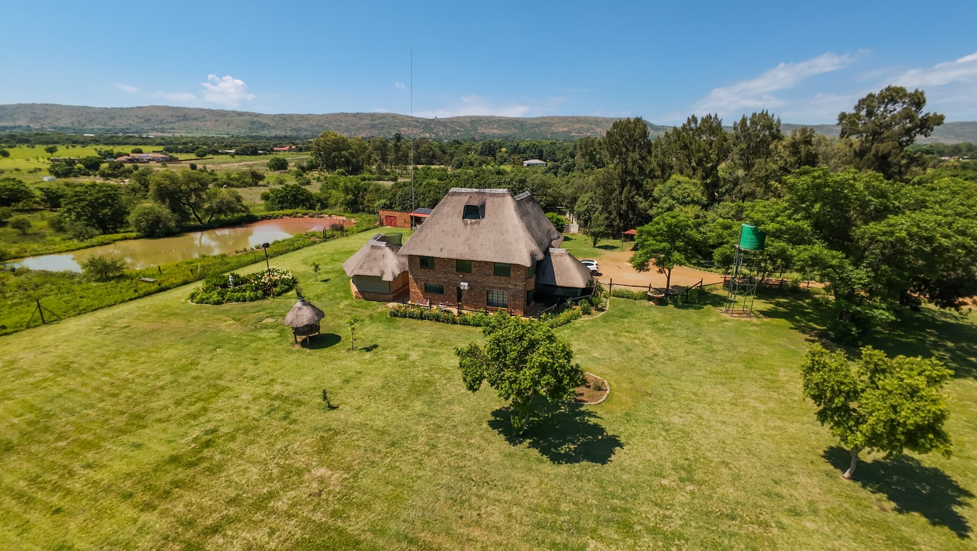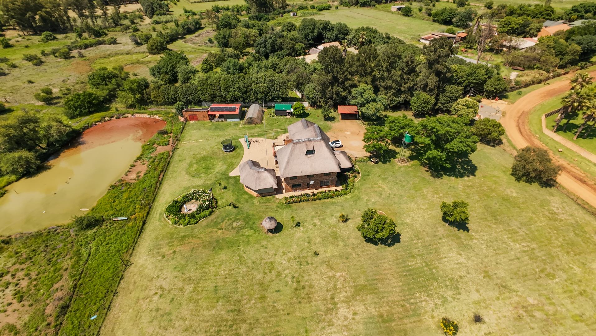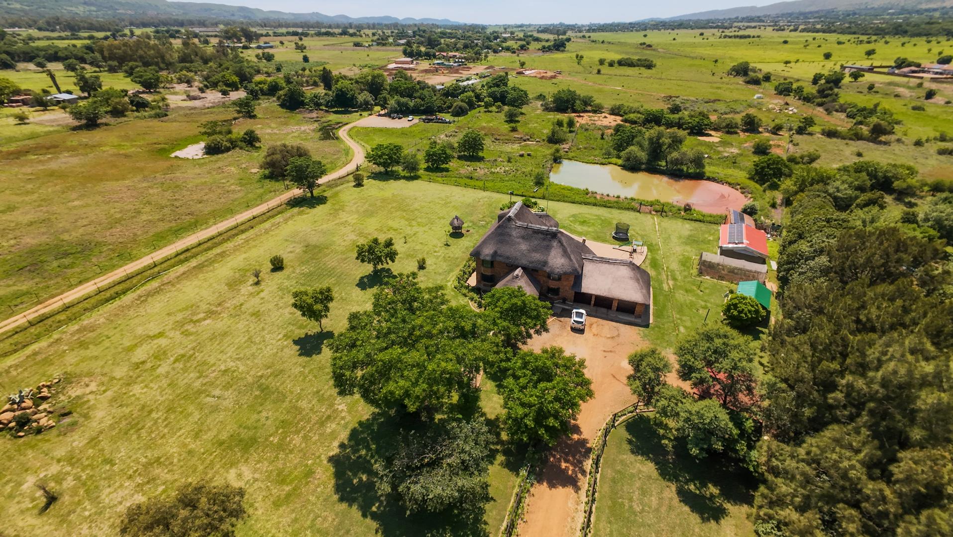 Nature flows directly into the home thanks to a striking indoor waterfall and fish pond feature. Outdoors, the setting is equally impressive, with landscaped gardens, abundant birdlife, and a large dam stocked with tilapia and carp. The front hectare is fully under irrigation, ideal for cultivation, hobby farming, or expanding food production. Two boreholes serve the property, with one currently in working order, supported by a French drain and grey-water pit for sustainable living.