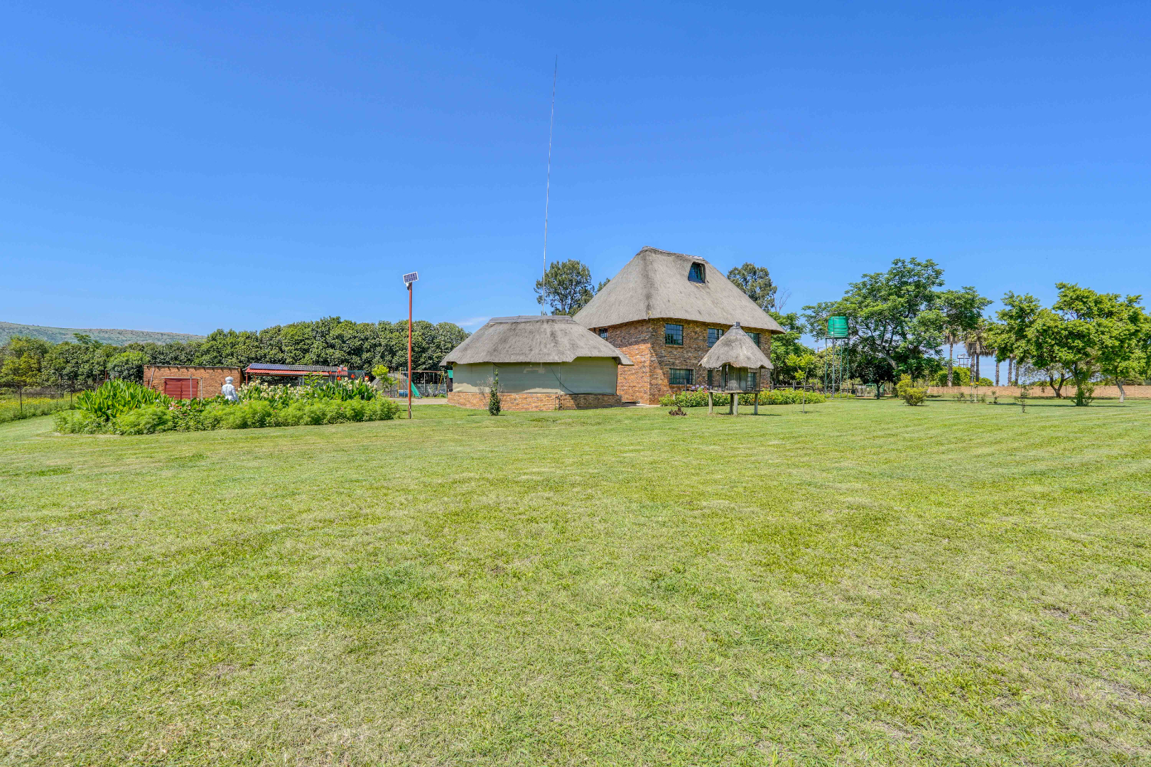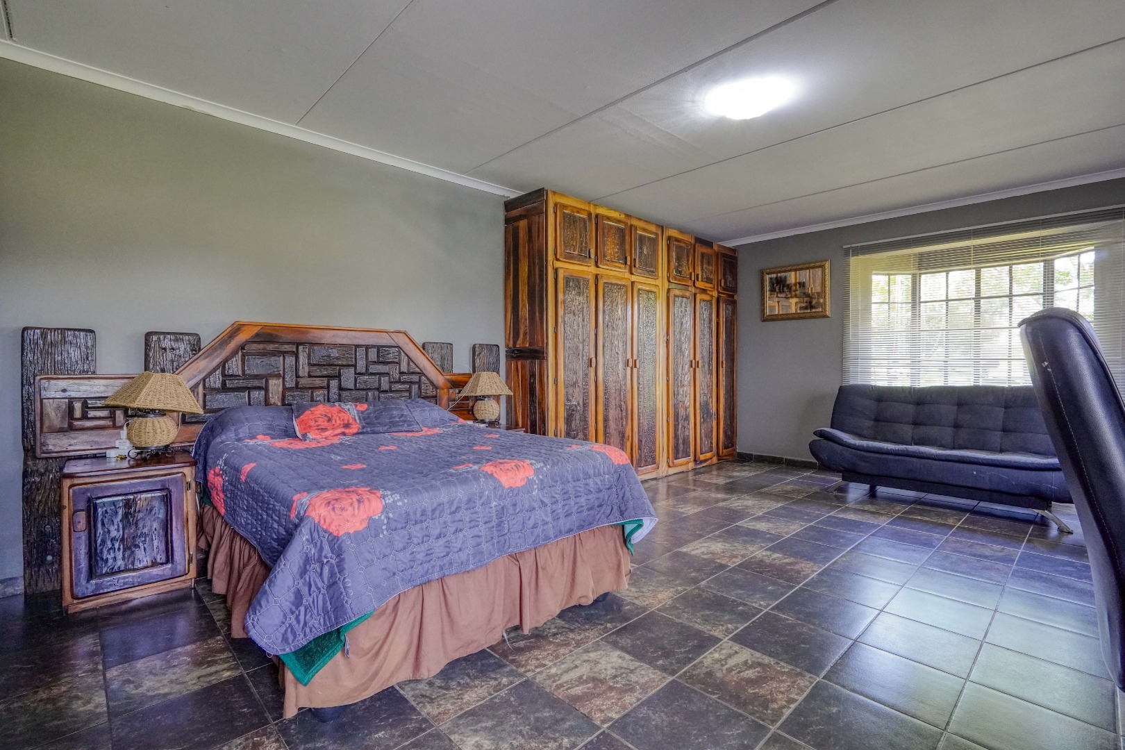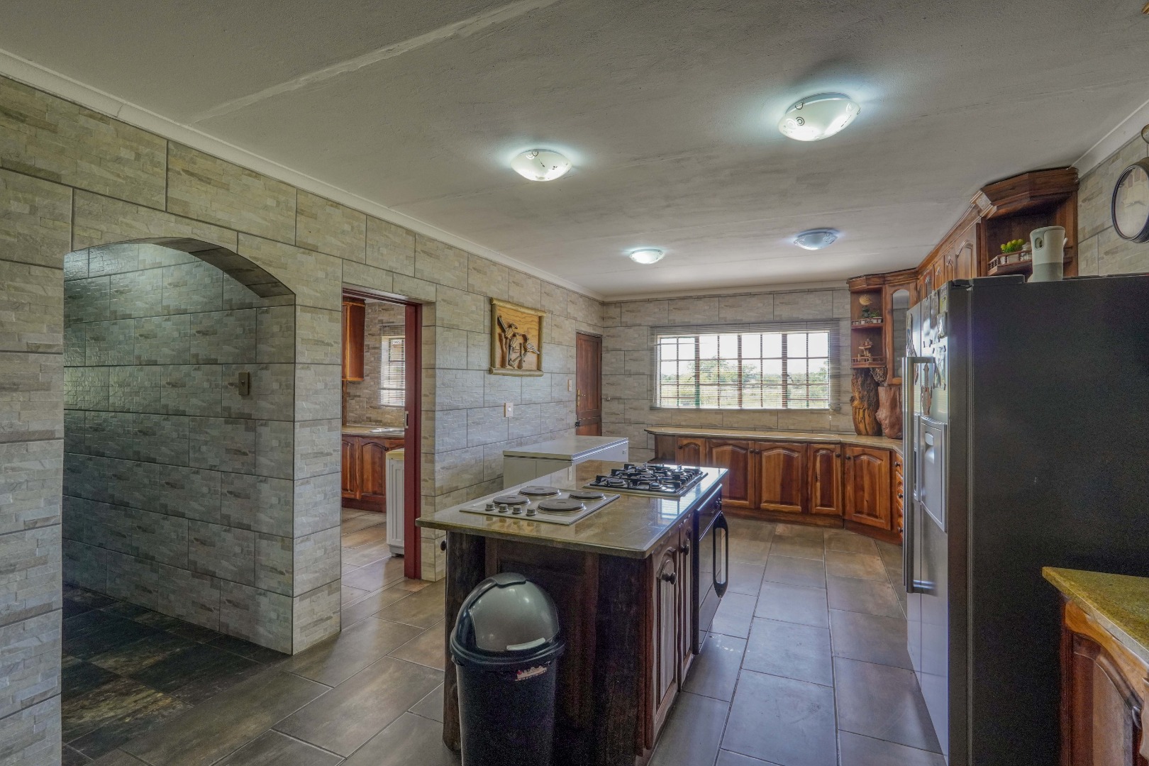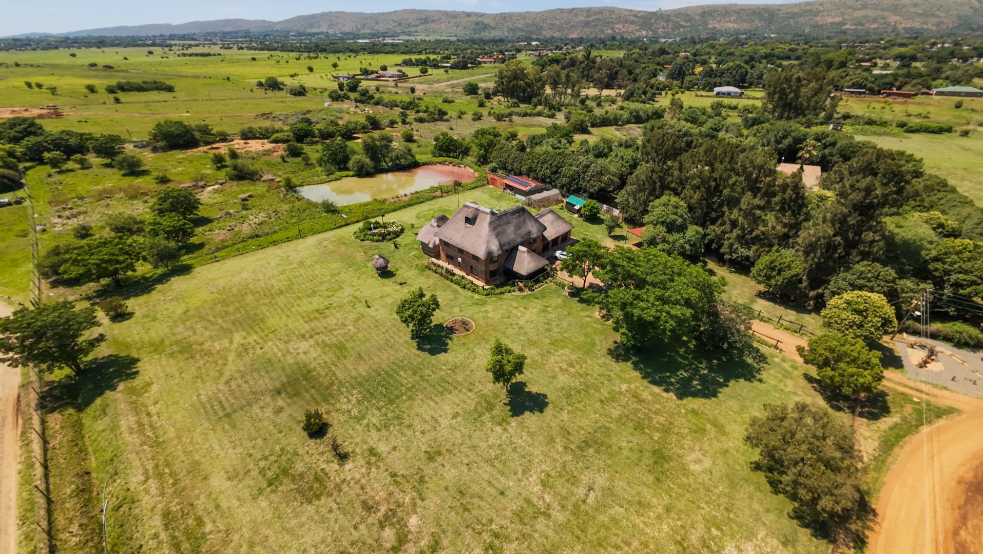 Nature flows directly into the home thanks to a striking indoor waterfall and fish pond feature. Outdoors, the setting is equally impressive, with landscaped gardens, abundant birdlife, and a large dam stocked with tilapia and carp. The front hectare is fully under irrigation, ideal for cultivation, hobby farming, or expanding food production. Two boreholes serve the property, with one currently in working order, supported by a French drain and grey-water pit for sustainable living.