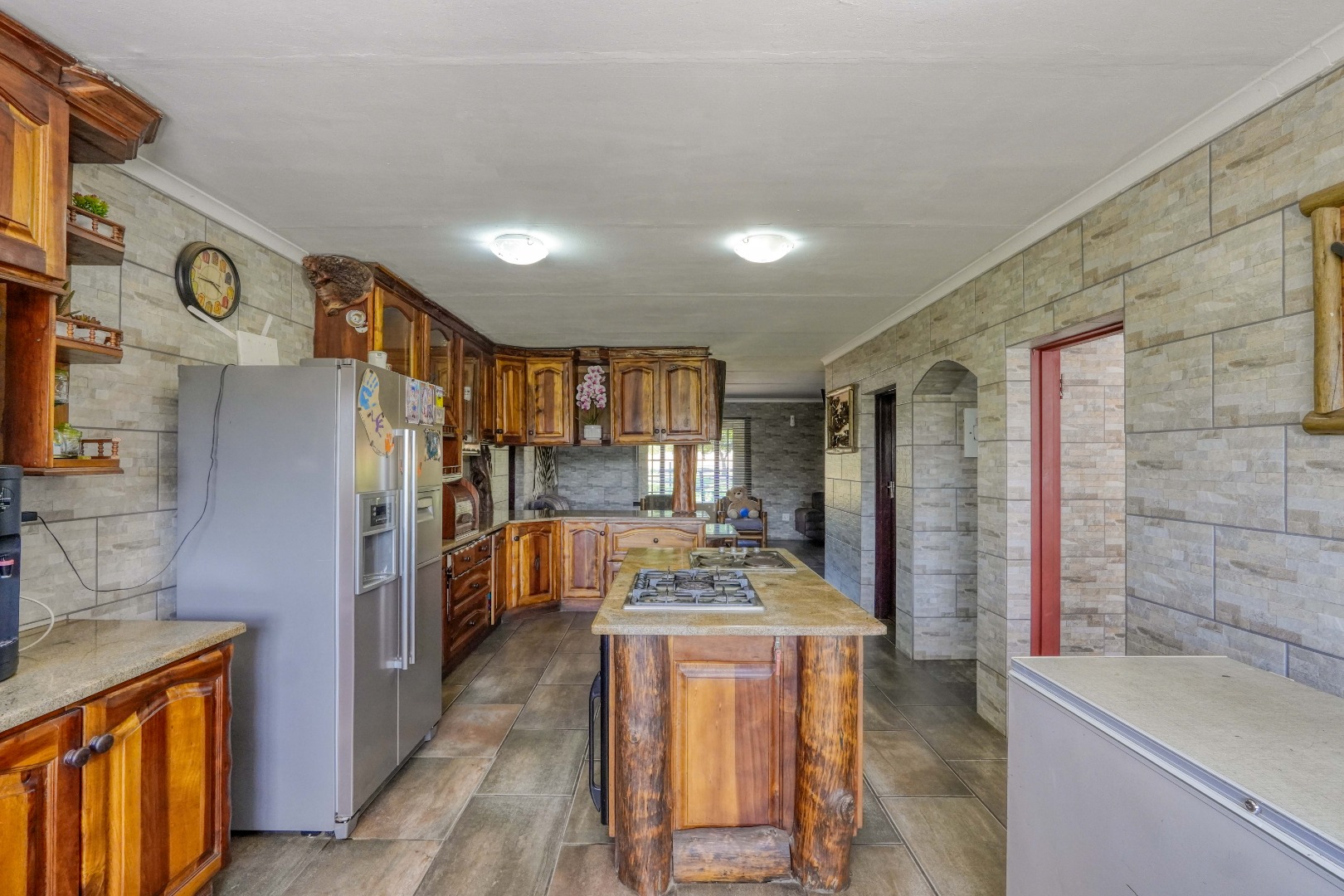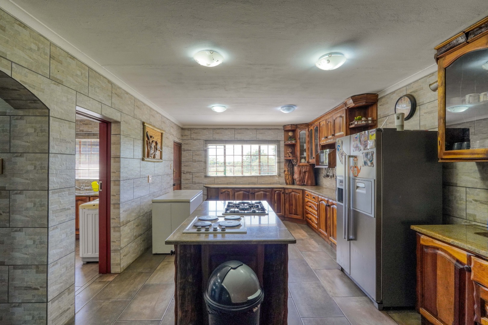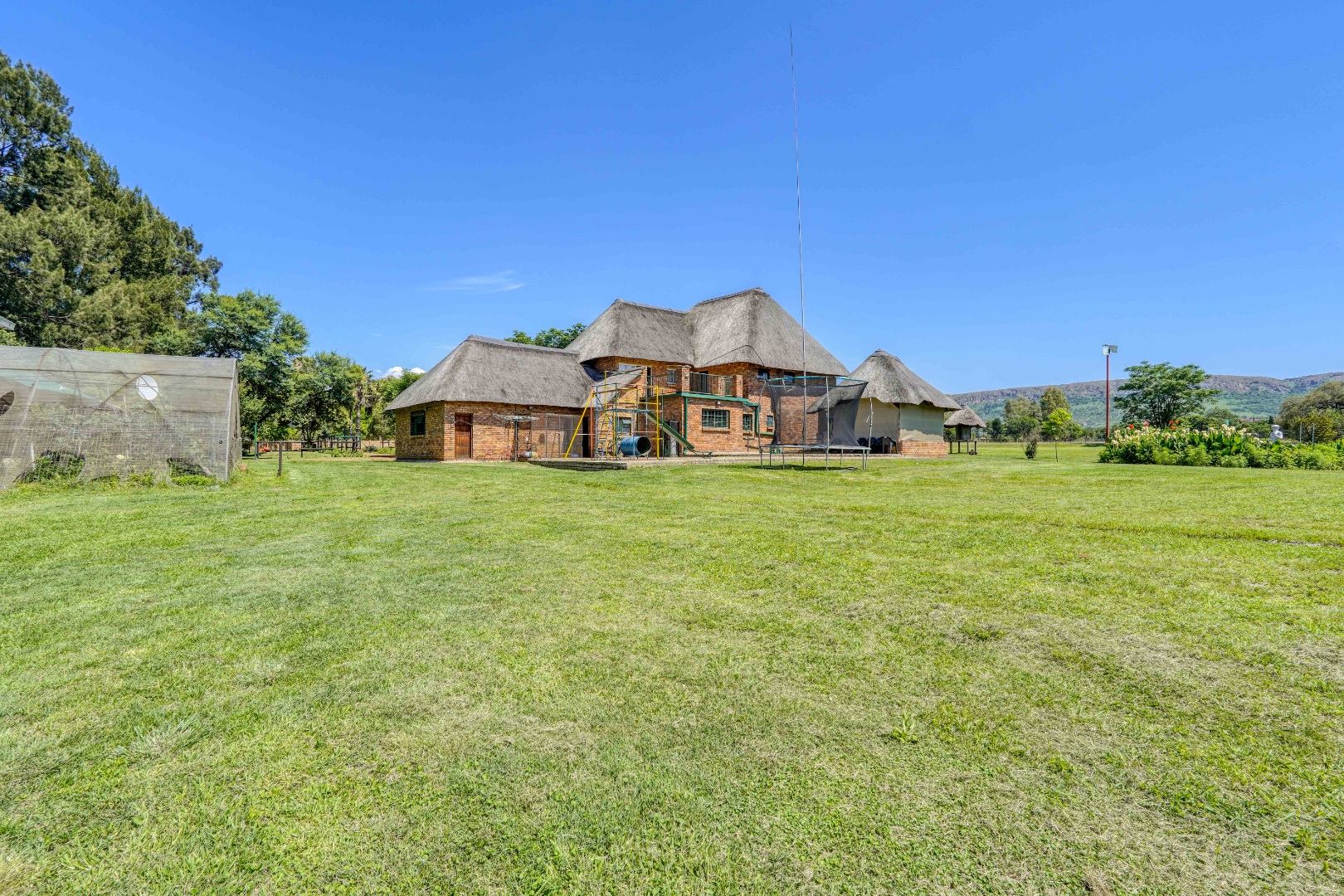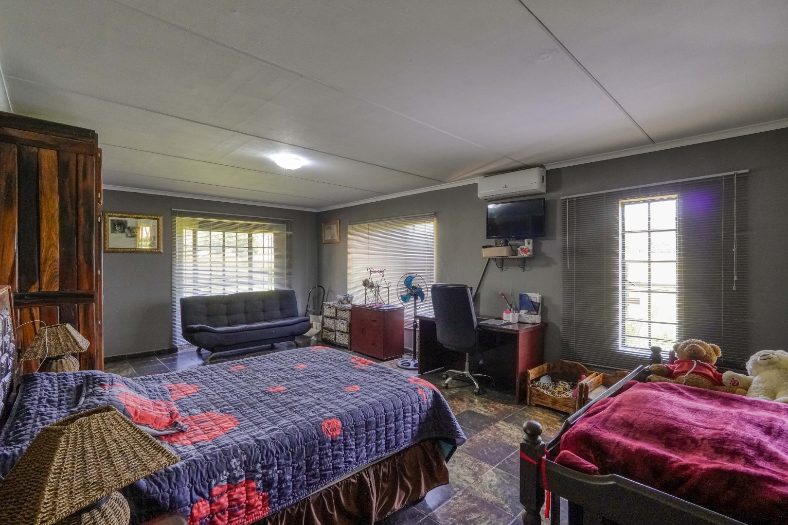 Nature flows directly into the home thanks to a striking indoor waterfall and fish pond feature. Outdoors, the setting is equally impressive, with landscaped gardens, abundant birdlife, and a large dam stocked with tilapia and carp. The front hectare is fully under irrigation, ideal for cultivation, hobby farming, or expanding food production. Two boreholes serve the property, with one currently in working order, supported by a French drain and grey-water pit for sustainable living.