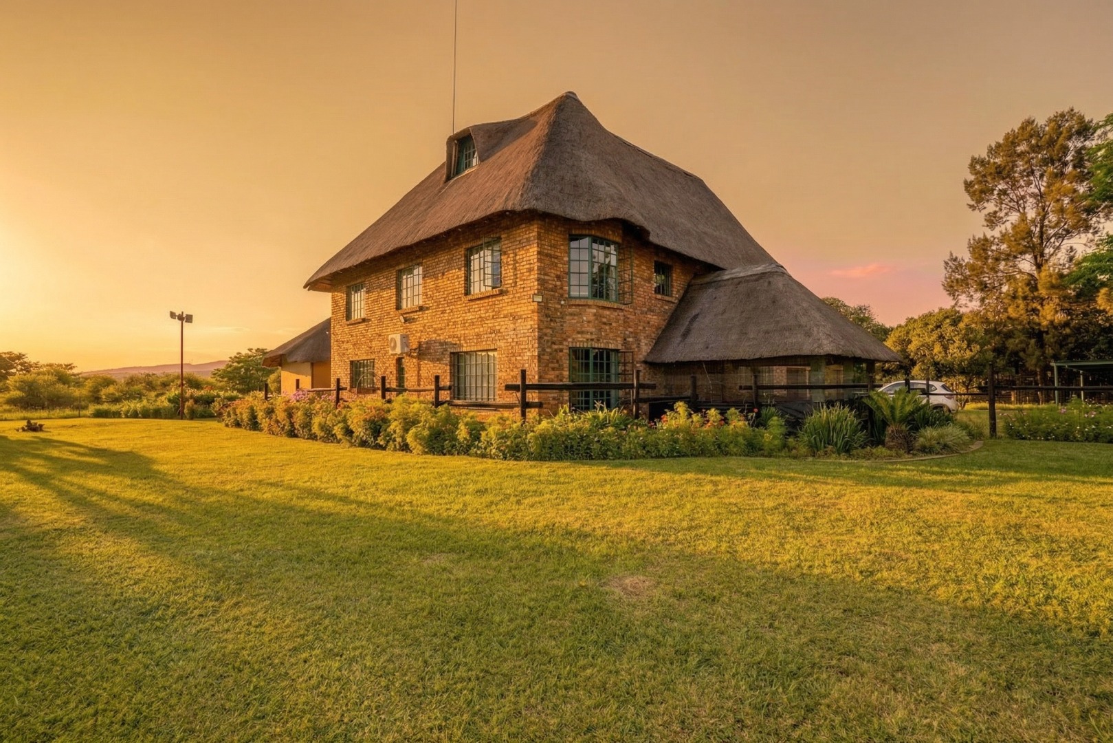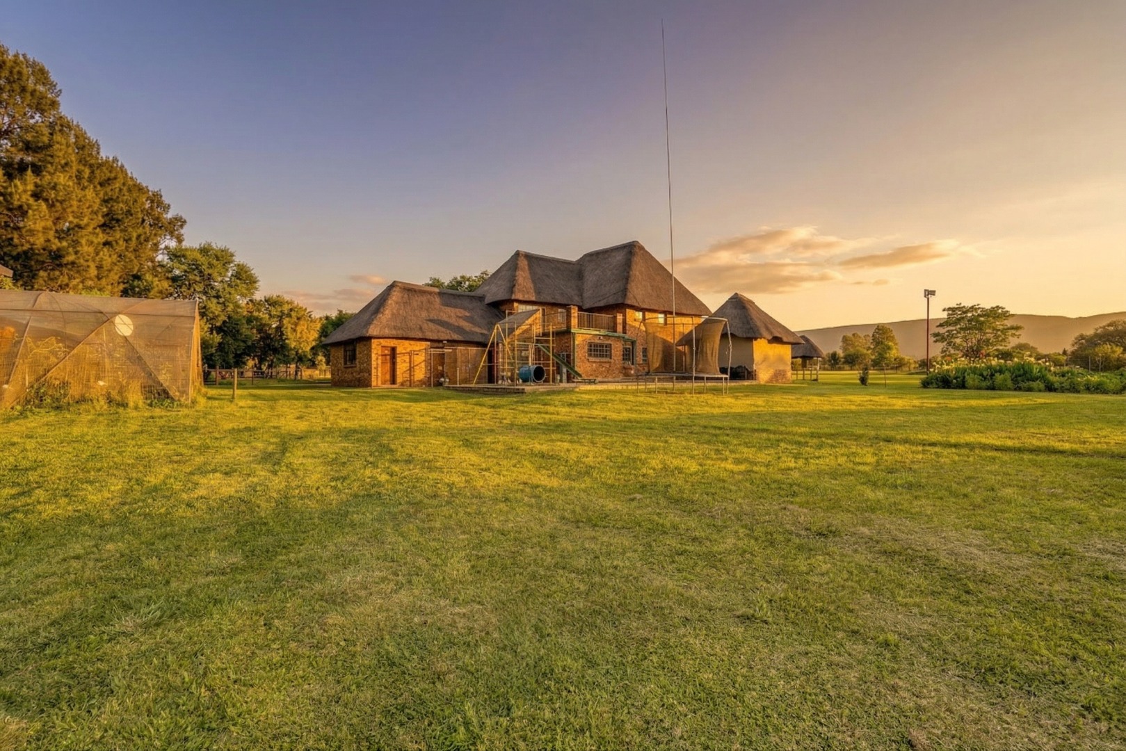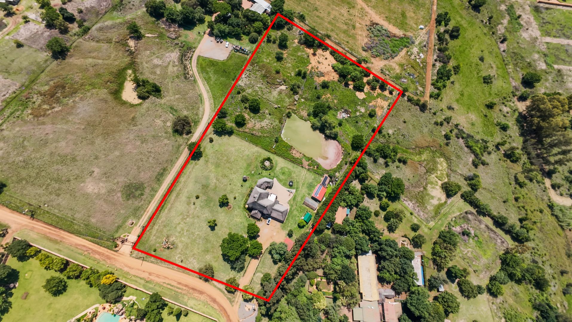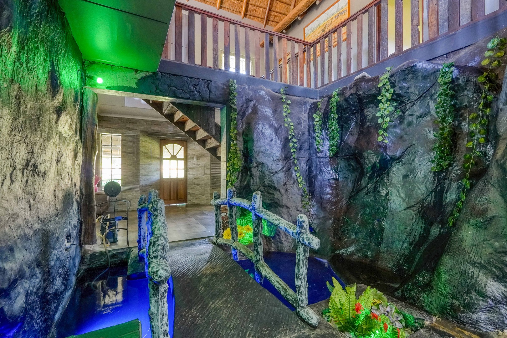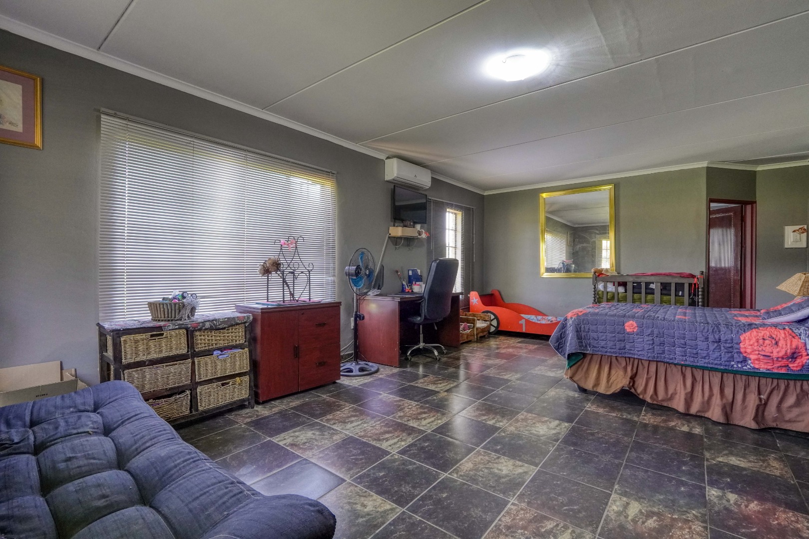 Nature flows directly into the home thanks to a striking indoor waterfall and fish pond feature. Outdoors, the setting is equally impressive, with landscaped gardens, abundant birdlife, and a large dam stocked with tilapia and carp. The front hectare is fully under irrigation, ideal for cultivation, hobby farming, or expanding food production. Two boreholes serve the property, with one currently in working order, supported by a French drain and grey-water pit for sustainable living.