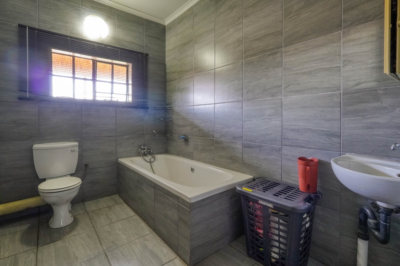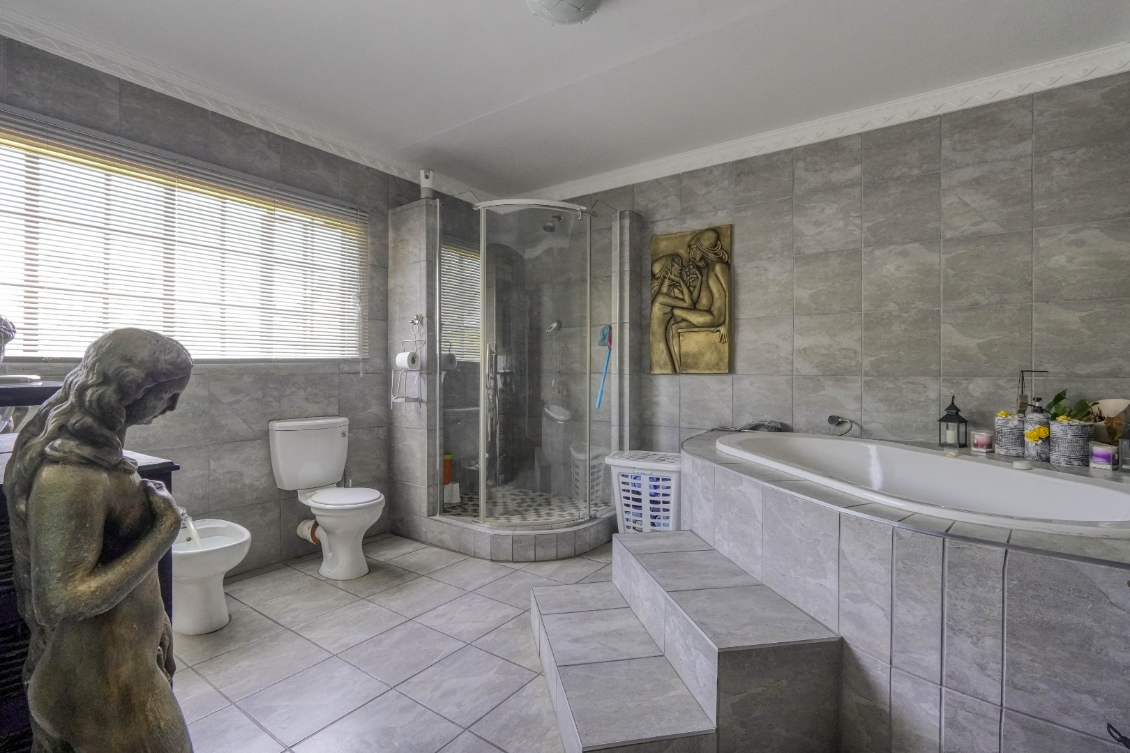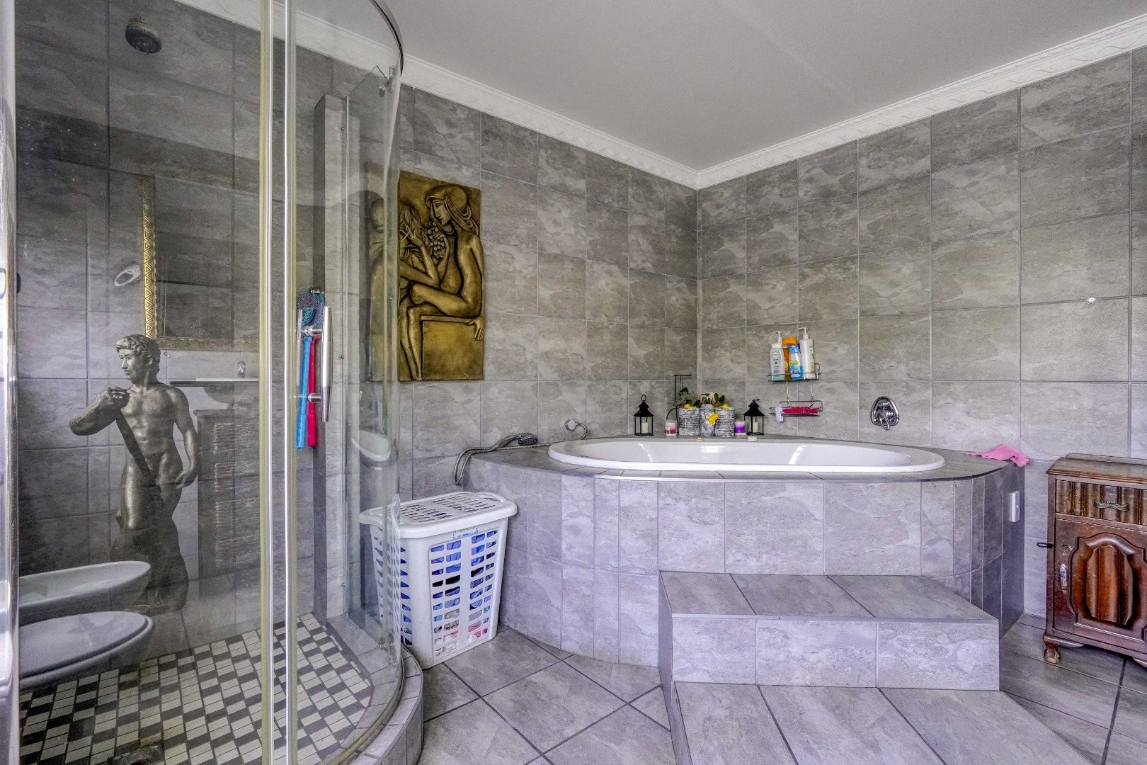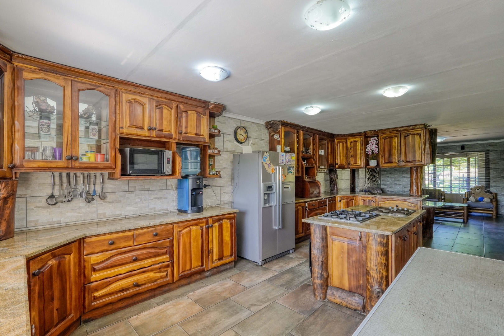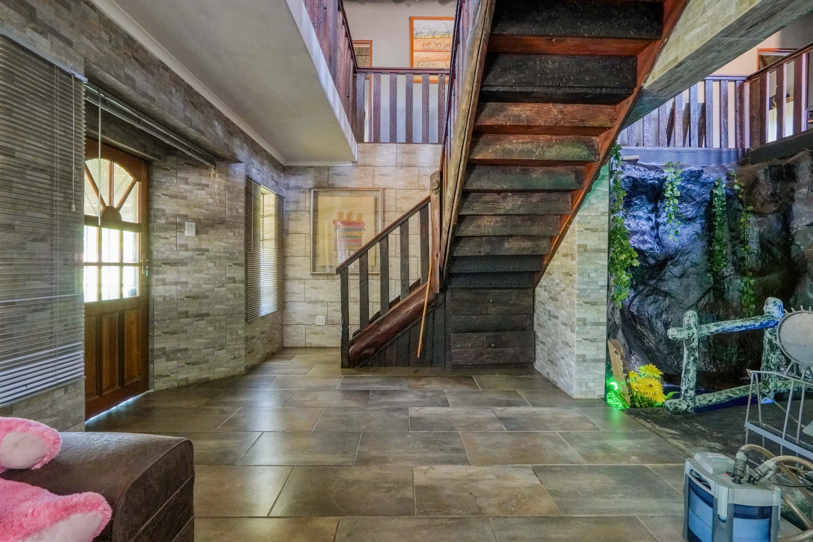 Practical infrastructure includes a three-car garage, undercover parking, a workshop or storage area, an enclosed lapa, a Wendy house, and an outside toilet with a bath. An 8 kVA solar system keeps the home resilient during outages, while a RoboGuard alarm system enhances security.