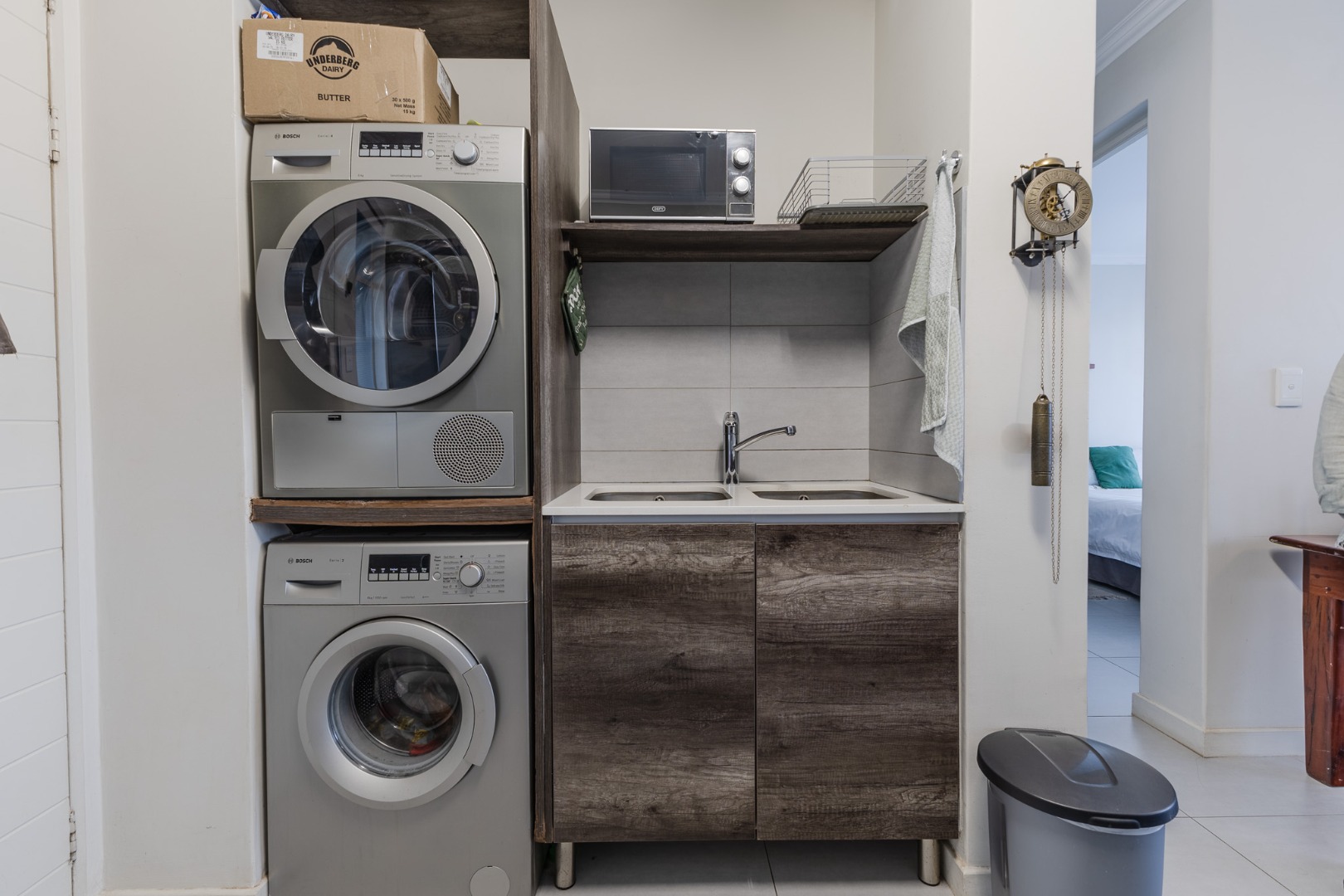 This well-appointed unit spans 54 square metres, featuring one comfortable bedroom and a single bathroom, designed for practical and stylish living. The open-plan layout includes a functional kitchen and a welcoming lounge area, perfect for relaxation or entertaining. A private balcony extends the living space outdoors, providing a pleasant spot to enjoy the estate's serene surroundings.