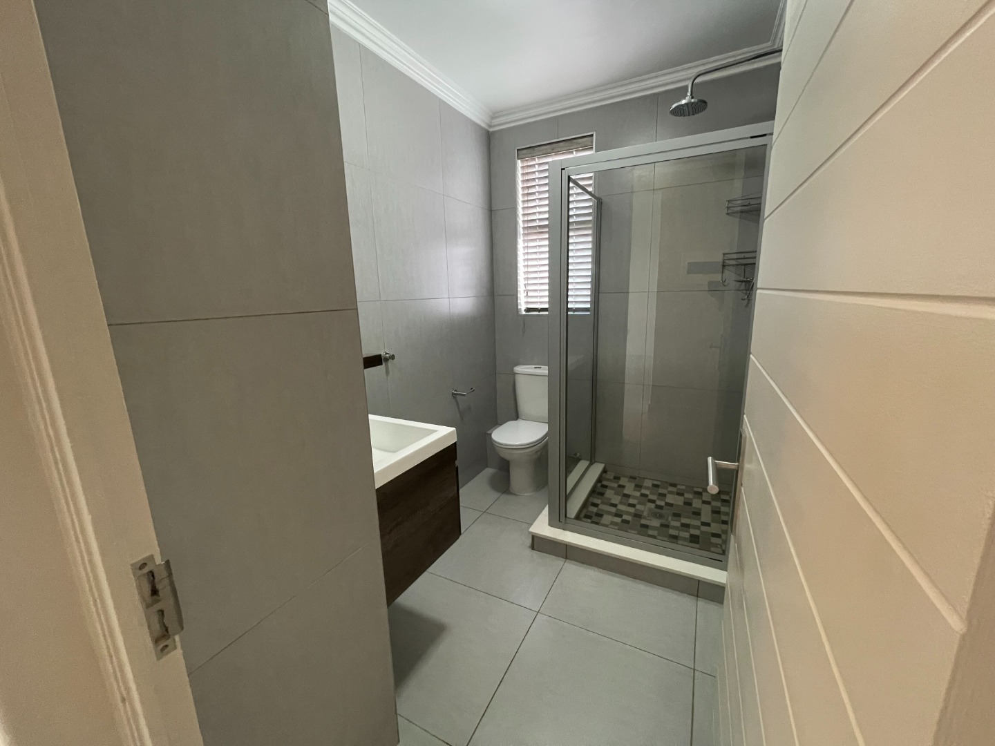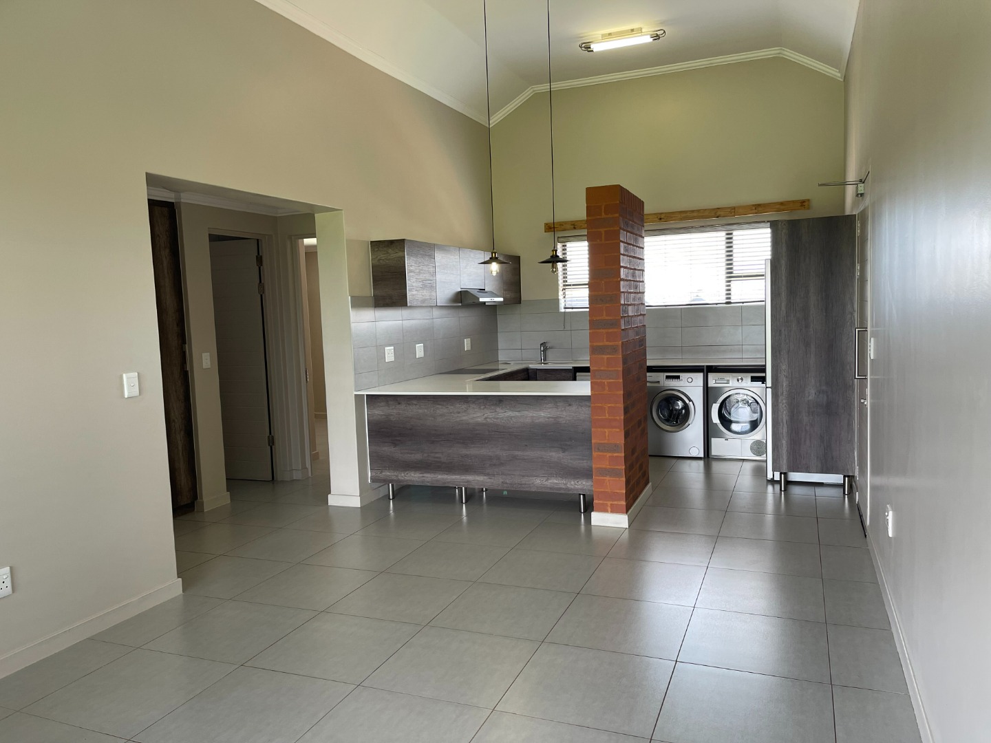 This immaculate 88sqm top-floor apartment offers modern luxury in one of Pretoria East’s most sought-after estates. The home features 2 spacious bedrooms, 2 stylish bathrooms, and an open-plan kitchen and living area with impressive vaulted ceilings. Enjoy a covered patio with built-in braai and 2 dedicated carports.