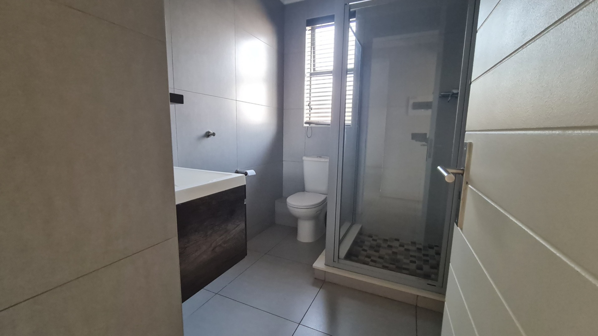 Beyond the bedrooms, there’s space for a dining area and an adjacent TV room, creating a versatile living environment. The lounge opens onto a balcony with a built-in braai, perfect for entertaining. A covered carport is also included for your convenience.