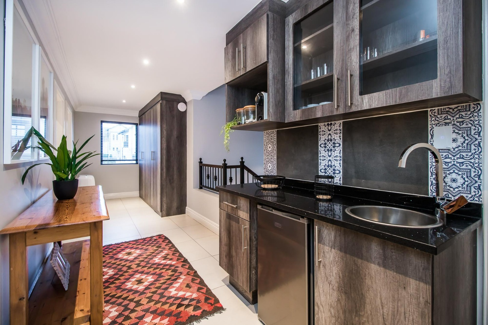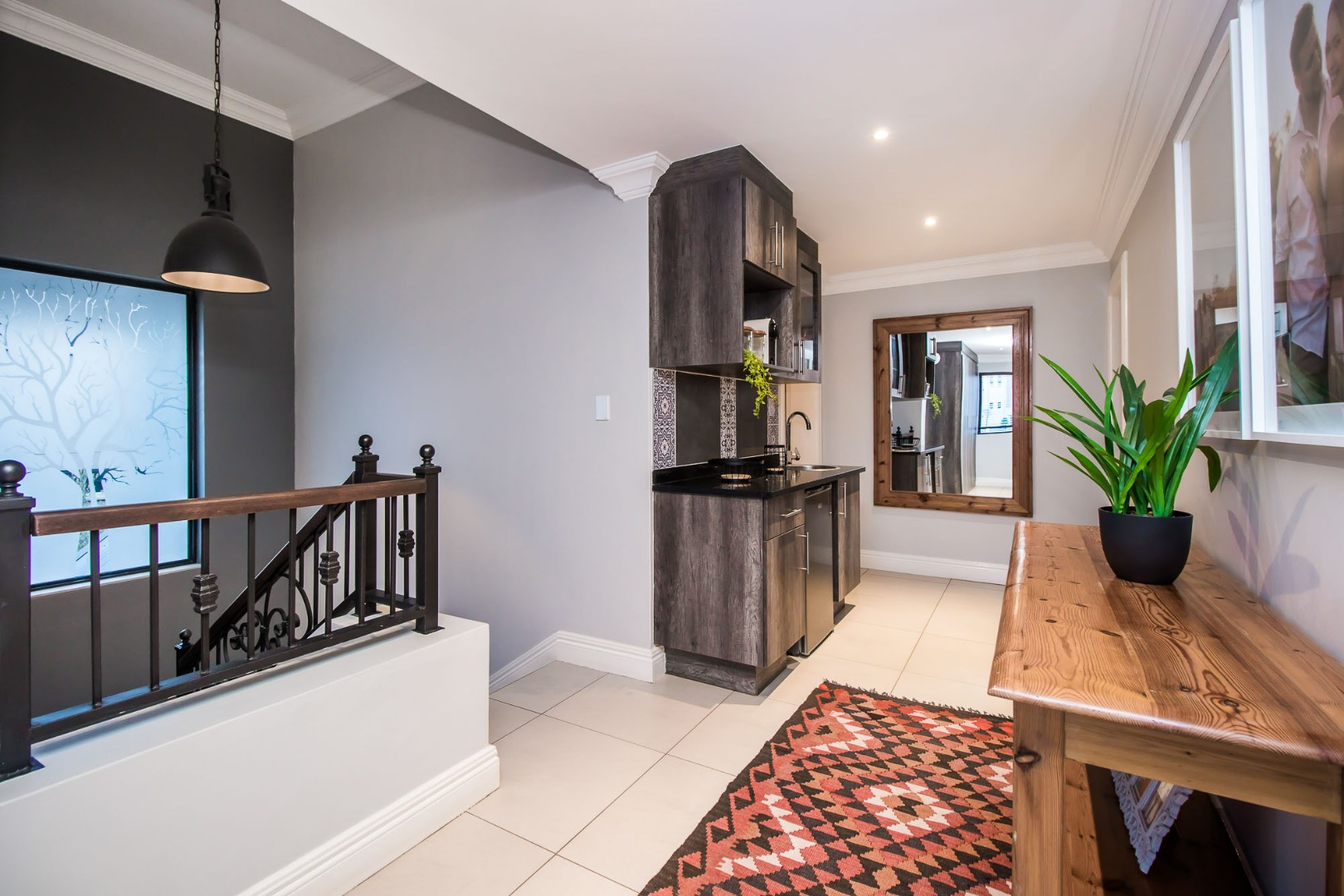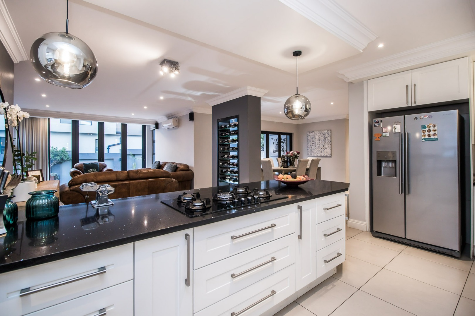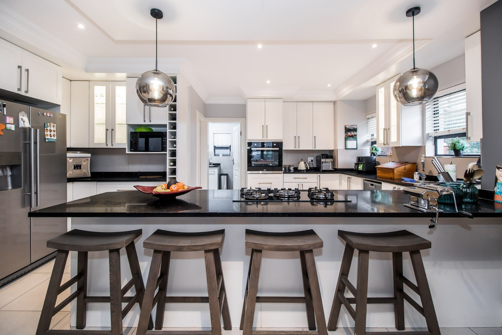 Upon entering the home the open flow of the home ensure a feeling of space and openness. A beautiful, well-designed kitchen equipped with a gas hob with a spacious scullery adds to the comfort of this home.