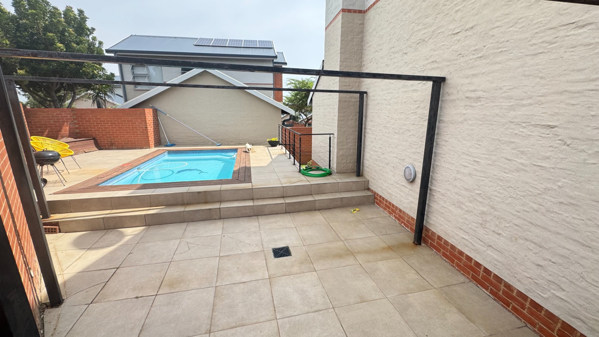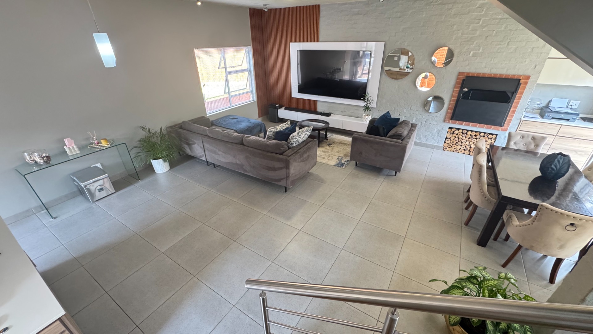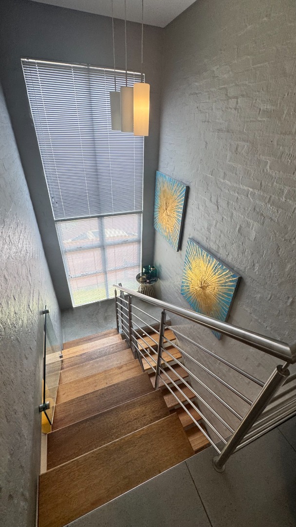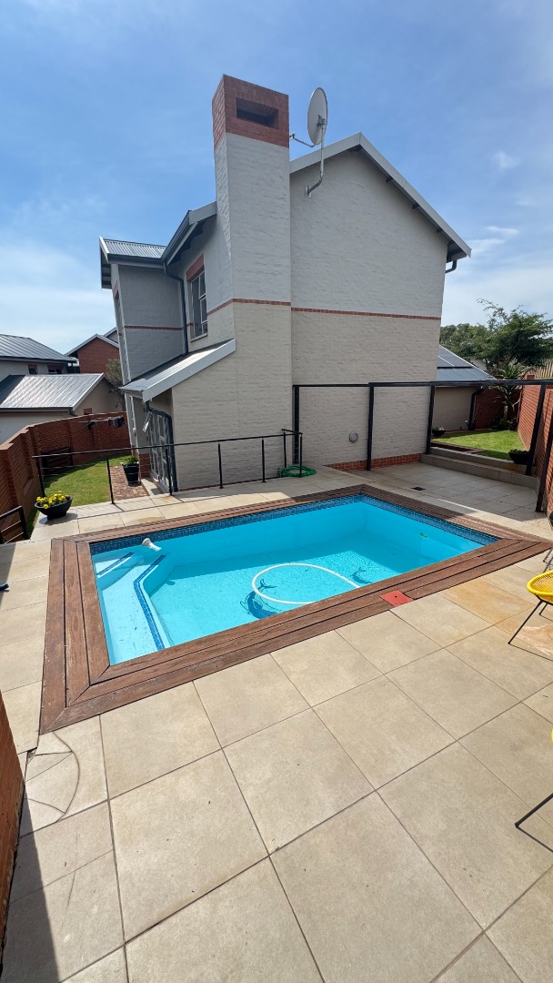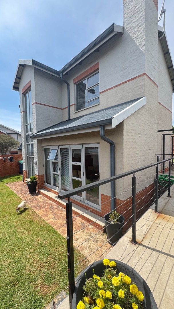 This modern two-story townhouse, nestled within the prestigious The Hills Game Reserve Estate in Pretoria, offers a sophisticated lifestyle. Its contemporary design features a striking facade with a spacious double garage and a well-maintained exterior, ensuring excellent kerb appeal. Step inside to an inviting open-concept living and dining area, bathed in abundant natural light from large windows. The interior boasts a modern industrial aesthetic, highlighted by an exposed concrete ceiling, large format tile flooring, and a captivating floating staircase. An integrated built-in braai seamlessly extends entertainment possibilities. The sleek, open-plan kitchen is a focal point, featuring two-tone cabinetry, light countertops, and integrated appliances including a gas stove and dishwasher. A convenient pantry and dedicated space for a washing machine enhance its functionality. Upstairs, three comfortable bedrooms provide private retreats, complemented by three well-appointed bathrooms, including a modern en-suite. A stylish guest toilet on the ground floor adds convenience for residents and visitors alike. Outdoor living is a delight with a private patio, garden, and a refreshing pool, perfect for relaxation and entertaining. The property is pet-friendly, and a deck offers additional versatile space. Residents benefit from the estate's comprehensive security, including 24-hour security, electric fencing, and access gate control. The home is fibre-ready and equipped with a battery inverter, ensuring uninterrupted connectivity and power. Key Features: * 3 Bedrooms, 3 Bathrooms (1 En-suite) * Open-plan living with modern industrial aesthetic * Sleek kitchen with integrated appliances and pantry * Built-in braai * Private garden, patio, pool, and deck * Double garage * Fibre-ready and battery inverter * 24-hour security in a secure estate * Pet-friendly