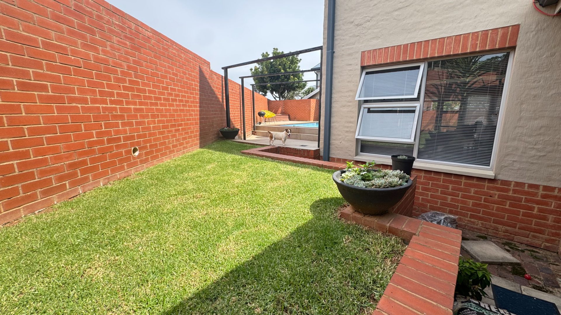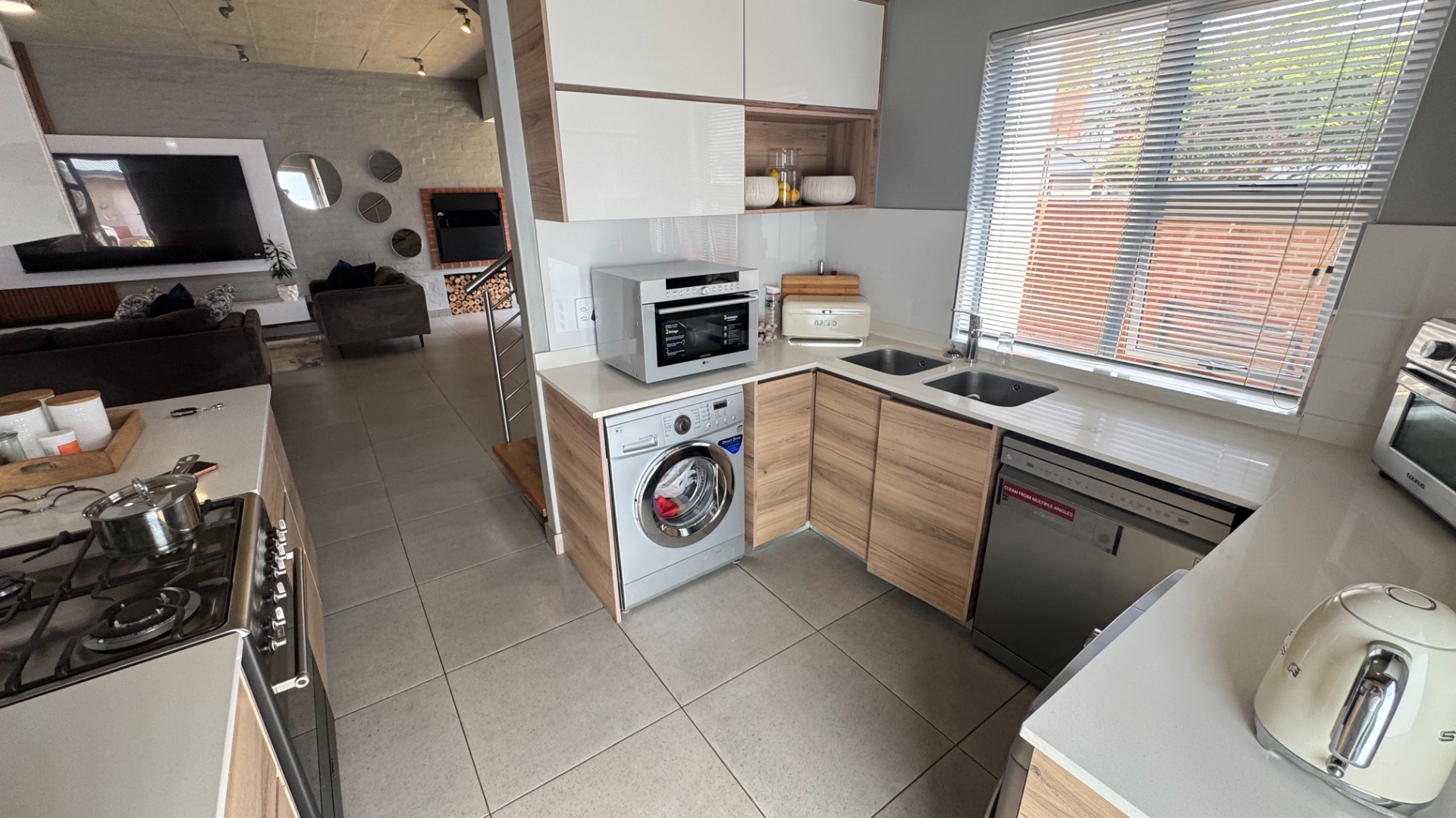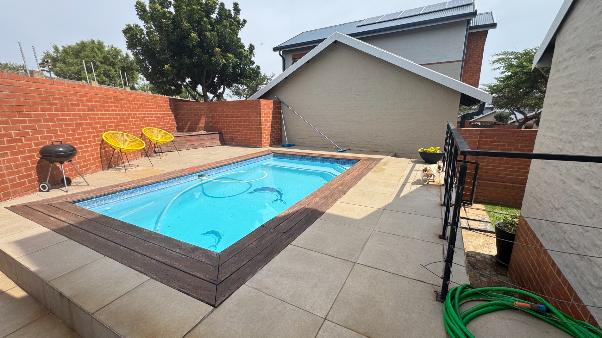 This modern two-story townhouse, nestled within the prestigious The Hills Game Reserve Estate in Pretoria, offers a sophisticated lifestyle. Its contemporary design features a striking facade with a spacious double garage and a well-maintained exterior, ensuring excellent kerb appeal. Step inside to an inviting open-concept living and dining area, bathed in abundant natural light from large windows. The interior boasts a modern industrial aesthetic, highlighted by an exposed concrete ceiling, large format tile flooring, and a captivating floating staircase. An integrated built-in braai seamlessly extends entertainment possibilities. The sleek, open-plan kitchen is a focal point, featuring two-tone cabinetry, light countertops, and integrated appliances including a gas stove and dishwasher. A convenient pantry and dedicated space for a washing machine enhance its functionality. Upstairs, three comfortable bedrooms provide private retreats, complemented by three well-appointed bathrooms, including a modern en-suite. A stylish guest toilet on the ground floor adds convenience for residents and visitors alike. Outdoor living is a delight with a private patio, garden, and a refreshing pool, perfect for relaxation and entertaining. The property is pet-friendly, and a deck offers additional versatile space. Residents benefit from the estate's comprehensive security, including 24-hour security, electric fencing, and access gate control. The home is fibre-ready and equipped with a battery inverter, ensuring uninterrupted connectivity and power. Key Features: * 3 Bedrooms, 3 Bathrooms (1 En-suite) * Open-plan living with modern industrial aesthetic * Sleek kitchen with integrated appliances and pantry * Built-in braai * Private garden, patio, pool, and deck * Double garage * Fibre-ready and battery inverter * 24-hour security in a secure estate * Pet-friendly