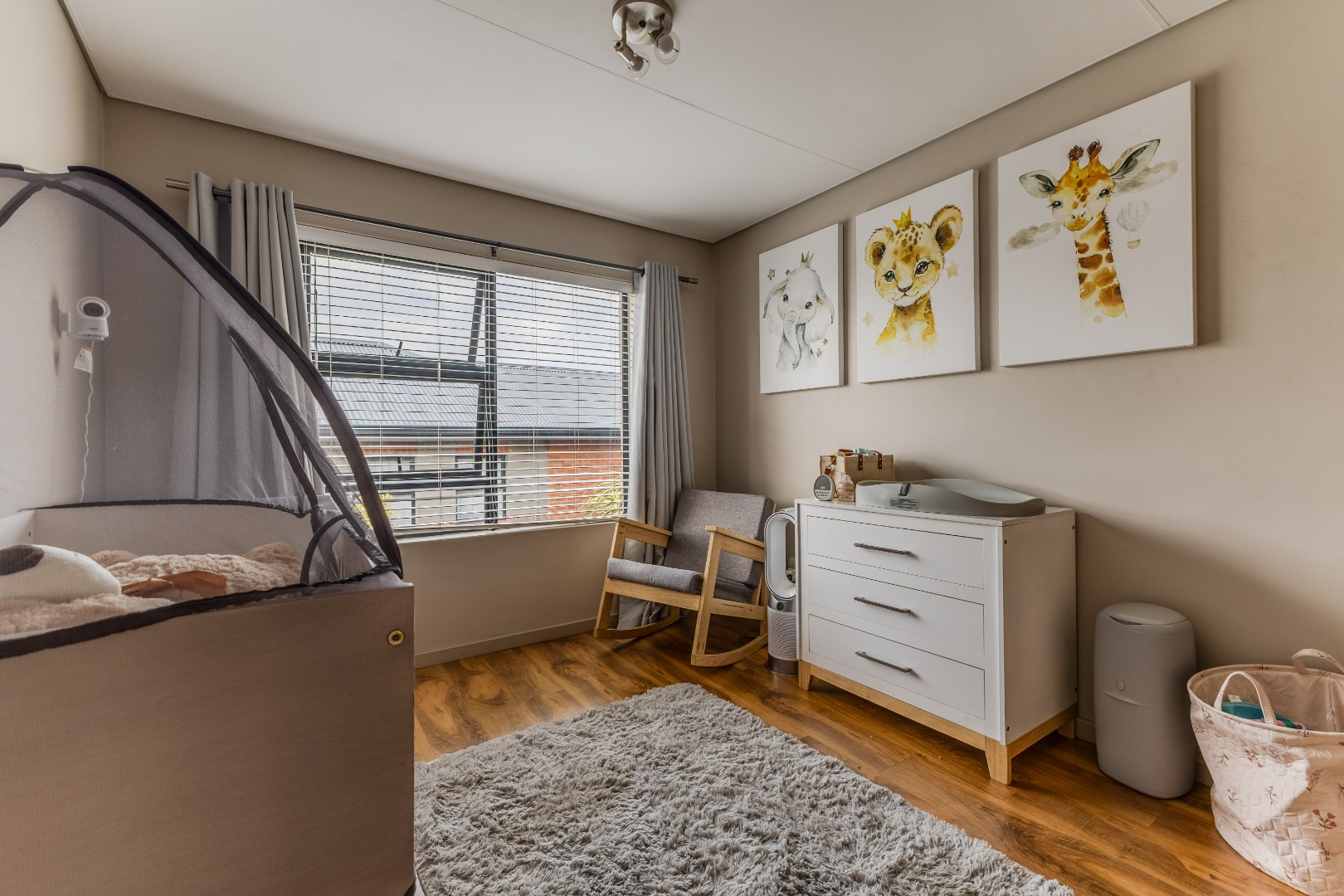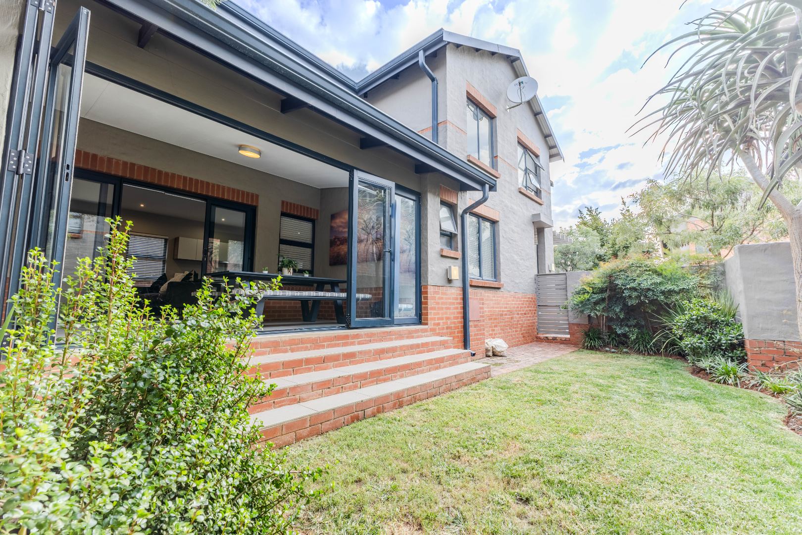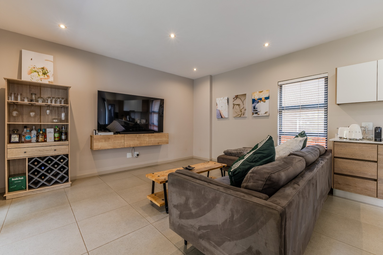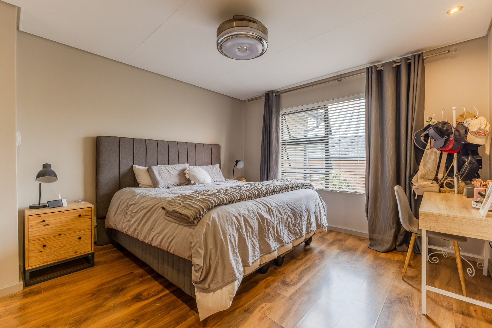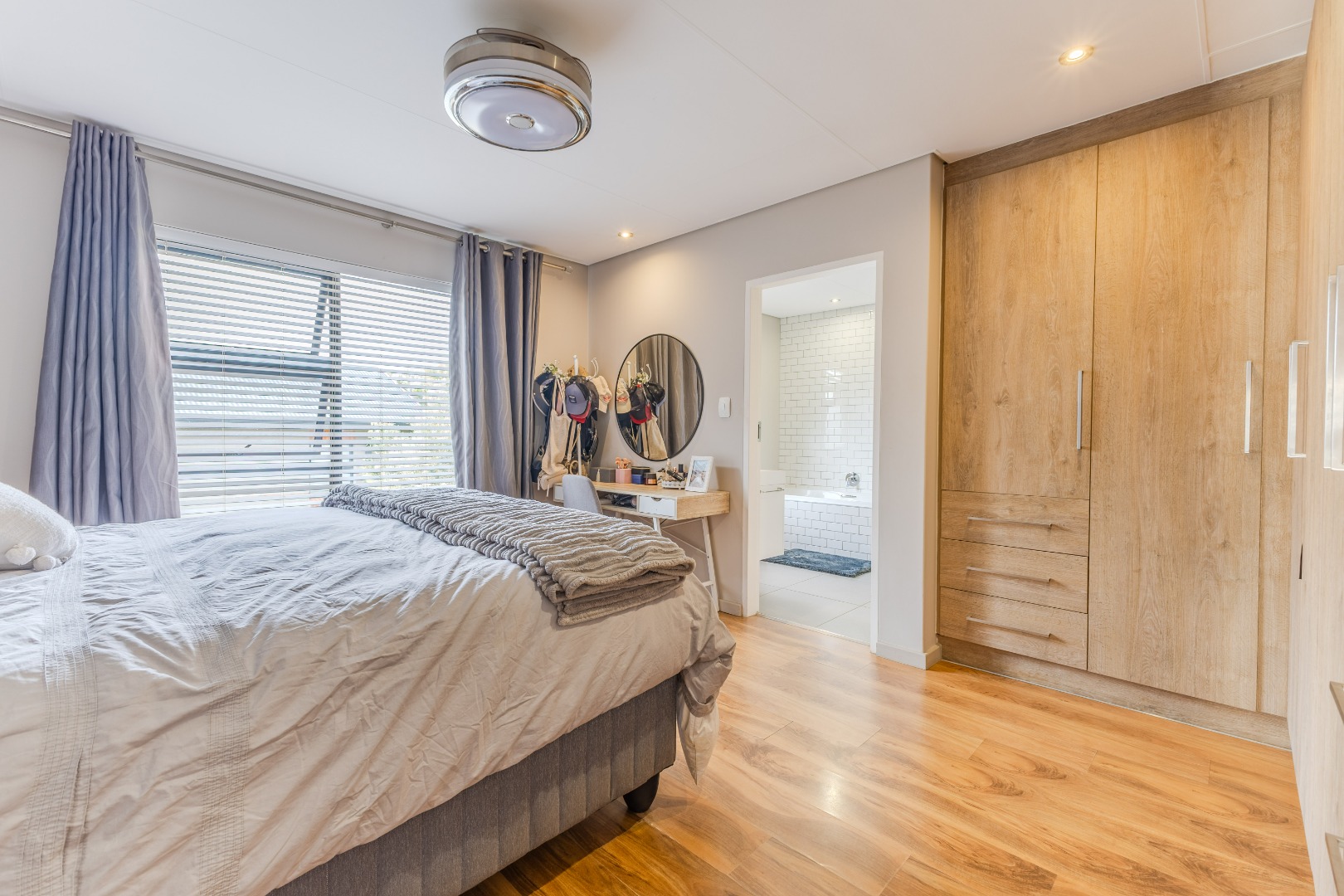 Discover modern living in this stylish 3-bedroom, 2.5-bathroom home located within the prestigious The Hills Game Reserve Estate in Pretoria. This contemporary residence boasts an inviting open-plan layout, seamlessly connecting the living, dining, and kitchen areas. The sleek kitchen features two-tone cabinetry, integrated stainless steel appliances including a gas hob and oven, a microwave, and a convenient breakfast bar, perfect for casual dining and entertaining. The property offers three well-appointed bedrooms, with the main bedroom benefiting from an en-suite bathroom, ensuring comfort and privacy. An additional full bathroom serves the remaining bedrooms, while a guest toilet on the ground floor adds to the home's practicality. High ceilings and tiled flooring throughout enhance the spacious and clean aesthetic. Step outside to a private, covered patio accessible via large sliding doors, creating an effortless indoor-outdoor flow. This area is ideal for relaxation and features a built-in braai with a prep sink, perfect for entertaining. The compact, landscaped garden provides a tranquil green space. A double garage offers secure parking and additional storage. Residents of this secure estate enjoy 24-hour security, access to a clubhouse, and the unique benefit of a nature reserve lifestyle. The home is equipped with fibre connectivity and solar panels, promoting a sustainable and connected living experience. Pets are also allowed, making it a perfect family home. Key Features: * Modern open-plan living areas * Contemporary kitchen with integrated appliances * Three bedrooms, 2.5 bathrooms (including en-suite) * Covered patio with built-in braai * Double garage * Fibre connectivity and solar panels * 24-hour security in a nature reserve estate * Access to clubhouse facilities