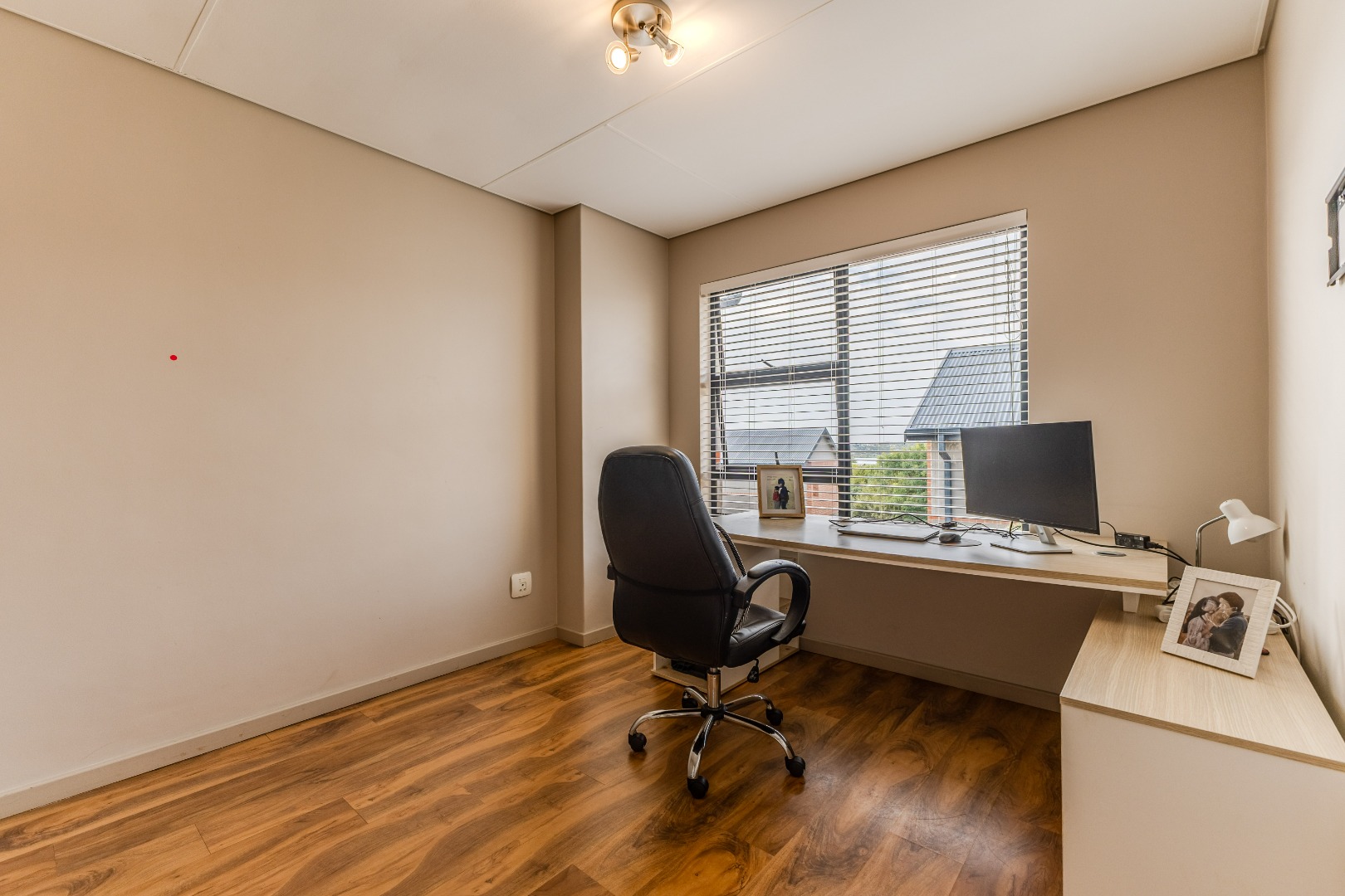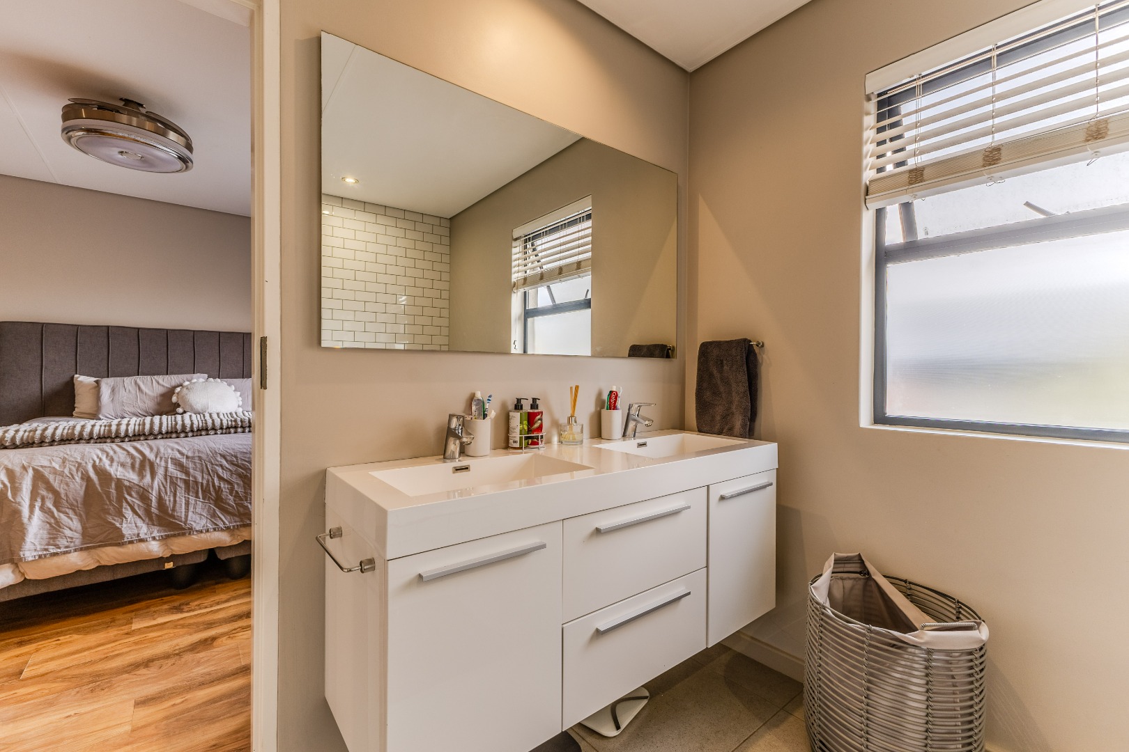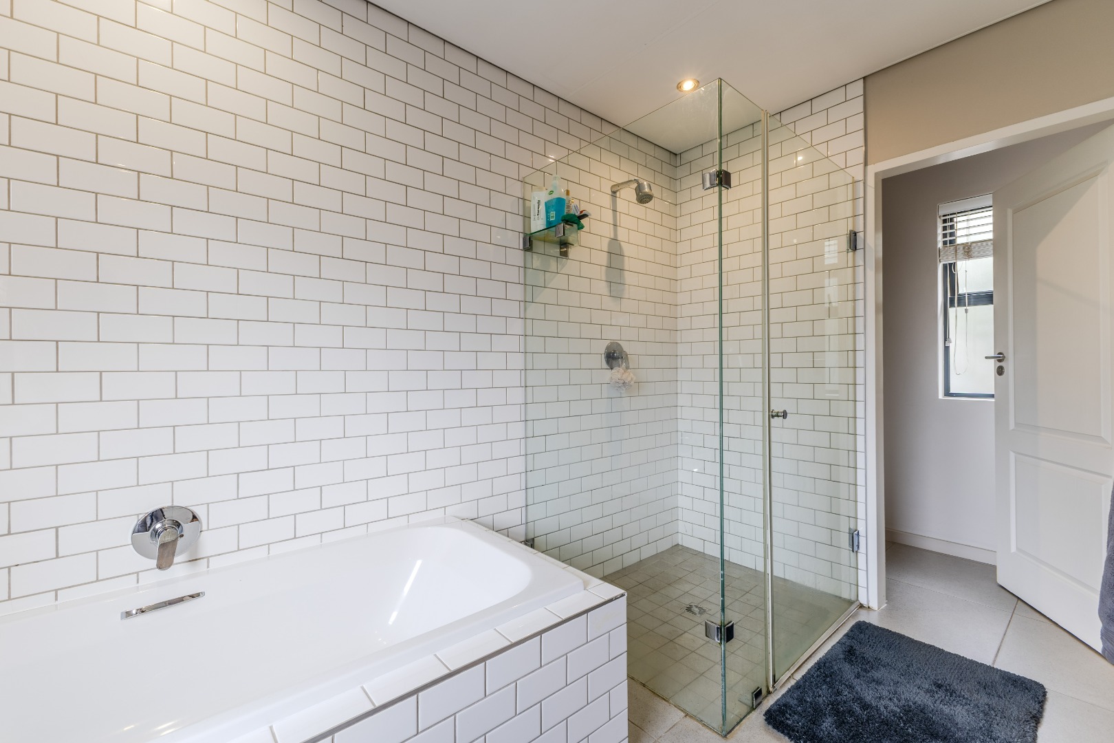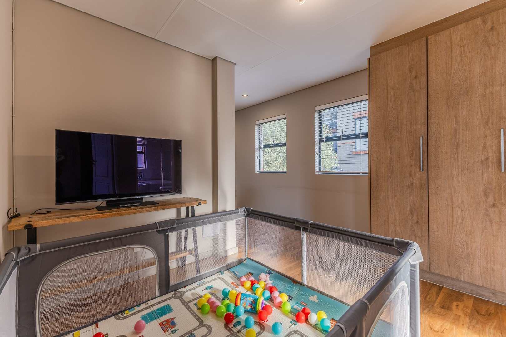 Discover modern living in this stylish 3-bedroom, 2.5-bathroom home located within the prestigious The Hills Game Reserve Estate in Pretoria. This contemporary residence boasts an inviting open-plan layout, seamlessly connecting the living, dining, and kitchen areas. The sleek kitchen features two-tone cabinetry, integrated stainless steel appliances including a gas hob and oven, a microwave, and a convenient breakfast bar, perfect for casual dining and entertaining. The property offers three well-appointed bedrooms, with the main bedroom benefiting from an en-suite bathroom, ensuring comfort and privacy. An additional full bathroom serves the remaining bedrooms, while a guest toilet on the ground floor adds to the home's practicality. High ceilings and tiled flooring throughout enhance the spacious and clean aesthetic. Step outside to a private, covered patio accessible via large sliding doors, creating an effortless indoor-outdoor flow. This area is ideal for relaxation and features a built-in braai with a prep sink, perfect for entertaining. The compact, landscaped garden provides a tranquil green space. A double garage offers secure parking and additional storage. Residents of this secure estate enjoy 24-hour security, access to a clubhouse, and the unique benefit of a nature reserve lifestyle. The home is equipped with fibre connectivity and solar panels, promoting a sustainable and connected living experience. Pets are also allowed, making it a perfect family home. Key Features: * Modern open-plan living areas * Contemporary kitchen with integrated appliances * Three bedrooms, 2.5 bathrooms (including en-suite) * Covered patio with built-in braai * Double garage * Fibre connectivity and solar panels * 24-hour security in a nature reserve estate * Access to clubhouse facilities