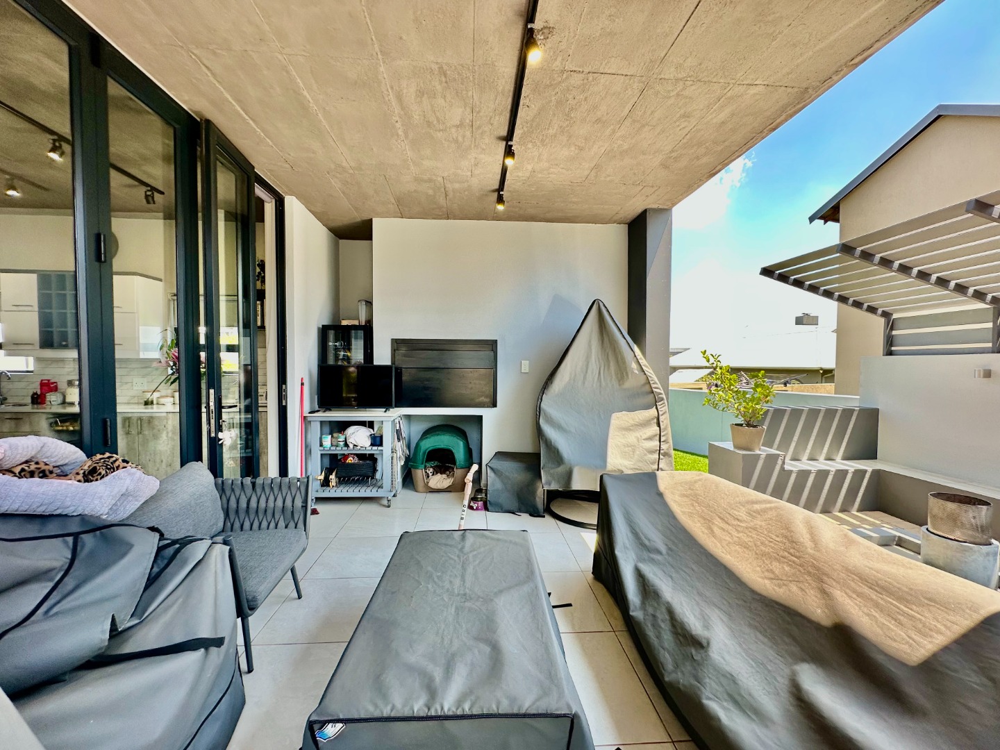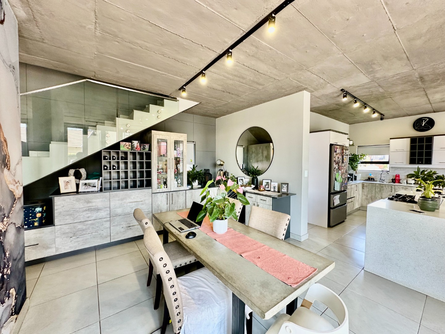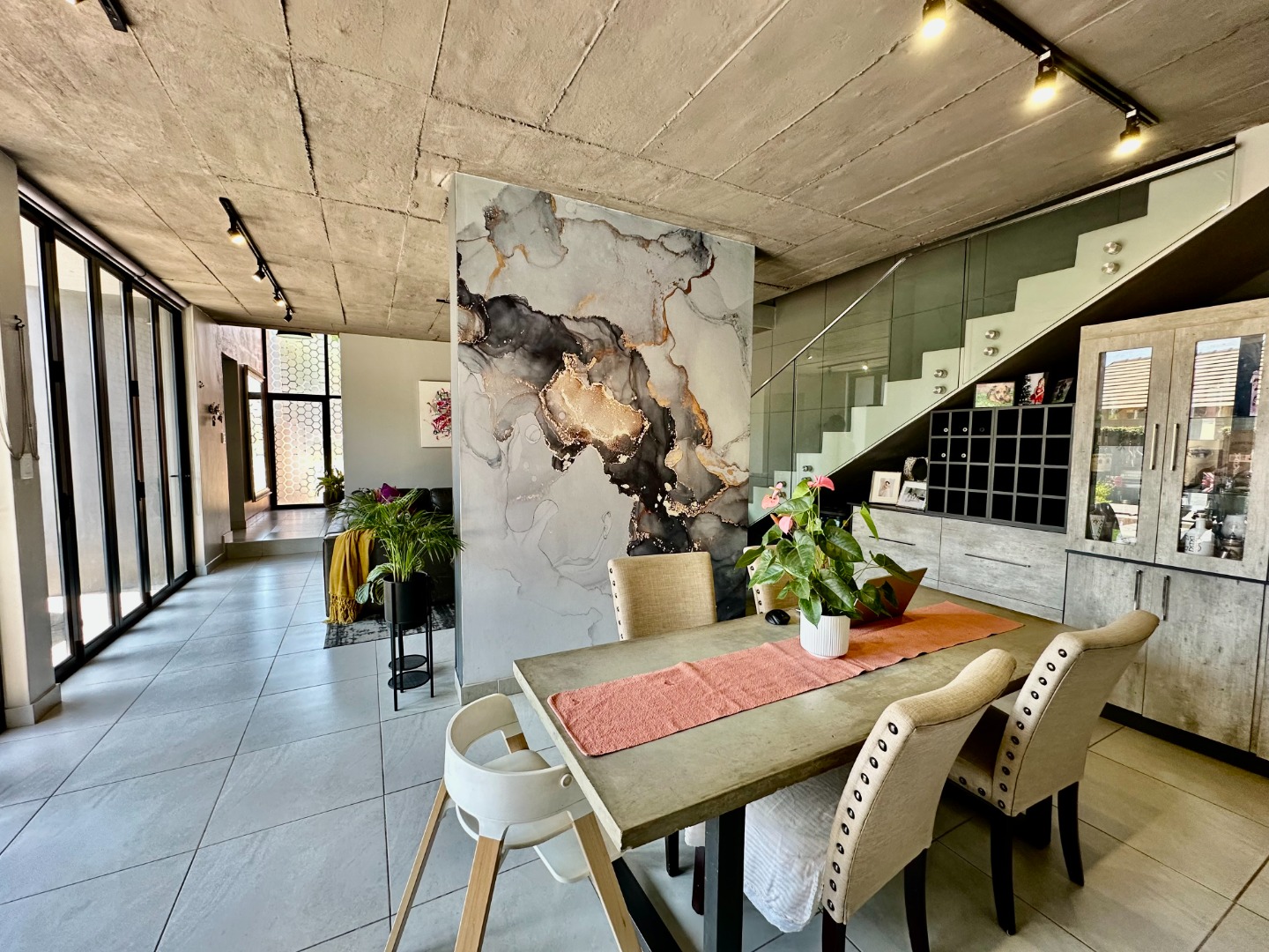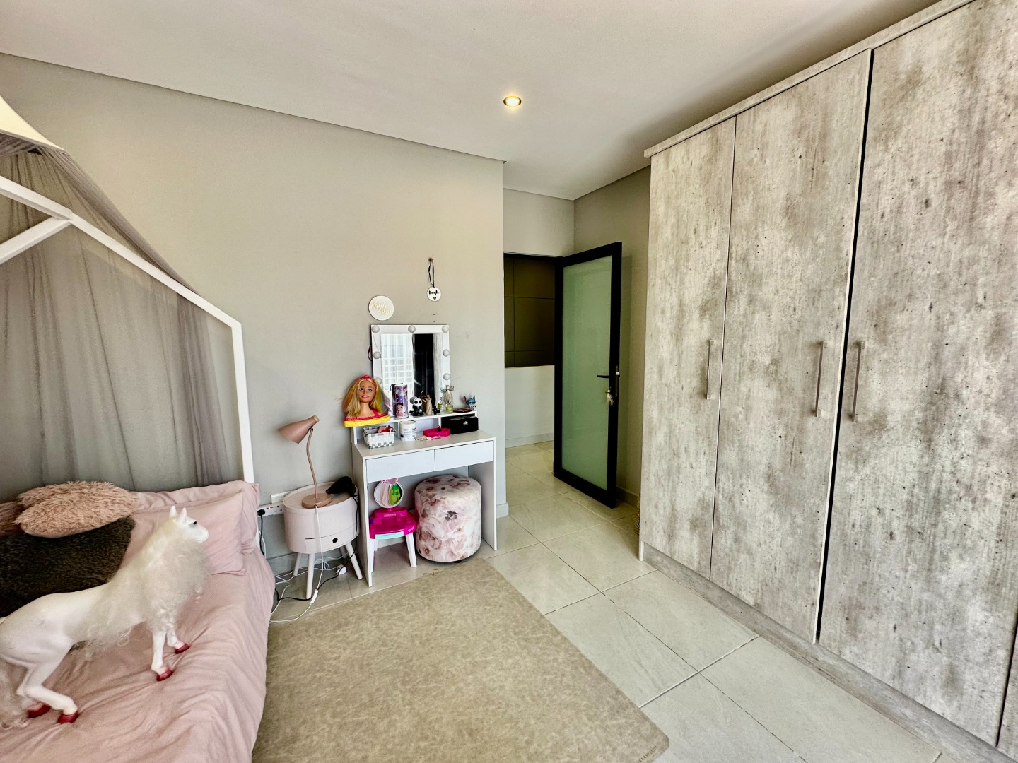 The home welcomes you with an elegant entrance hall leading into bright, open-plan living spaces. The lounge and dining area flow seamlessly into one another, with stacking doors opening to the entertainment patio. A built-in bar in the dining area makes it ideal for hosting guests or enjoying family time. A guest bedroom with an en-suite bathroom is conveniently located on the ground floor.