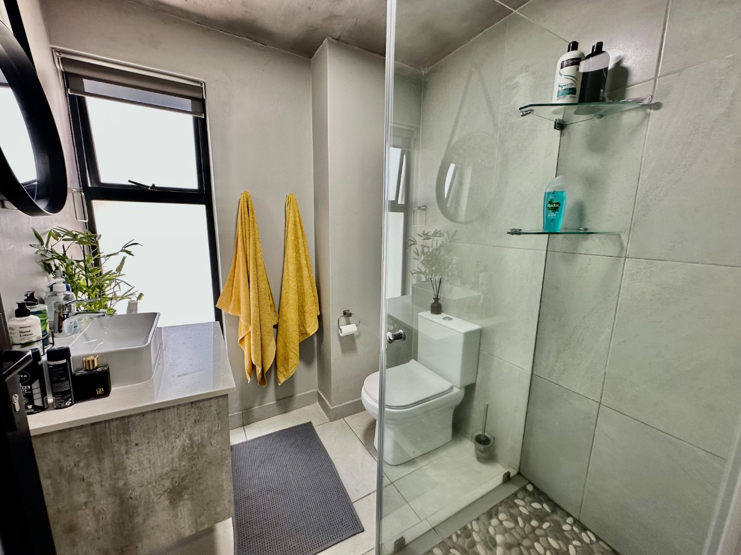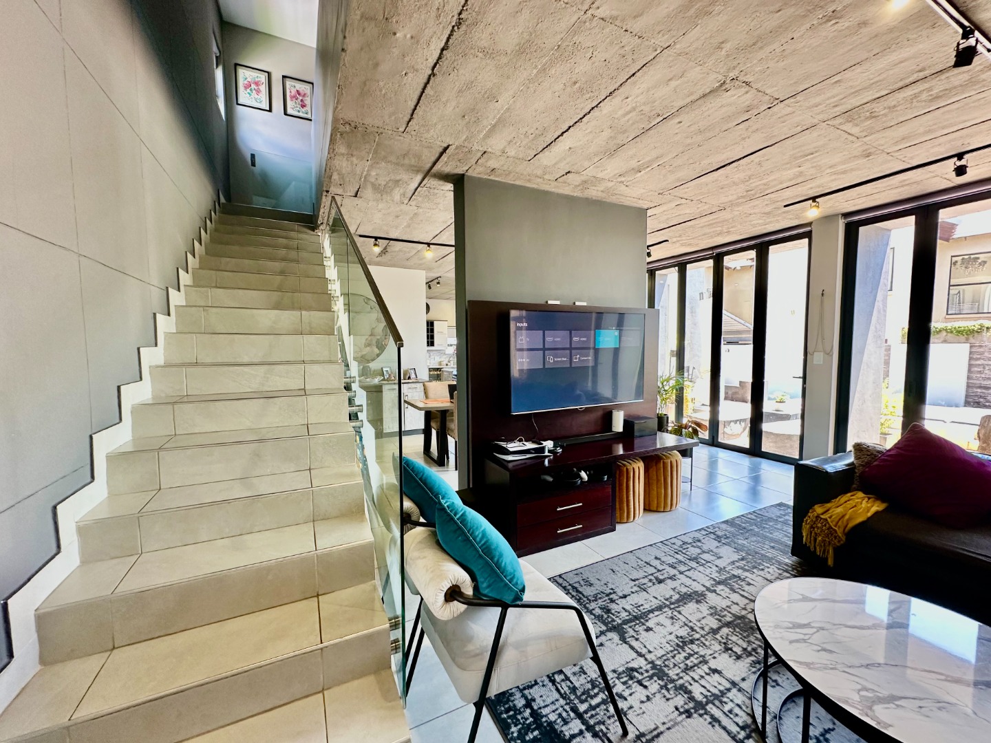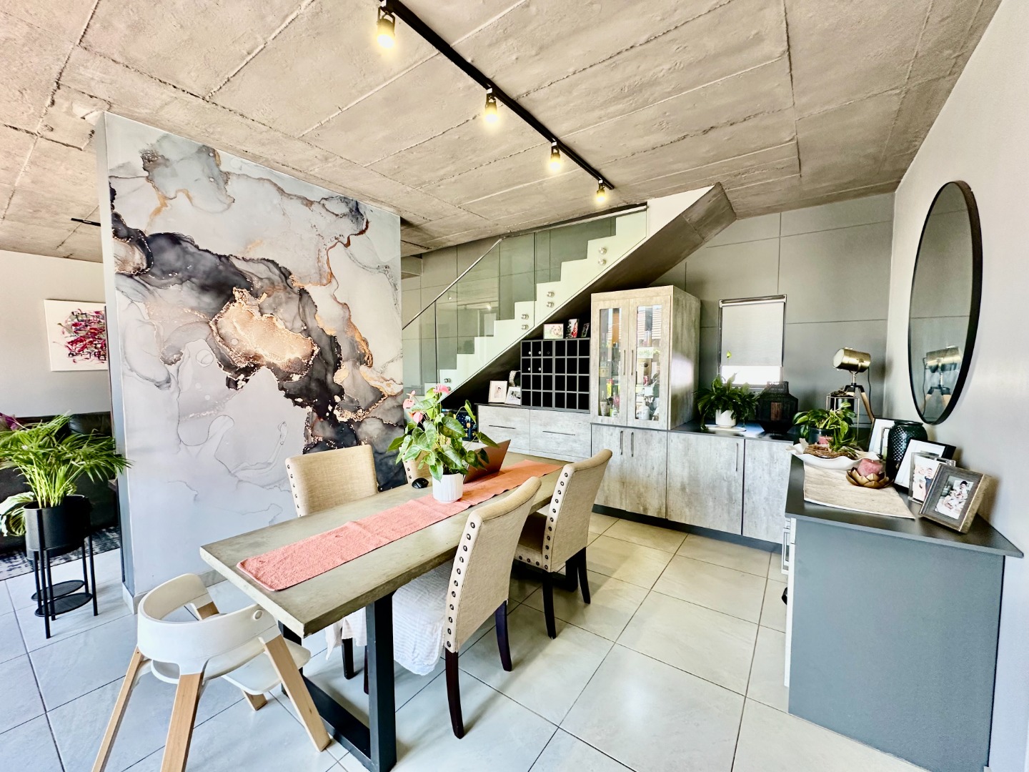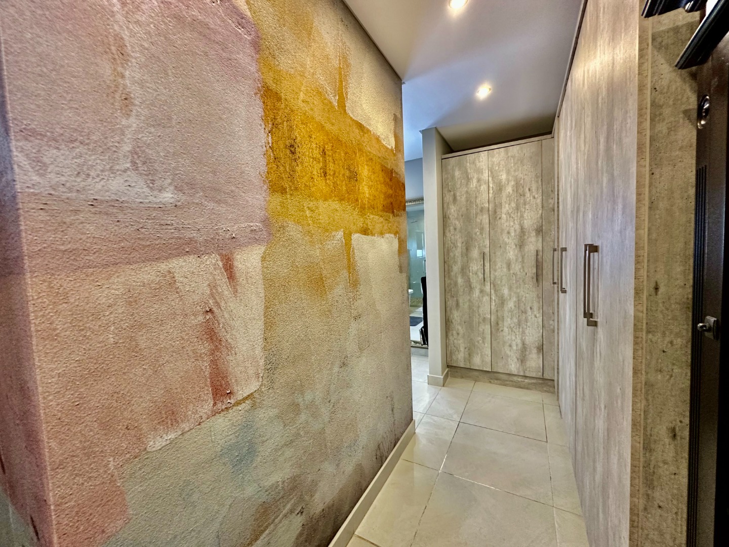 The home welcomes you with an elegant entrance hall leading into bright, open-plan living spaces. The lounge and dining area flow seamlessly into one another, with stacking doors opening to the entertainment patio. A built-in bar in the dining area makes it ideal for hosting guests or enjoying family time. A guest bedroom with an en-suite bathroom is conveniently located on the ground floor.