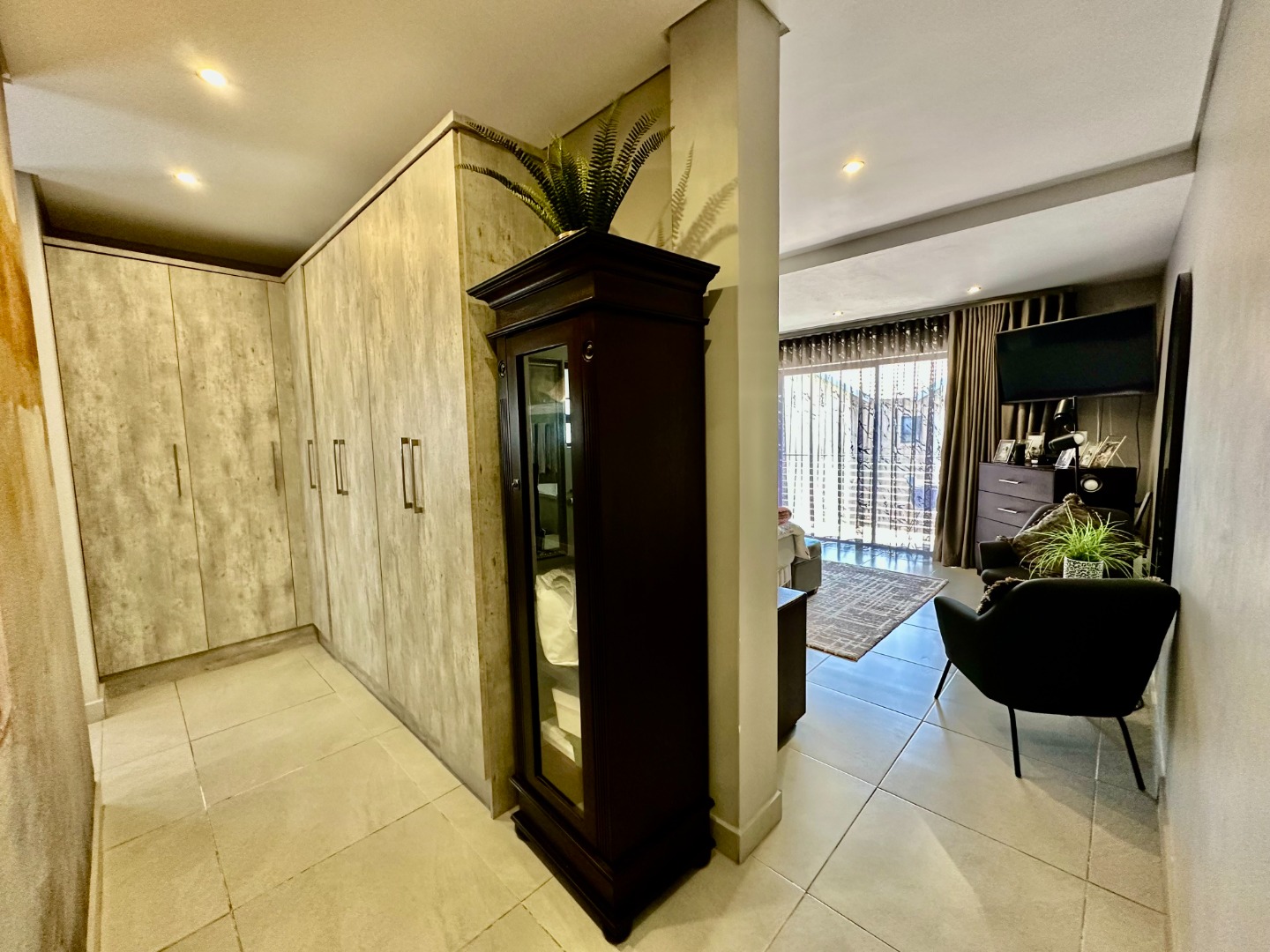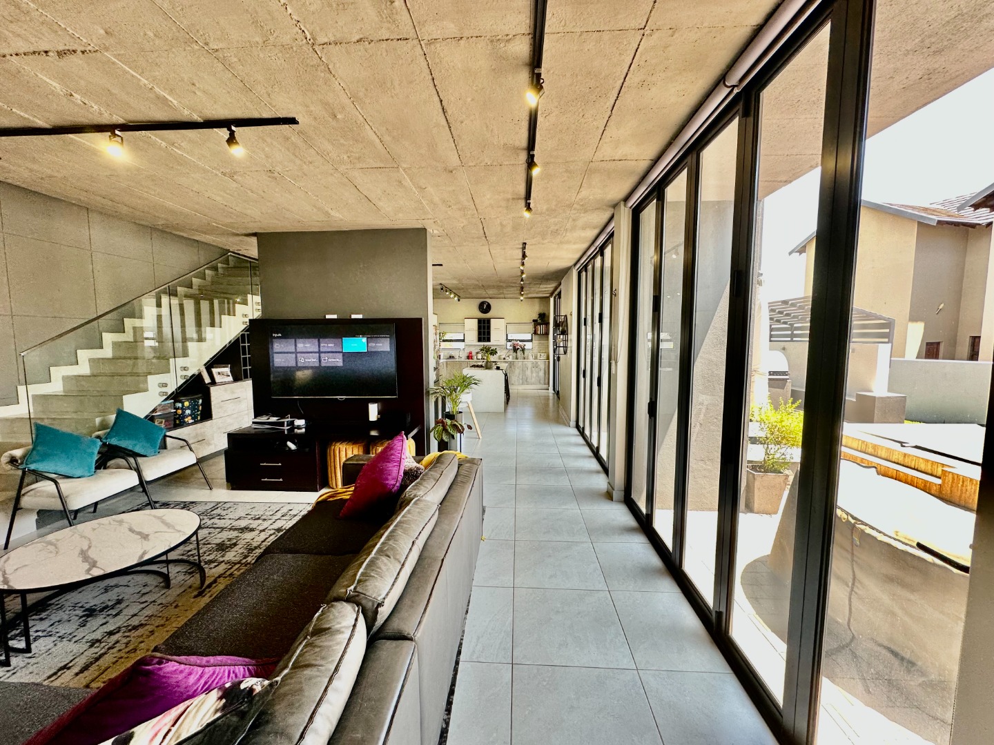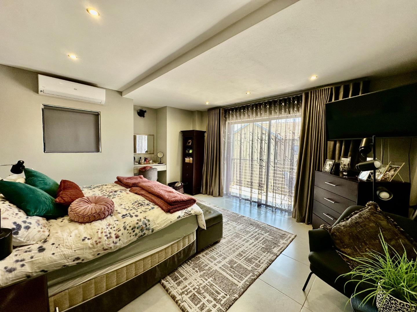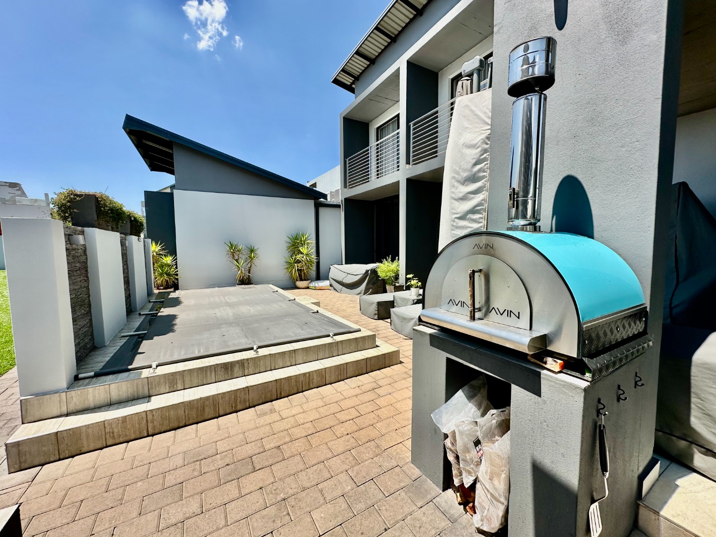 Enjoy outdoor living at its best with a spacious patio, built-in braai, and boma area overlooking a heated swimming pool. The landscaped garden is low maintenance and features an automated irrigation system, staff quarters, and an outside bathroom.