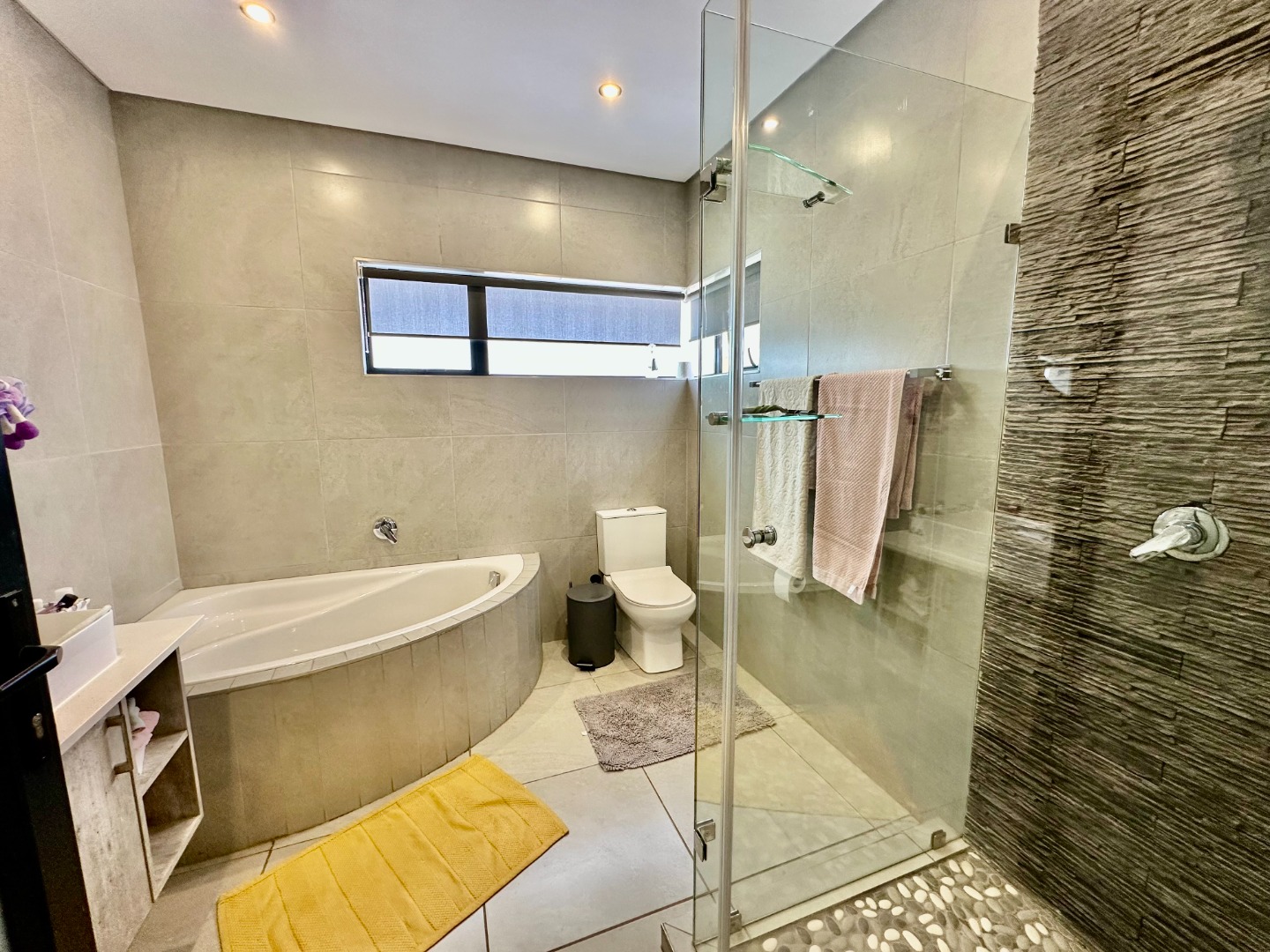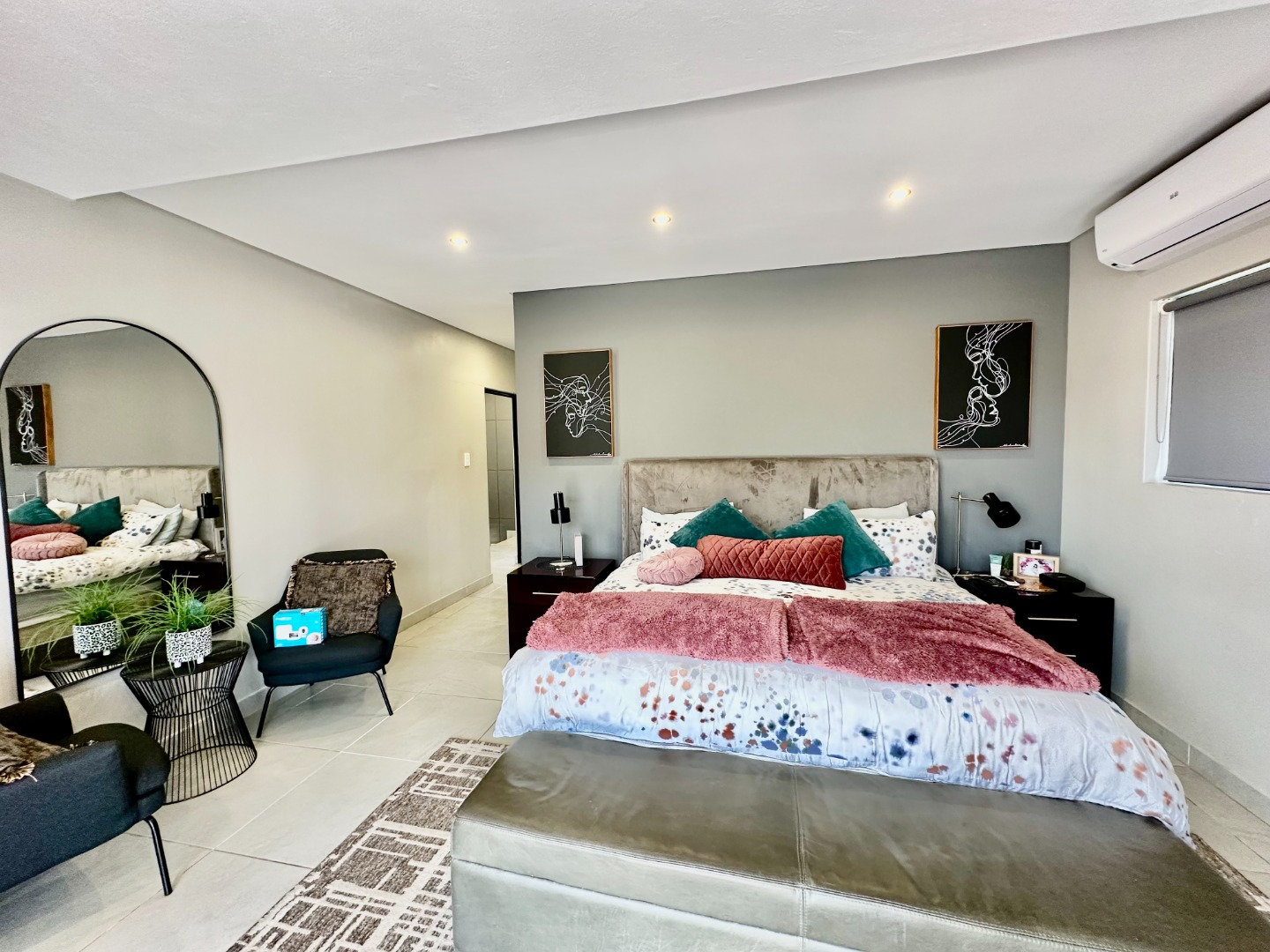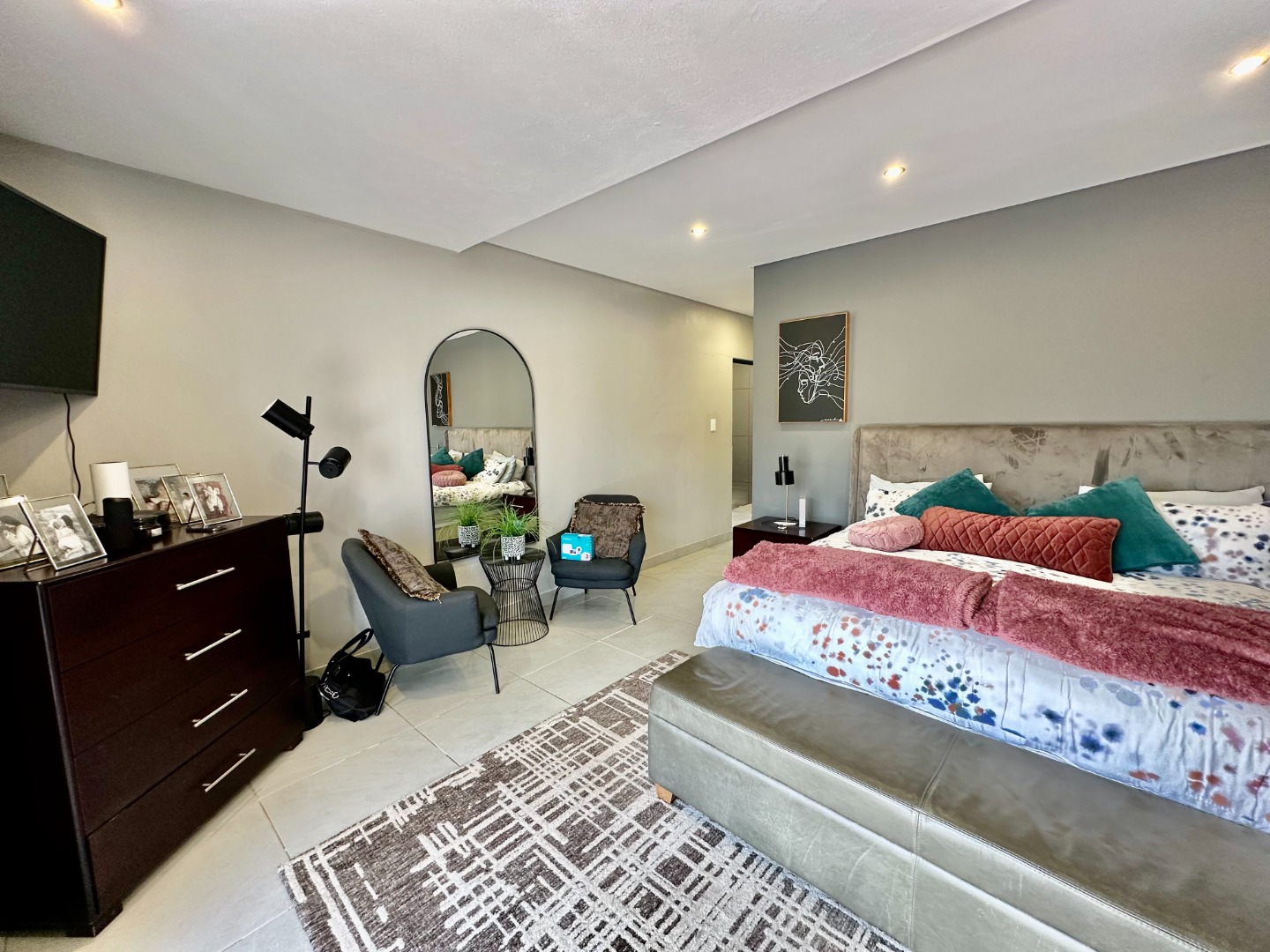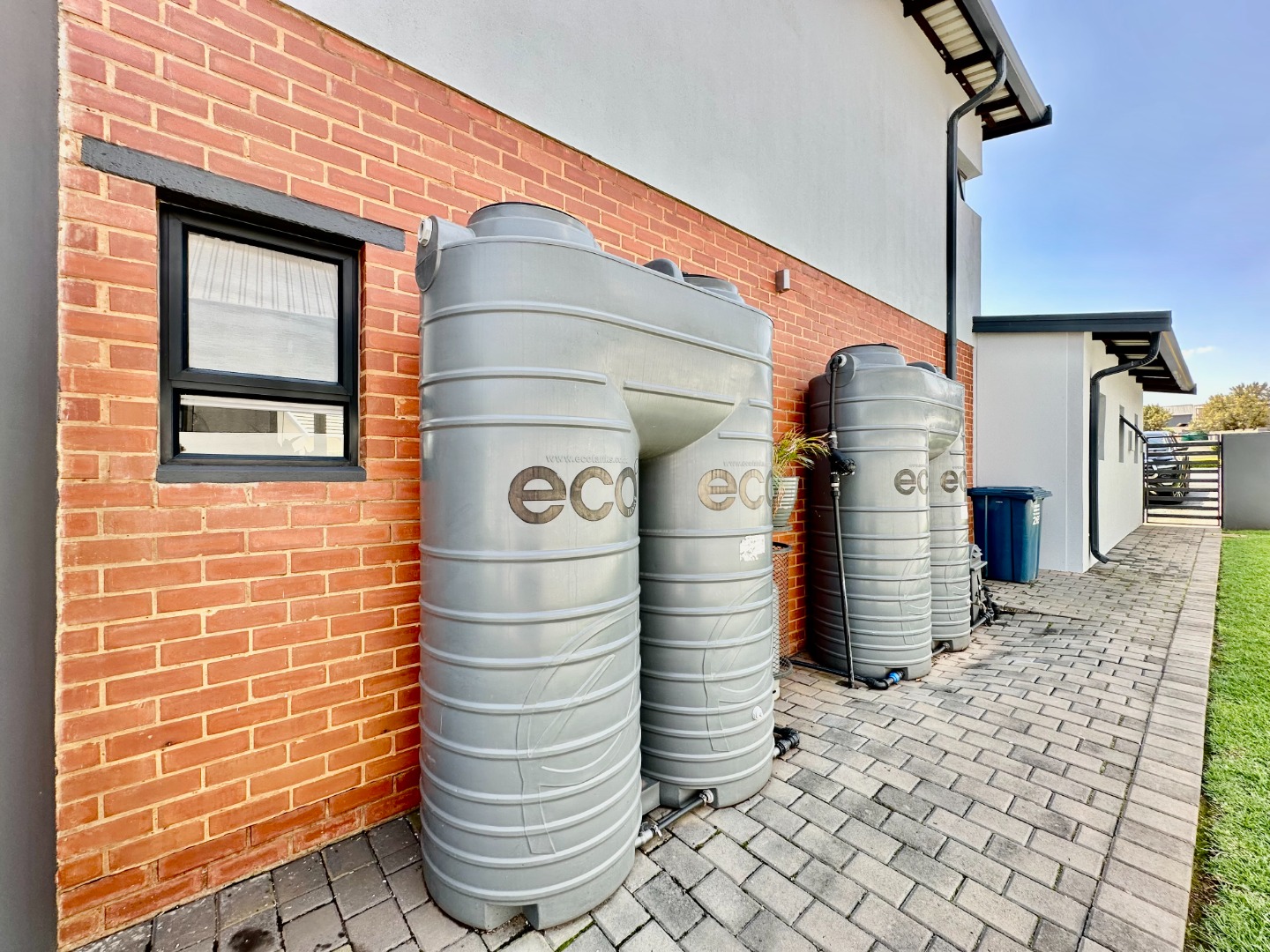 This home is fully equipped with an 11.5kW inverter, 10 solar panels, and batteries, ensuring reliable power supply and reduced electricity costs. Two 2,000-litre water tanks, a borehole, and an automated irrigation system help maintain the lush garden while supporting sustainable living.
