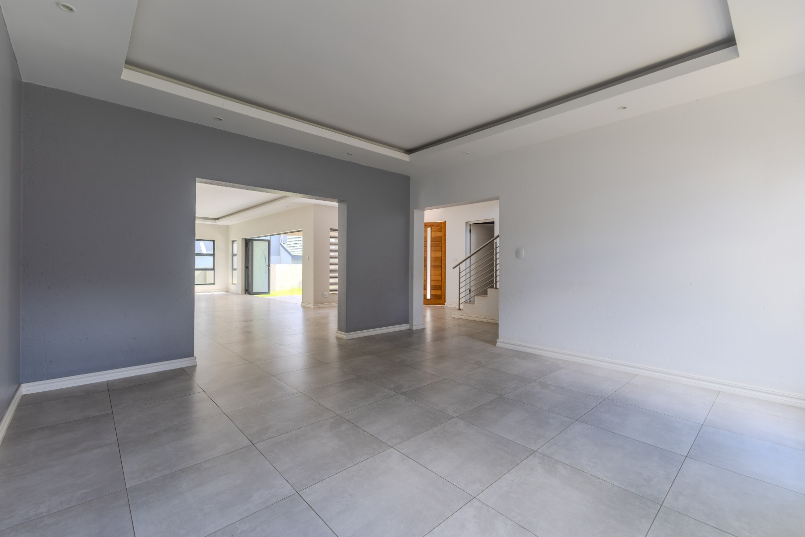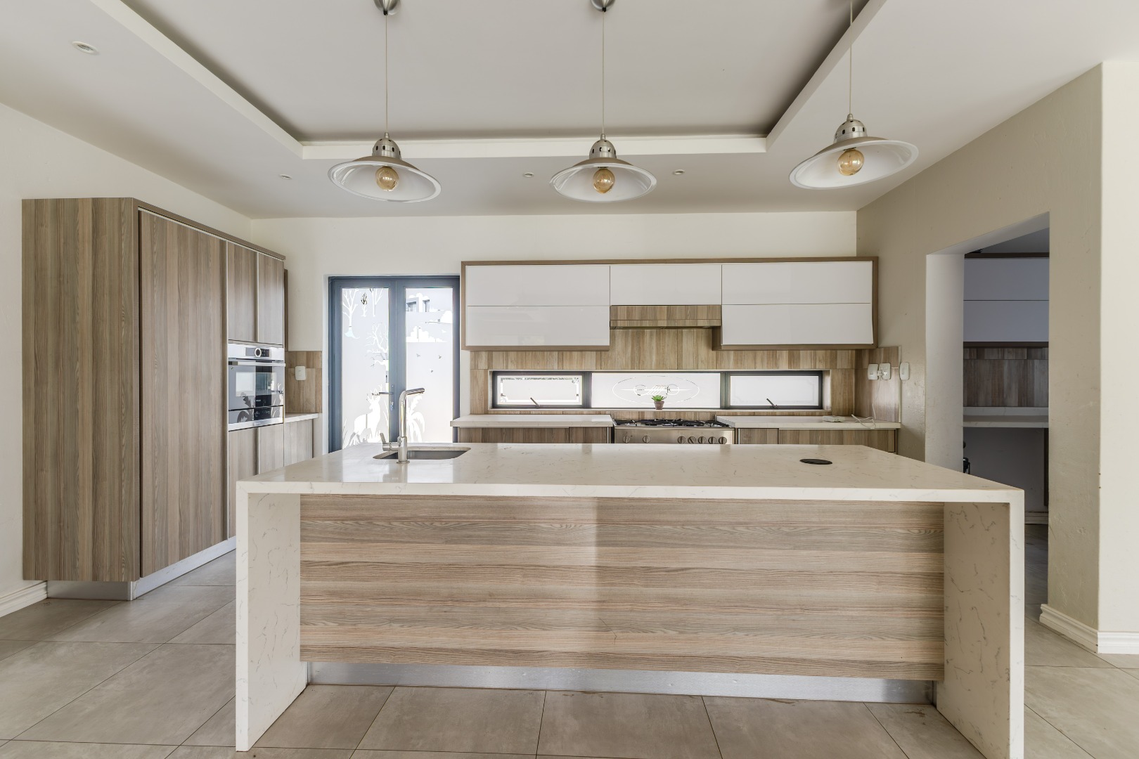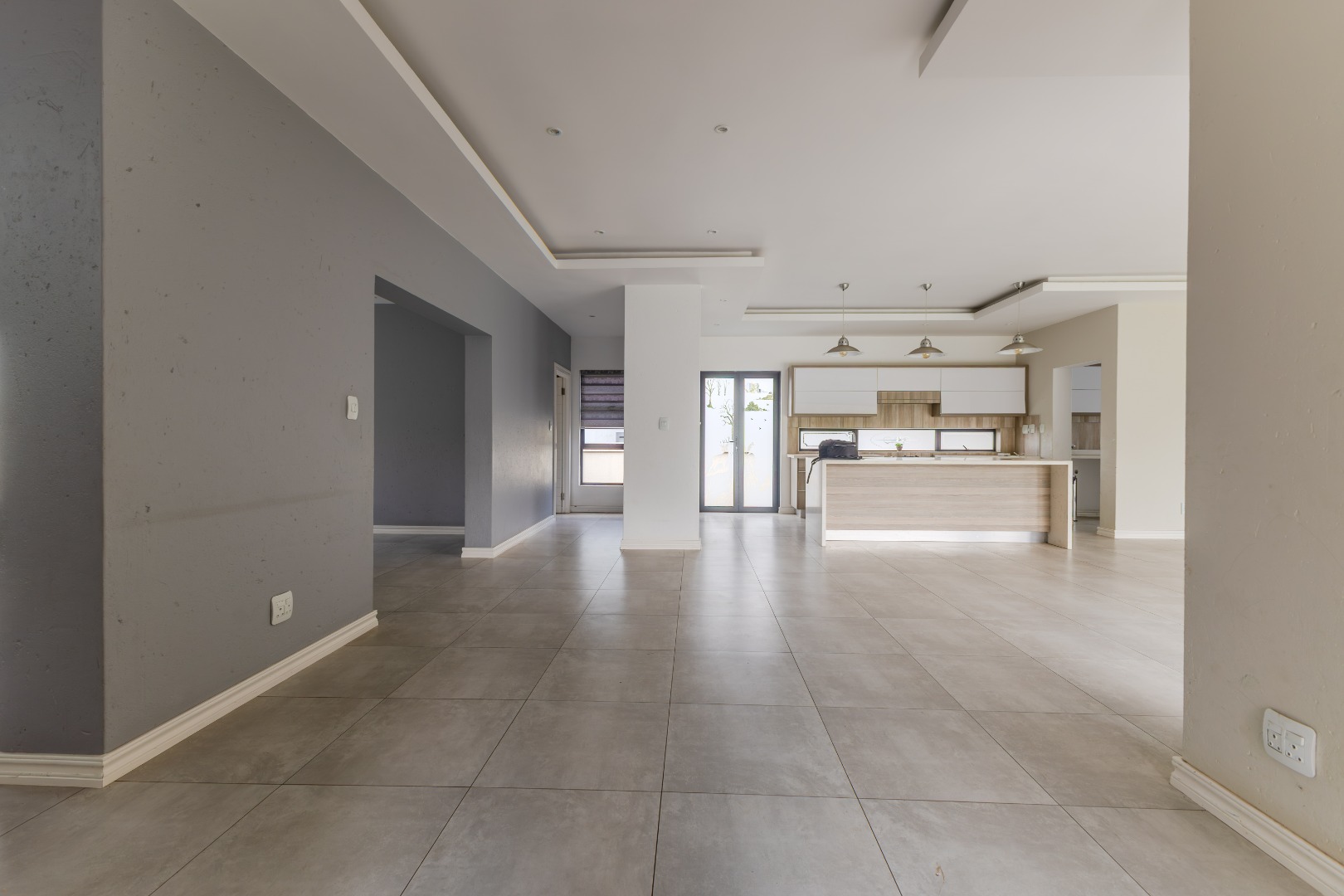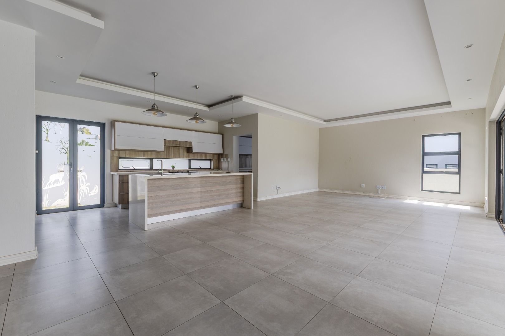 Step into a world of refined living with this beautifully designed 4-bedroom, 4-bathroom residence — a home where timeless elegance and modern convenience blend seamlessly. From the moment you arrive, the welcoming charm of wooden French-style double doors sets the tone for what lies beyond. The heart of the home reveals an expansive open-plan design where the TV lounge, dining area, and kitchen flow effortlessly together, creating an inviting space ideal for both relaxed family living and sophisticated entertaining. The kitchen, styled with natural wood finishes and a striking white island, is a true culinary centerpiece equipped with a gas hob and eye-level oven, perfectly suited for the aspiring home chef. Large stack doors lead to a covered patio with a built-in braai, offering a seamless indoor-outdoor lifestyle complemented by a manicured garden — an entertainer’s dream in any season.