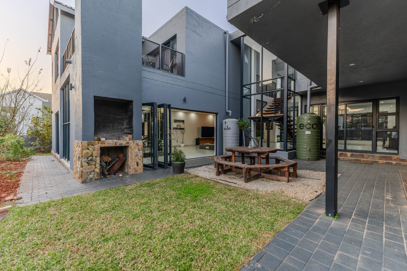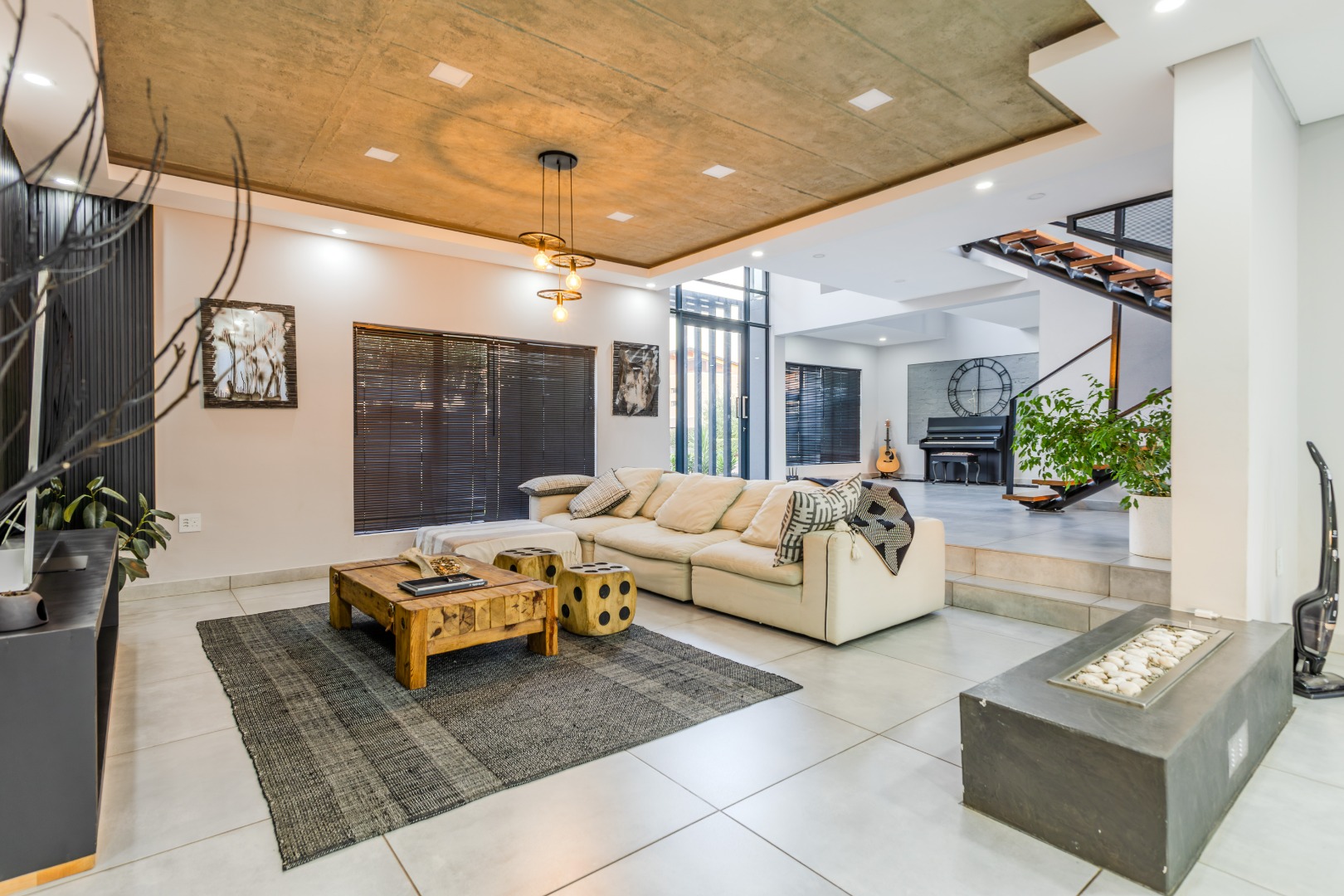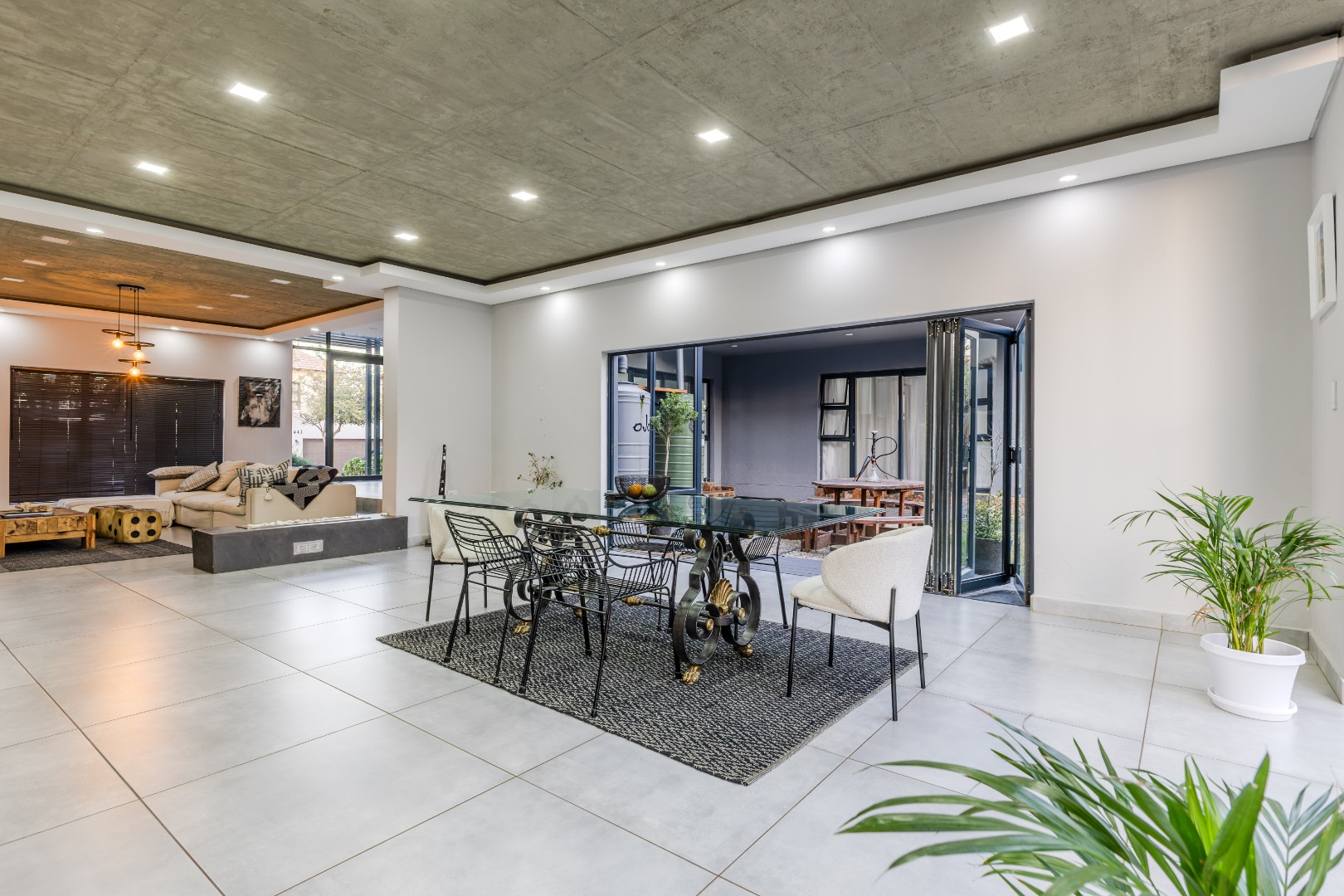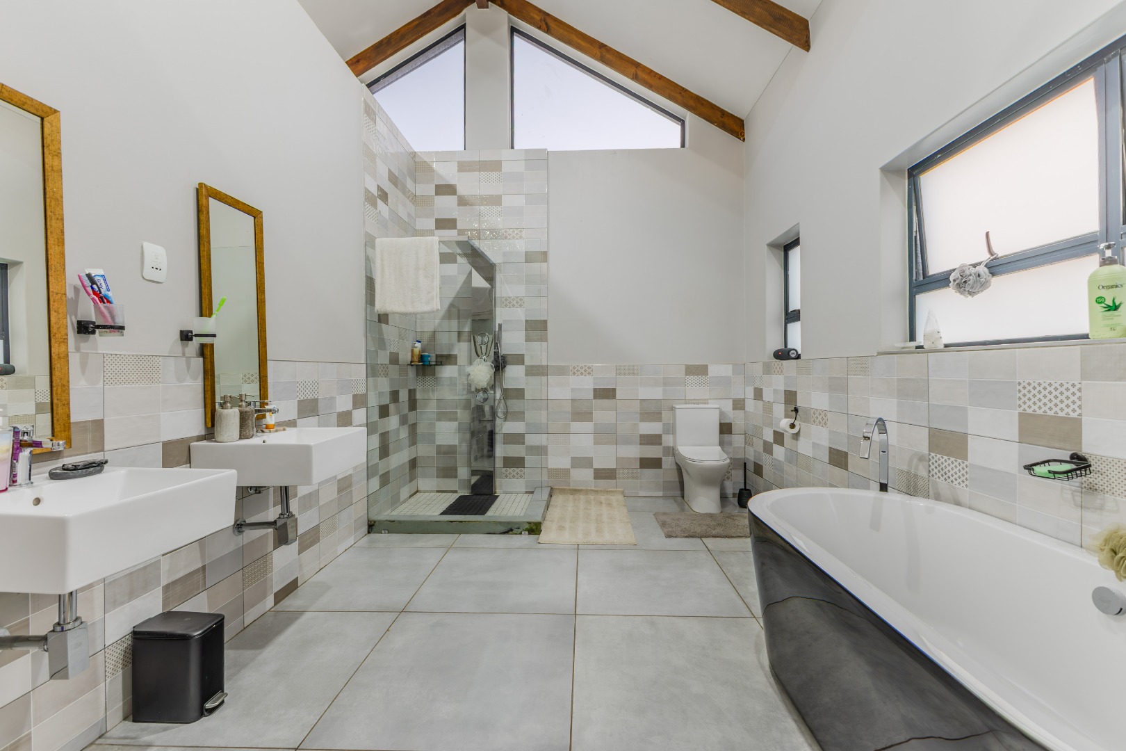 On the right, the expansive open-plan living area is thoughtfully laid out for both family living and social gatherings. The living and dining areas flow effortlessly into the modern kitchen, featuring ample counter space, generous storage, and a separate scullery to maintain a clean and organized space. Large stack doors open out to a covered braai area, ideal for outdoor dining and year-round entertaining. Additional features include double automated garages with direct access to the home, as well as energy-efficient living supported by two solar geysers. Upstairs, the luxurious main suite offers a spacious en-suite bathroom and walk-in wardrobe, creating a serene private retreat. Four additional bedrooms and two well-appointed bathrooms complete the upper level, providing ample accommodation for a growing family or guests. This home offers the perfect blend of style, space, and sustainability—crafted for modern family living in every sense. Contact me today to arrange your exclusive viewing of this remarkable home.