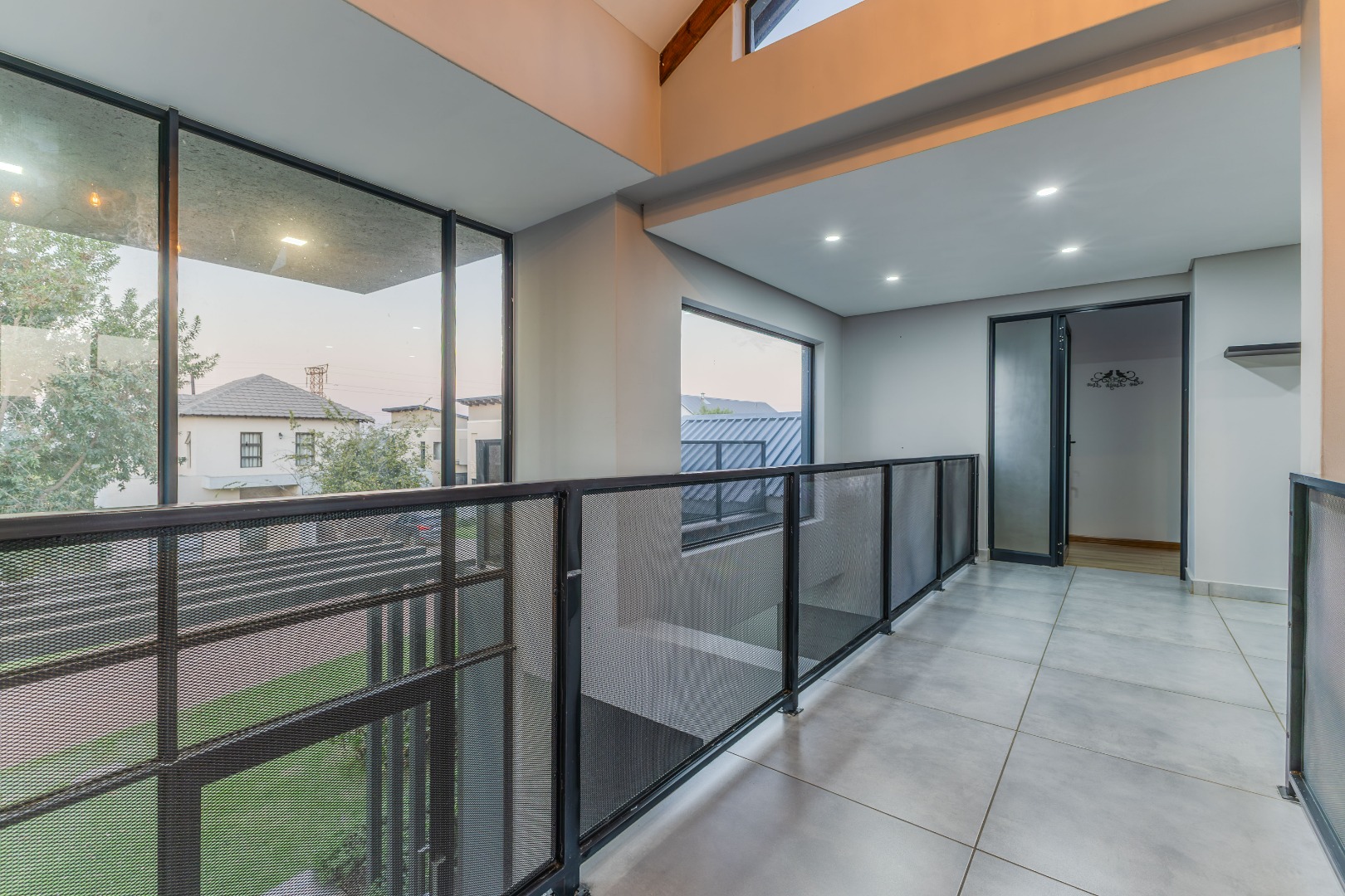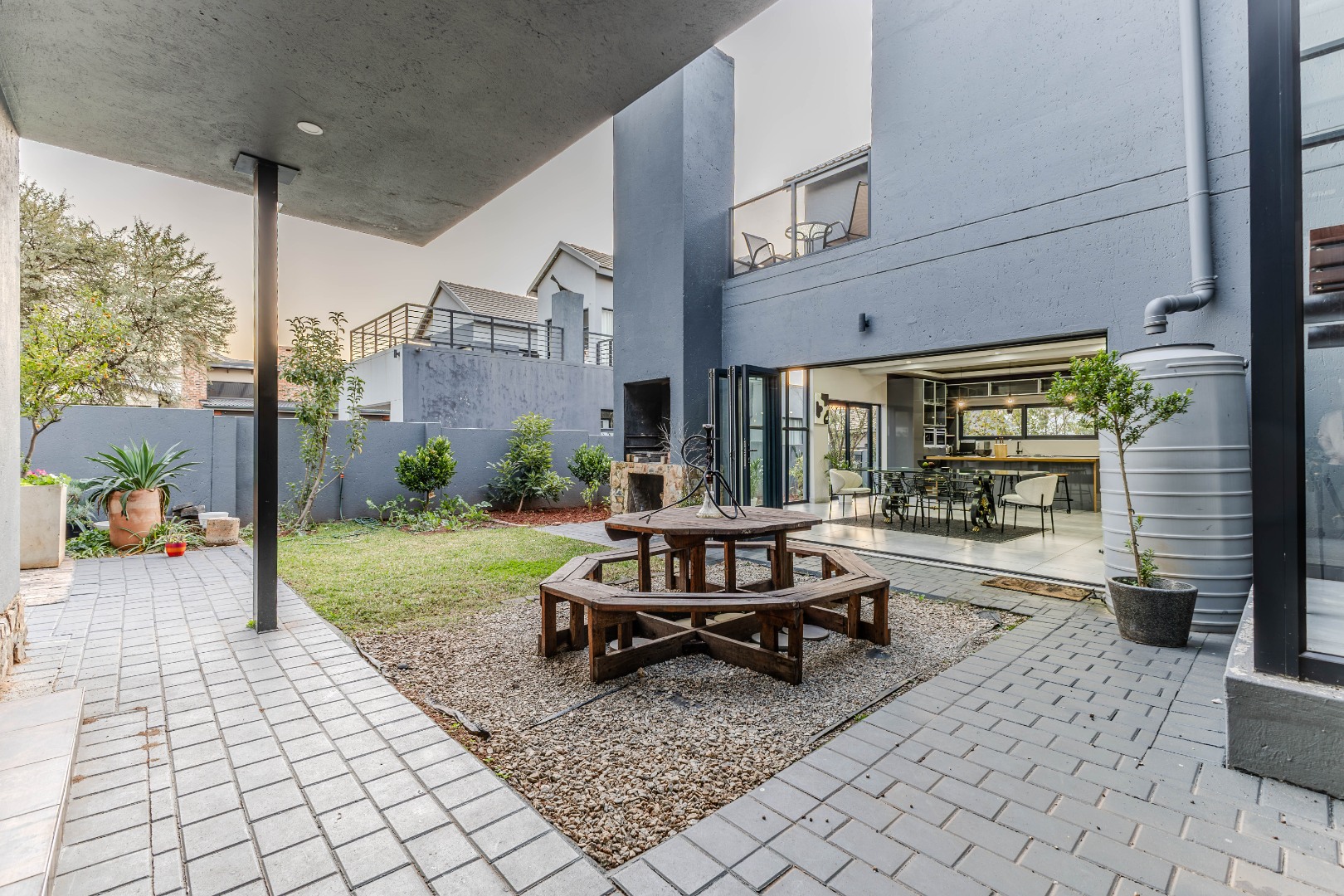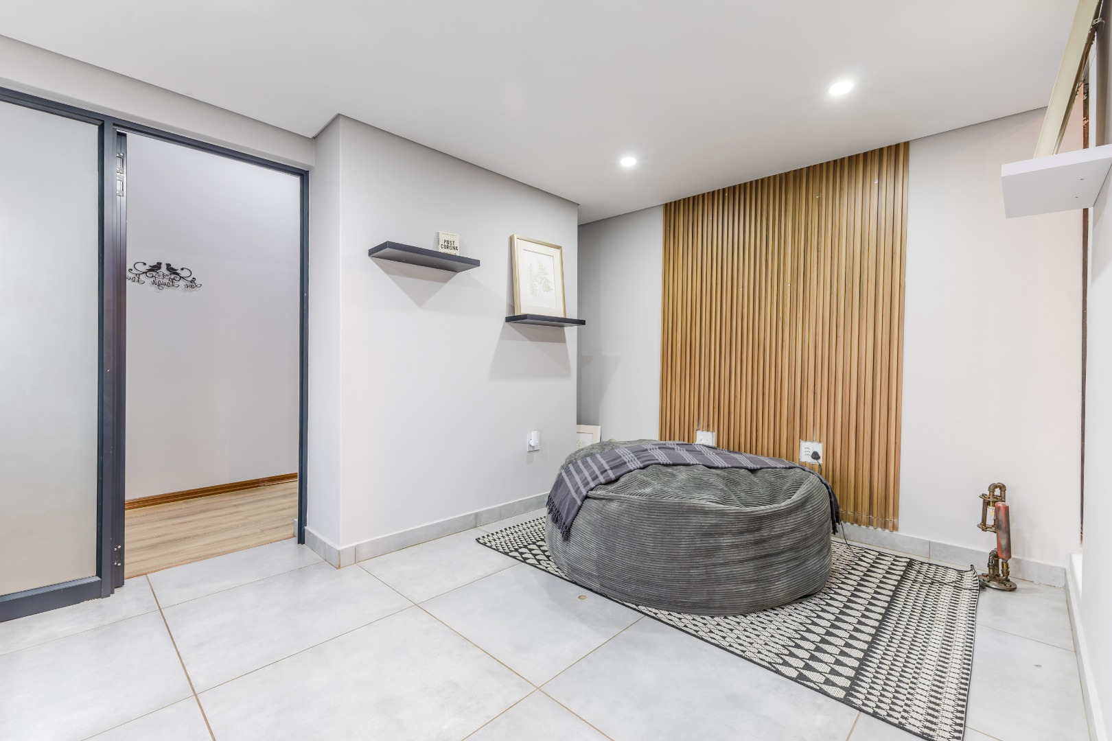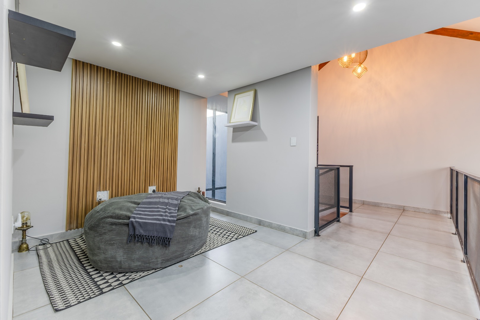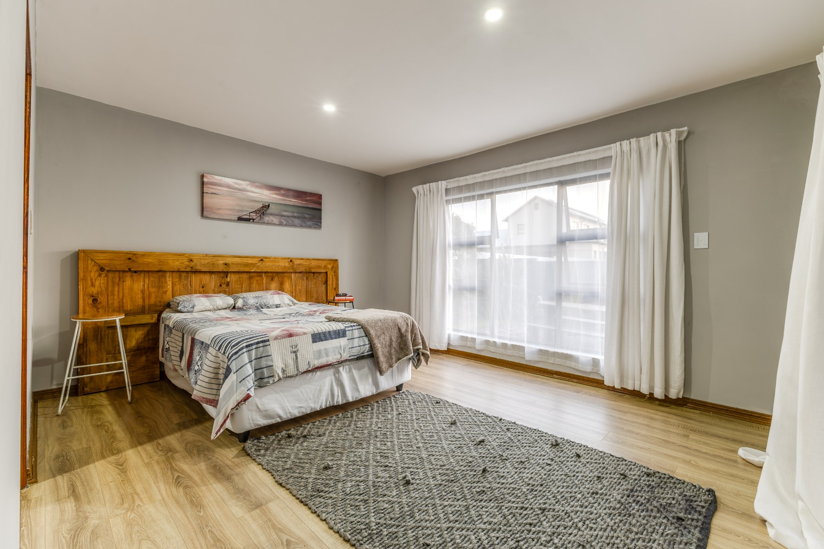 On the right, the expansive open-plan living area is thoughtfully laid out for both family living and social gatherings. The living and dining areas flow effortlessly into the modern kitchen, featuring ample counter space, generous storage, and a separate scullery to maintain a clean and organized space. Large stack doors open out to a covered braai area, ideal for outdoor dining and year-round entertaining. Additional features include double automated garages with direct access to the home, as well as energy-efficient living supported by two solar geysers. Upstairs, the luxurious main suite offers a spacious en-suite bathroom and walk-in wardrobe, creating a serene private retreat. Four additional bedrooms and two well-appointed bathrooms complete the upper level, providing ample accommodation for a growing family or guests. This home offers the perfect blend of style, space, and sustainability—crafted for modern family living in every sense. Contact me today to arrange your exclusive viewing of this remarkable home.
