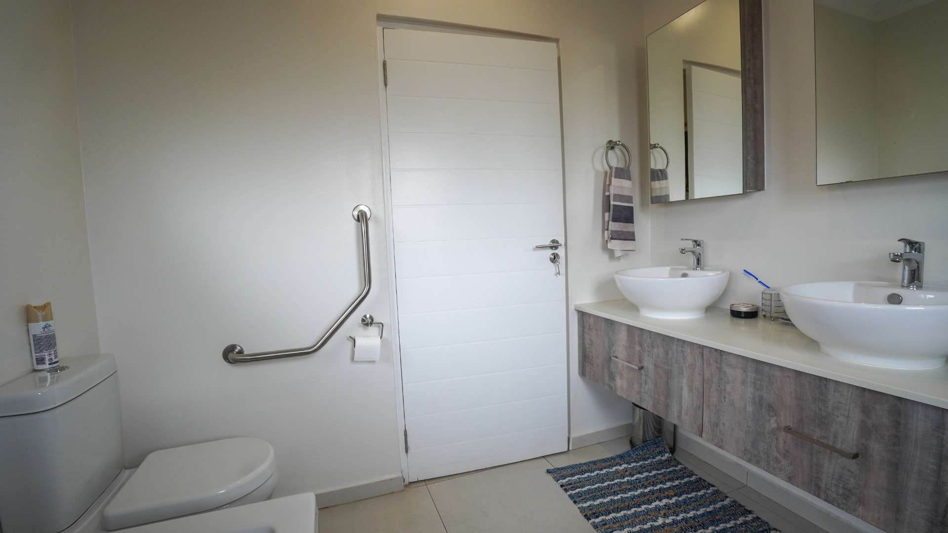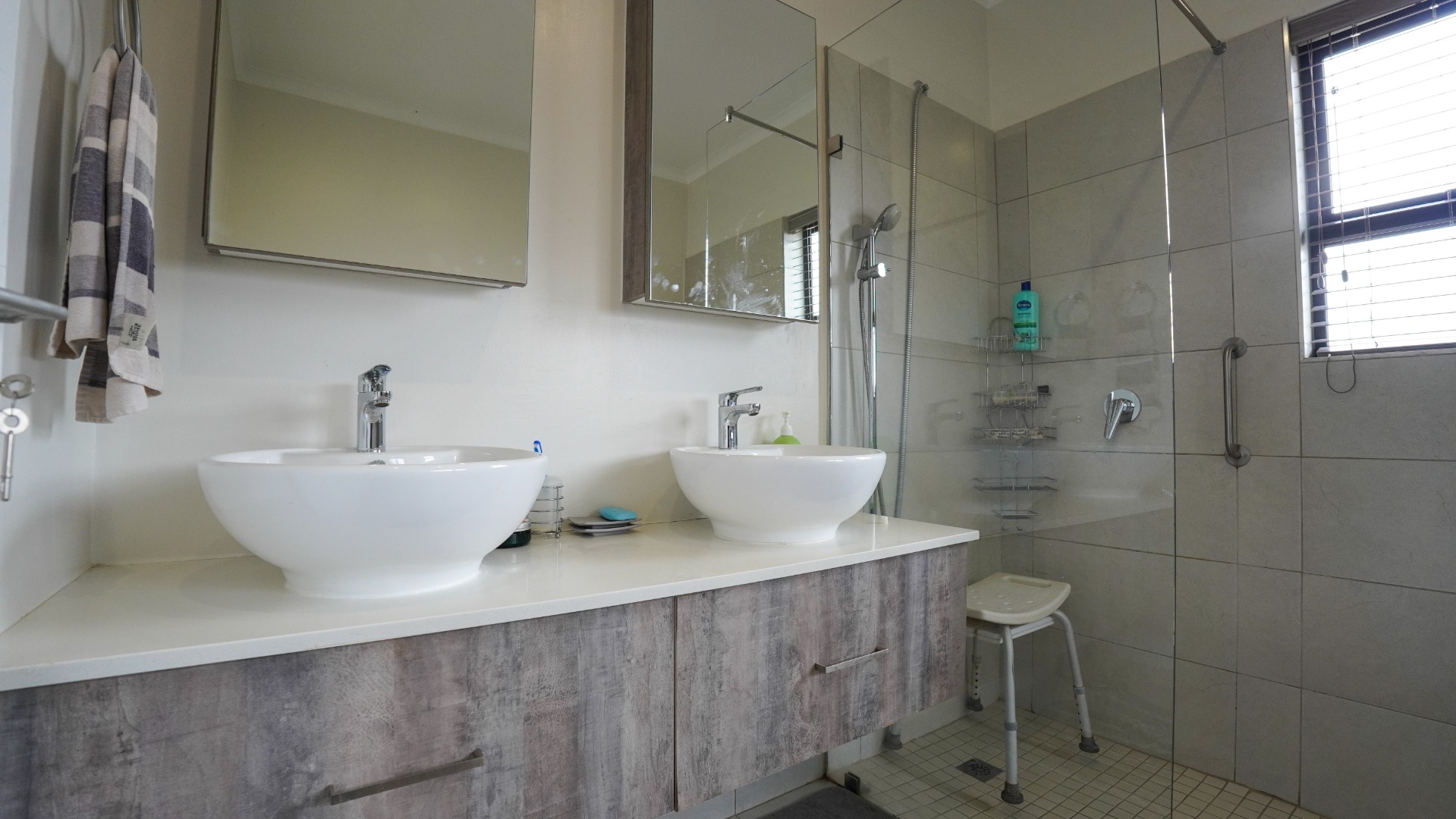 This property offers two bedrooms, with the standout feature being an exceptionally spacious master suite. Originally designed as a three-bedroom home, the layout was reconfigured to create a significantly larger main bedroom, complete with a full ensuite bathroom. The second bedroom is versatile and can easily function as a study or guest room. Both bathrooms have been thoughtfully designed with comfort and safety in mind, incorporating support rails in the shower and alongside the toilet for added ease of use.