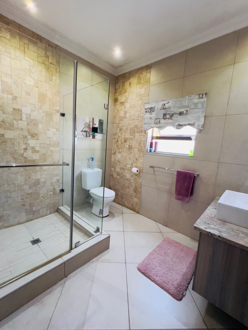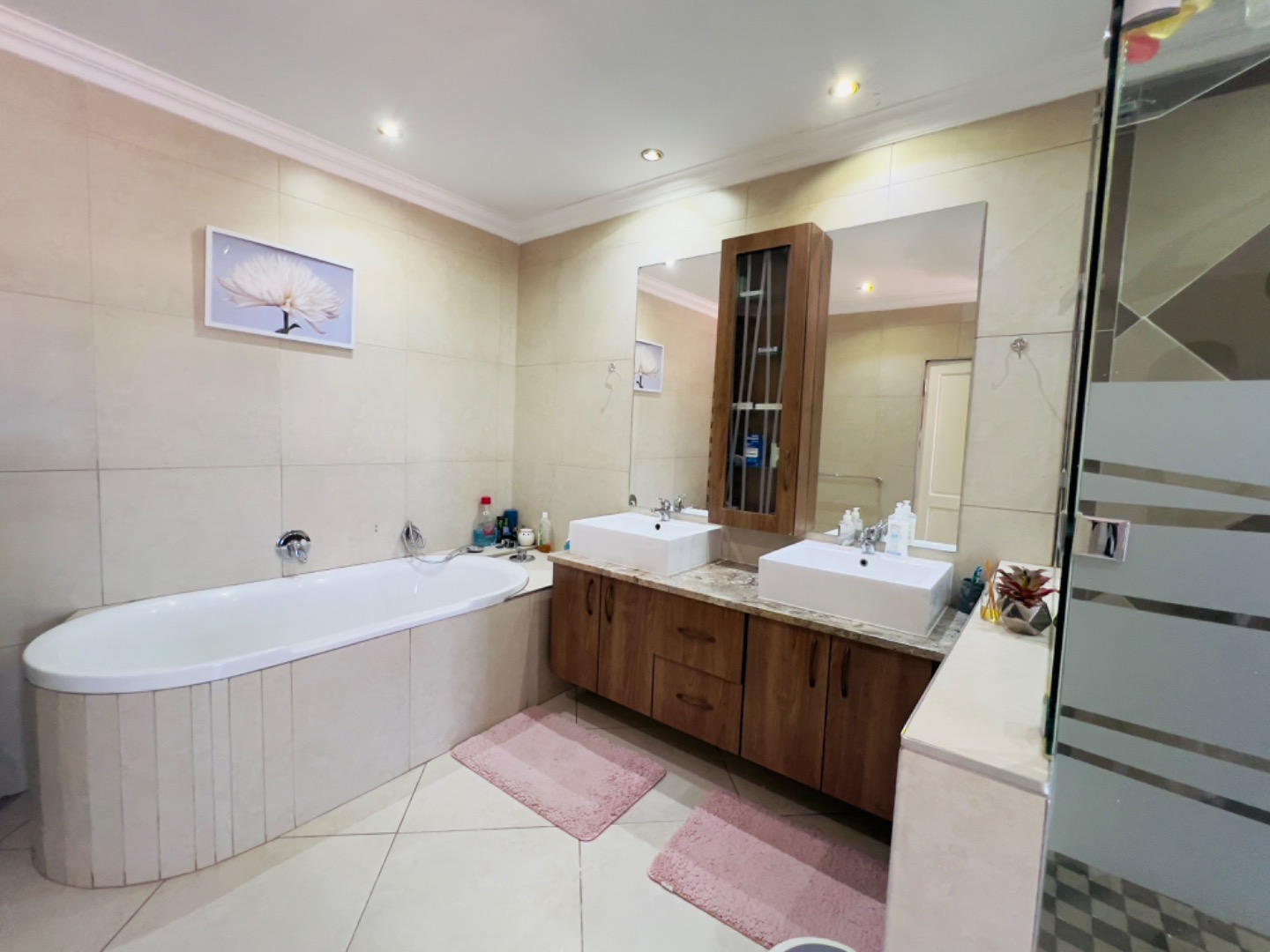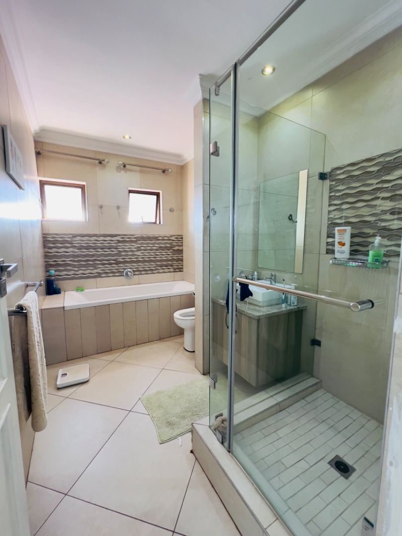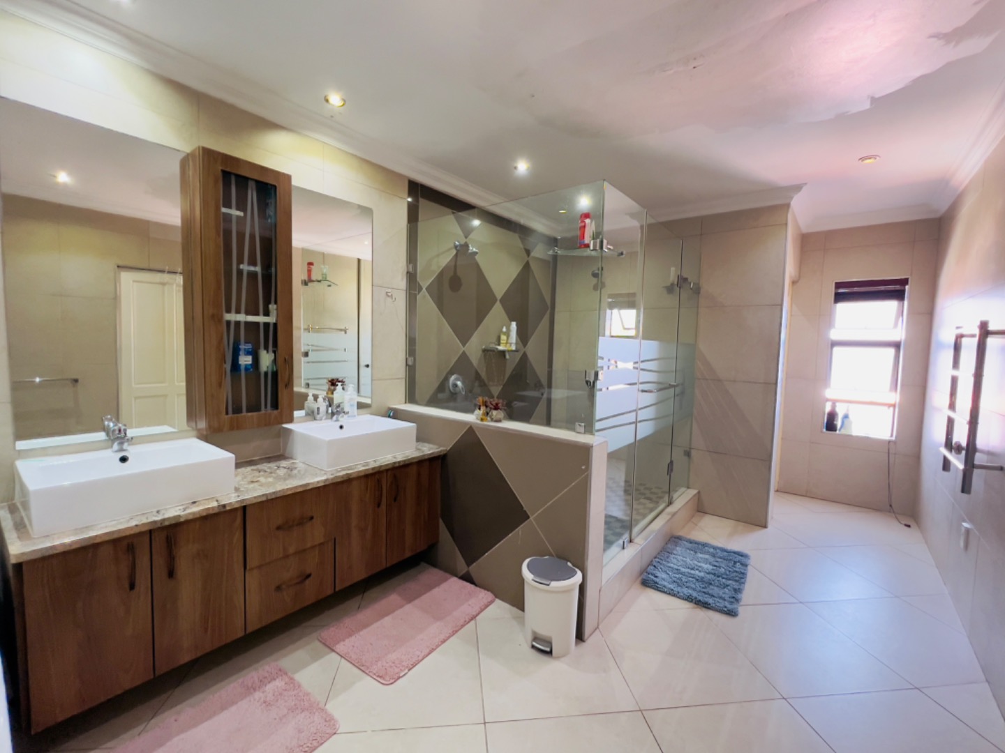 The property offers four spacious bedrooms, including a luxurious master bedroom, and three bathrooms. A convenient guest bedroom is located on the ground floor, while the remaining three bedrooms are upstairs. With three garages and situated in a tight and secure estate with 24hr security guarding, this property offers the ultimate blend of comfort, security, and style. Don't miss out on this incredible opportunity to make this house your dream home!