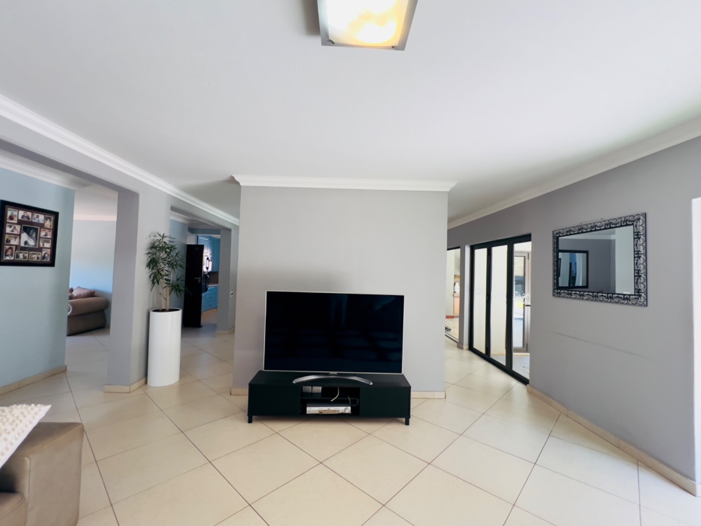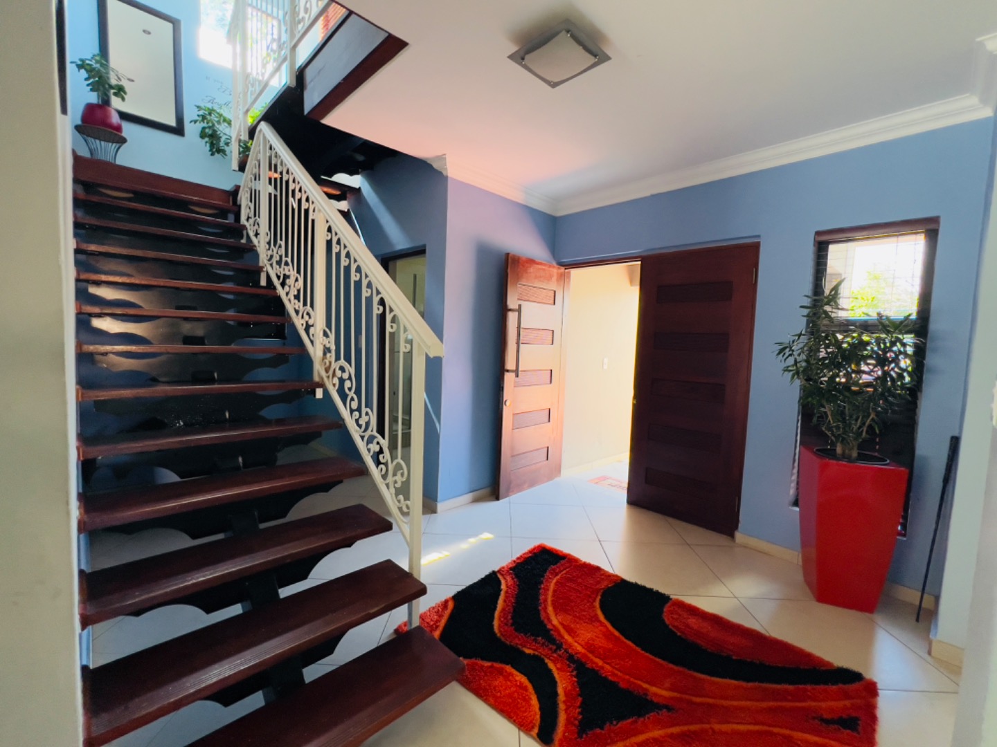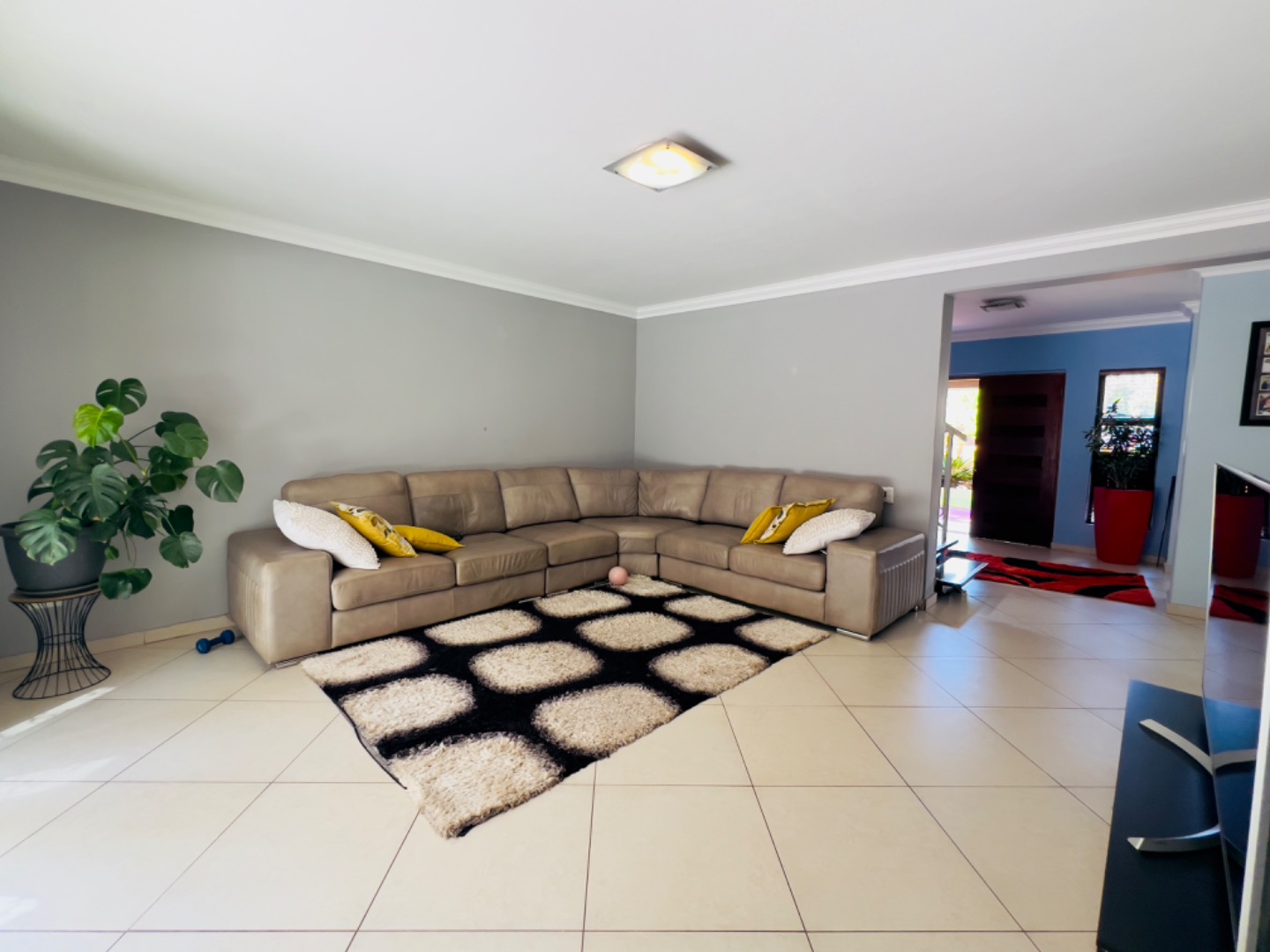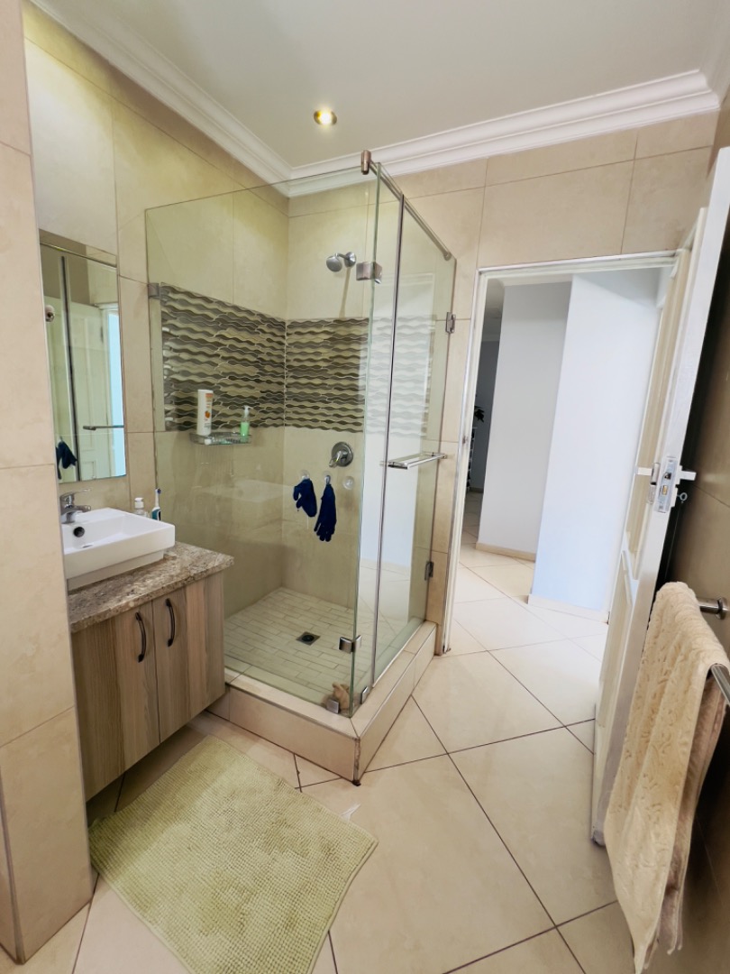The property offers four spacious bedrooms, including a luxurious master bedroom, and three bathrooms. A convenient guest bedroom is located on the ground floor, while the remaining three bedrooms are upstairs. With three garages and situated in a tight and secure estate with 24hr security guarding, this property offers the ultimate blend of comfort, security, and style. Don't miss out on this incredible opportunity to make this house your dream home!