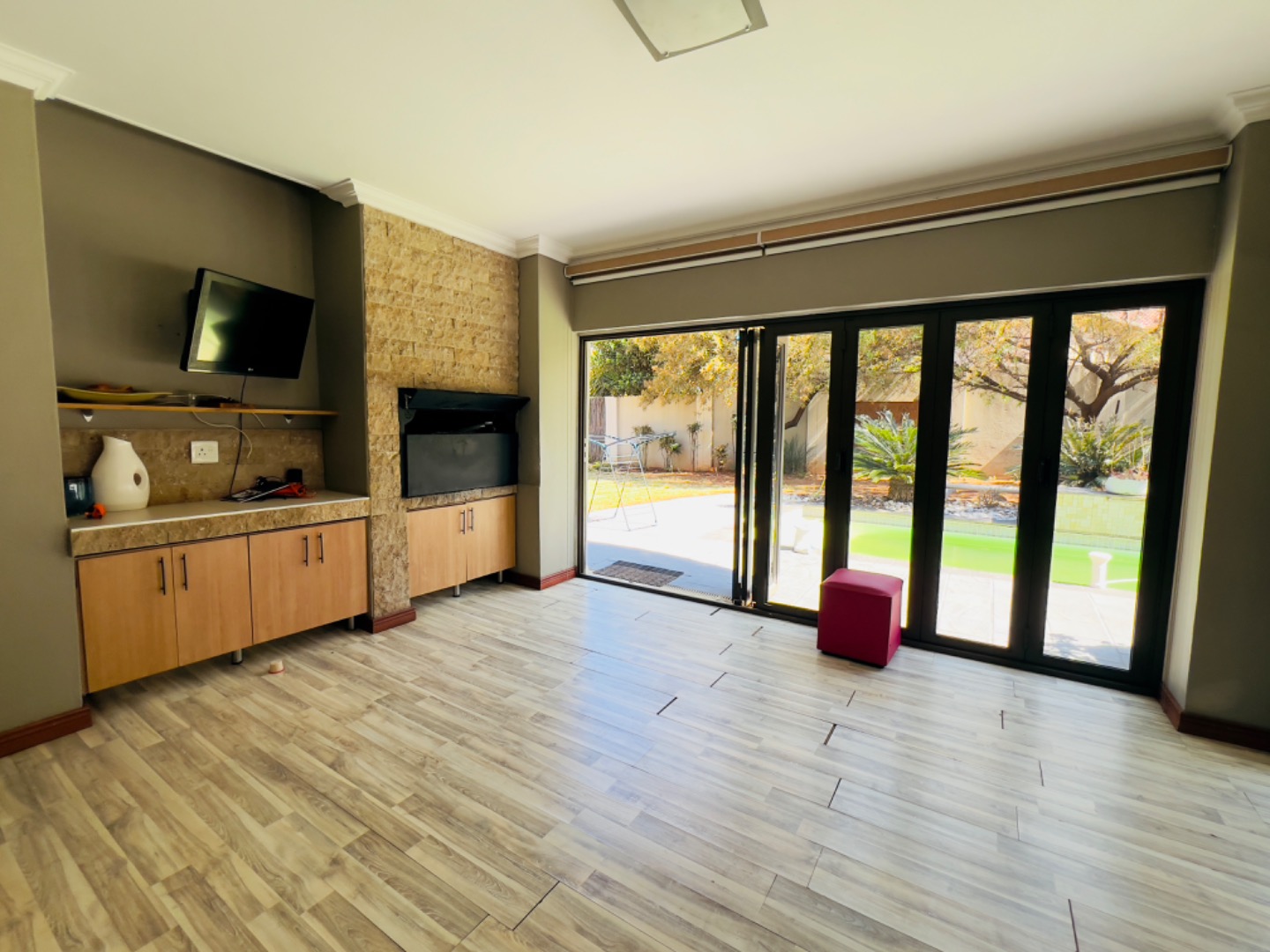 Welcome to this stunning double-storey home in the secure The Wilds Estate! The property boasts spacious living areas, including a TV room, living room, and dining room, perfect for relaxing and entertaining. The modern kitchen is equipped with ample cupboard space, a gas stove, scullery, and pantry, making meal preparation a breeze. The property also features a lovely patio area with a built-in braai, seamlessly leading to the expansive garden and stunning swimming pool - the perfect spot to soak up the sun.