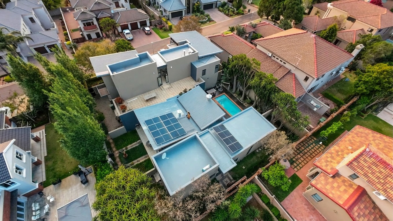 Designed for both relaxation and entertainment, the home features a statement free-standing fireplace, a sparkling swimming pool with timber deck, a sunken braai area perfect for gatherings, and an elegant study space for those working remotely. The manicured garden harmonizes beautifully with the home’s luminous architectural design.