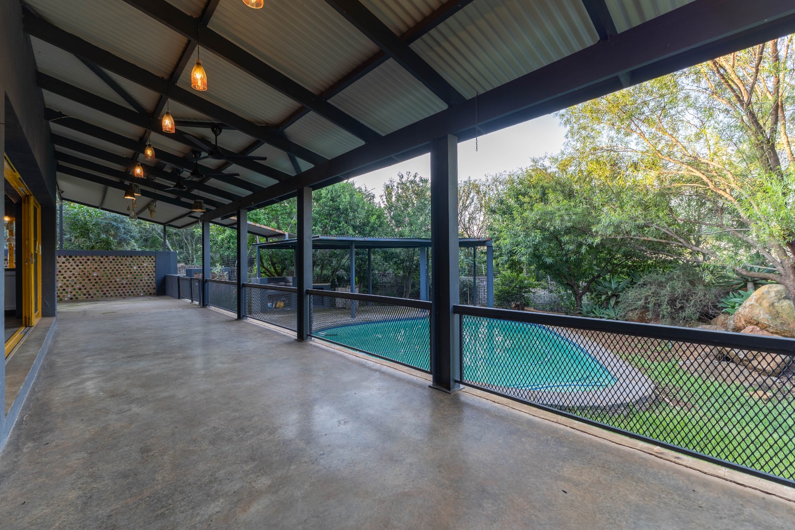 Positioned in the highly sought-after Tygerberg Country Estate, this exceptional five-bedroom residence boasts sweeping panoramic views and a truly unique, funky architectural design that sets it apart from anything else in the estate. Offering the rare appeal of bush-style living within a secure urban environment, this home is as distinctive as it is inviting. Designed across two expansive levels, the home blends bold contemporary aesthetics with refined luxury, comfort, and everyday functionality. Clean industrial lines, creative use of space, and unexpected design elements give the property a character and personality seldom found in modern estates.