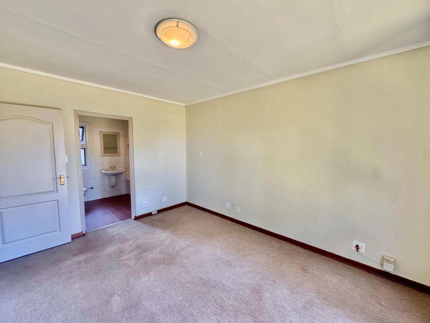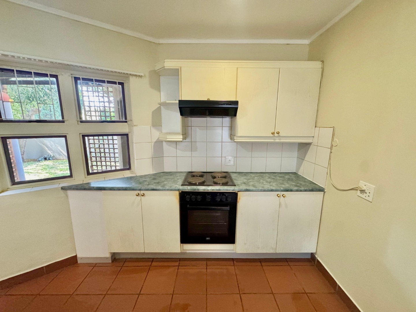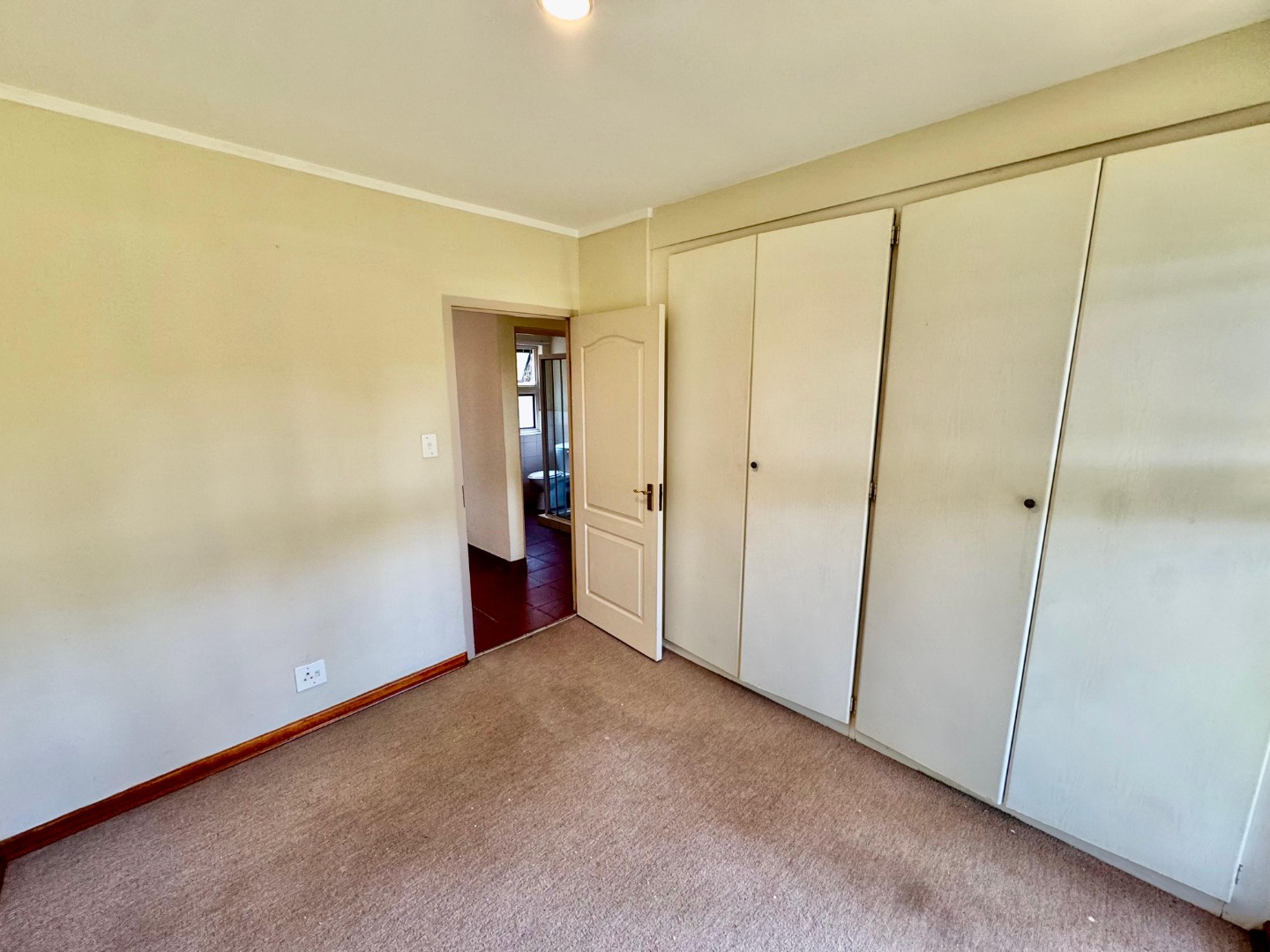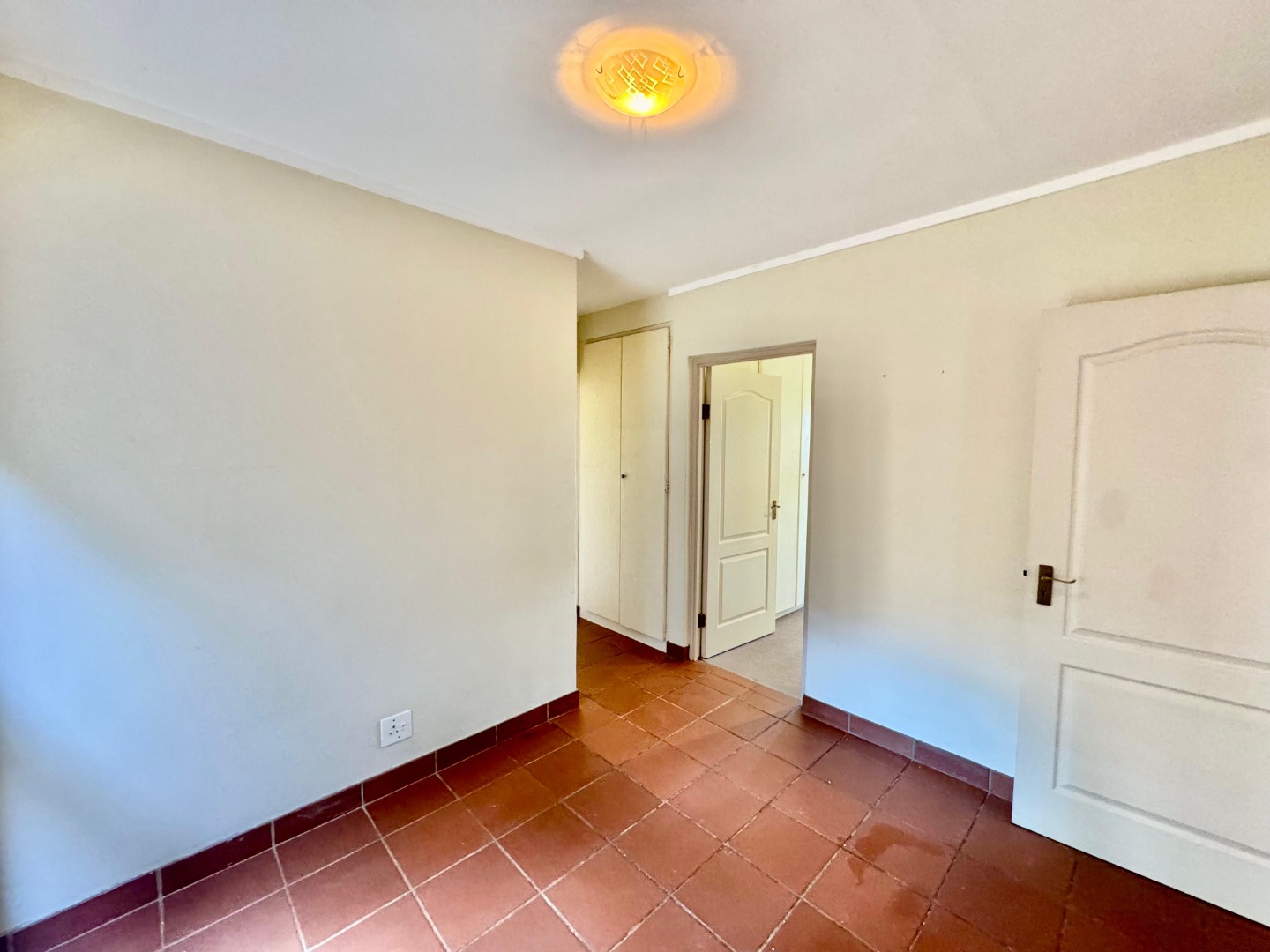 A glass door leads out to the patio and large, private walled garden with a built-in braai area—ideal for entertainment.