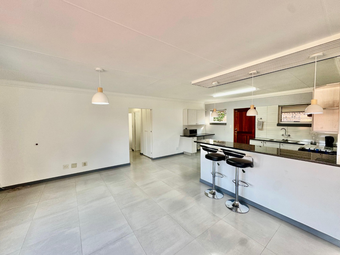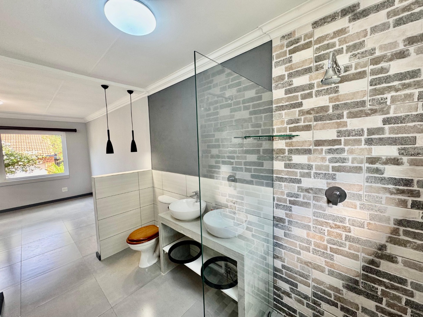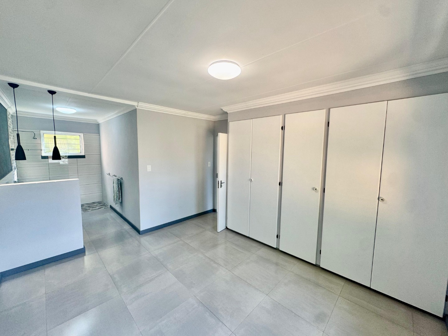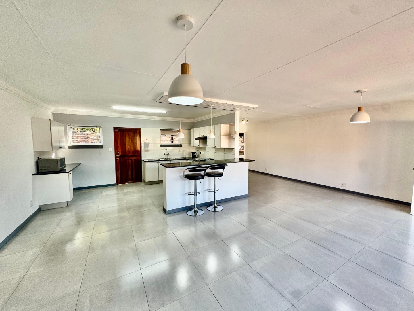 Glass doors lead to a private walled garden and a built-in braai, perfect for entertainment.