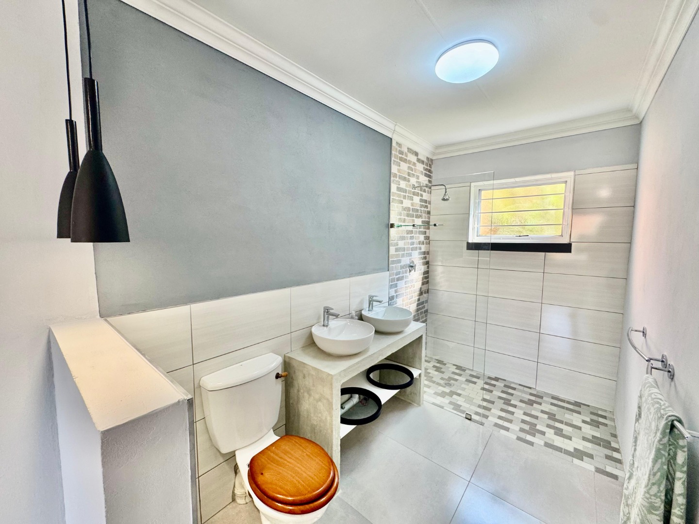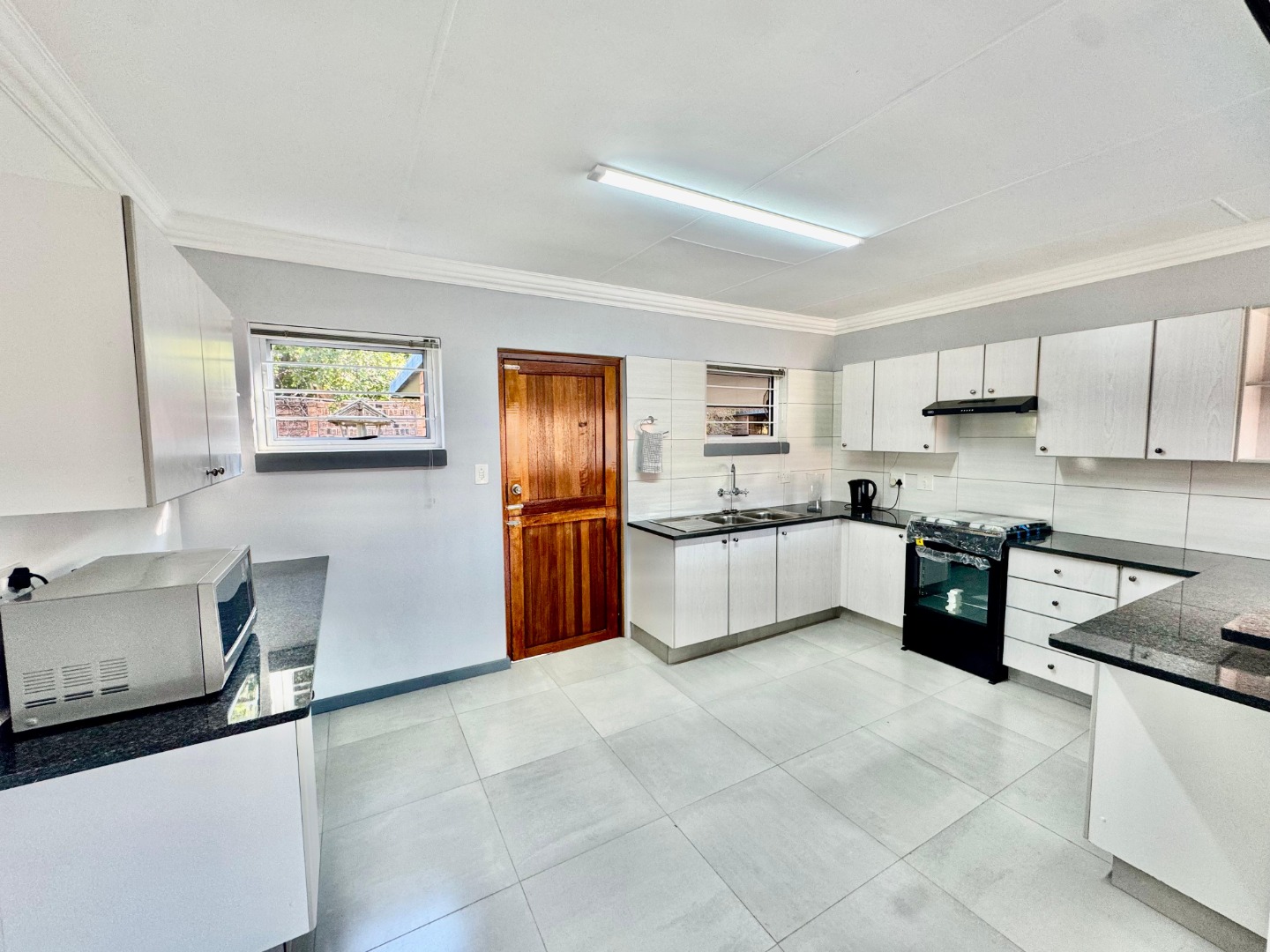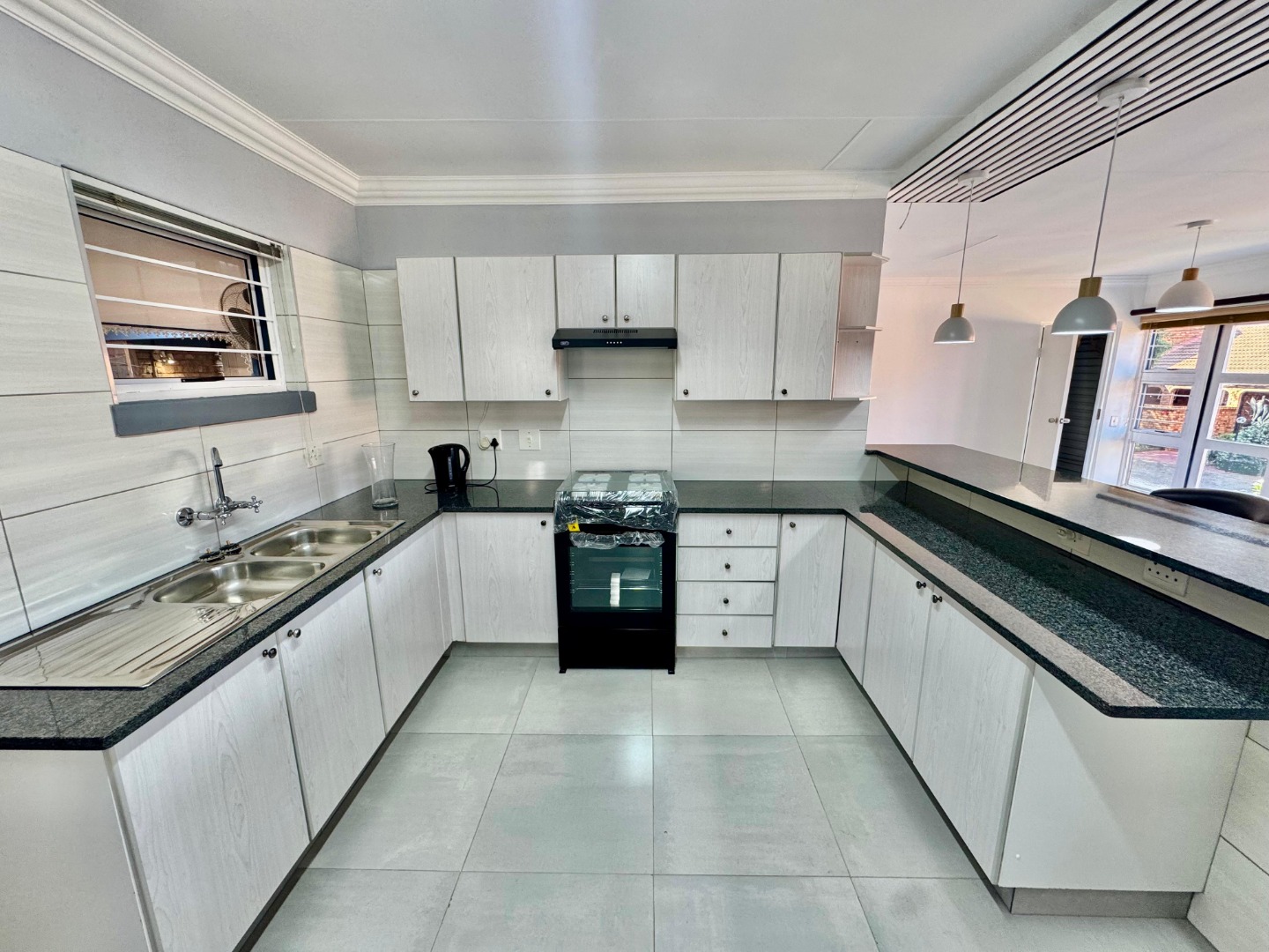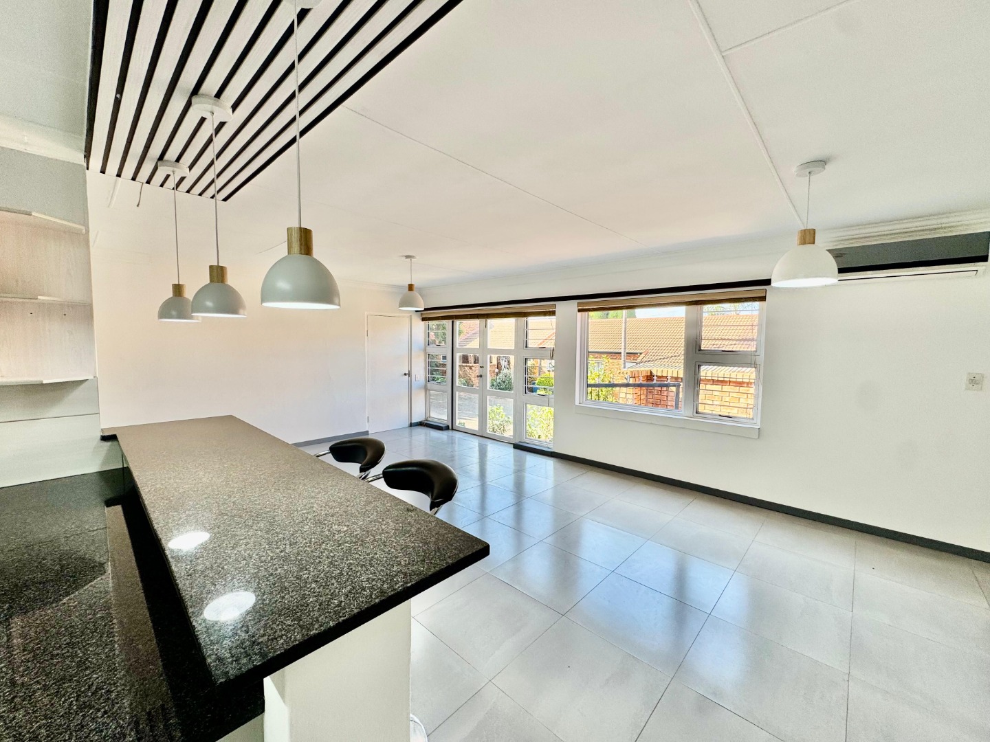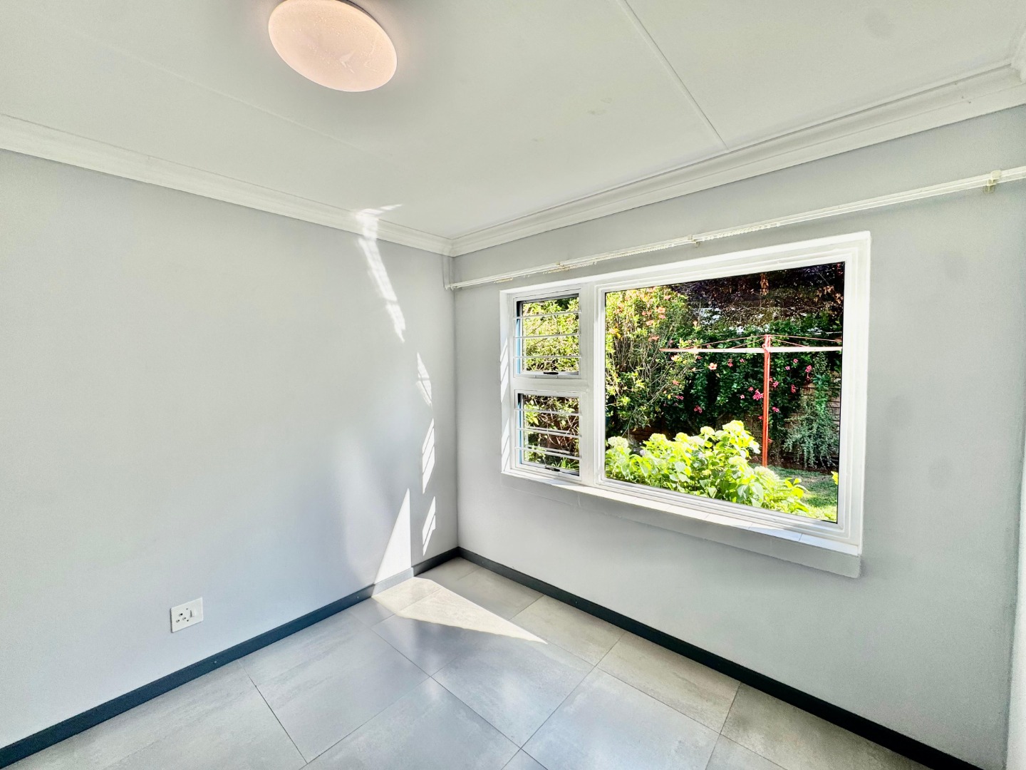 Glass doors lead to a private walled garden and a built-in braai, perfect for entertainment.
