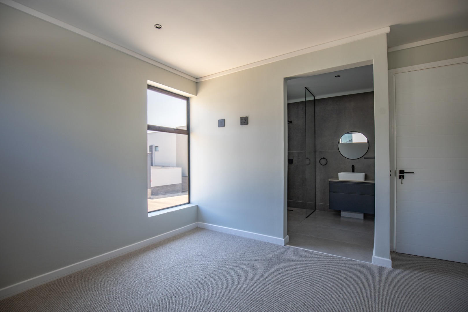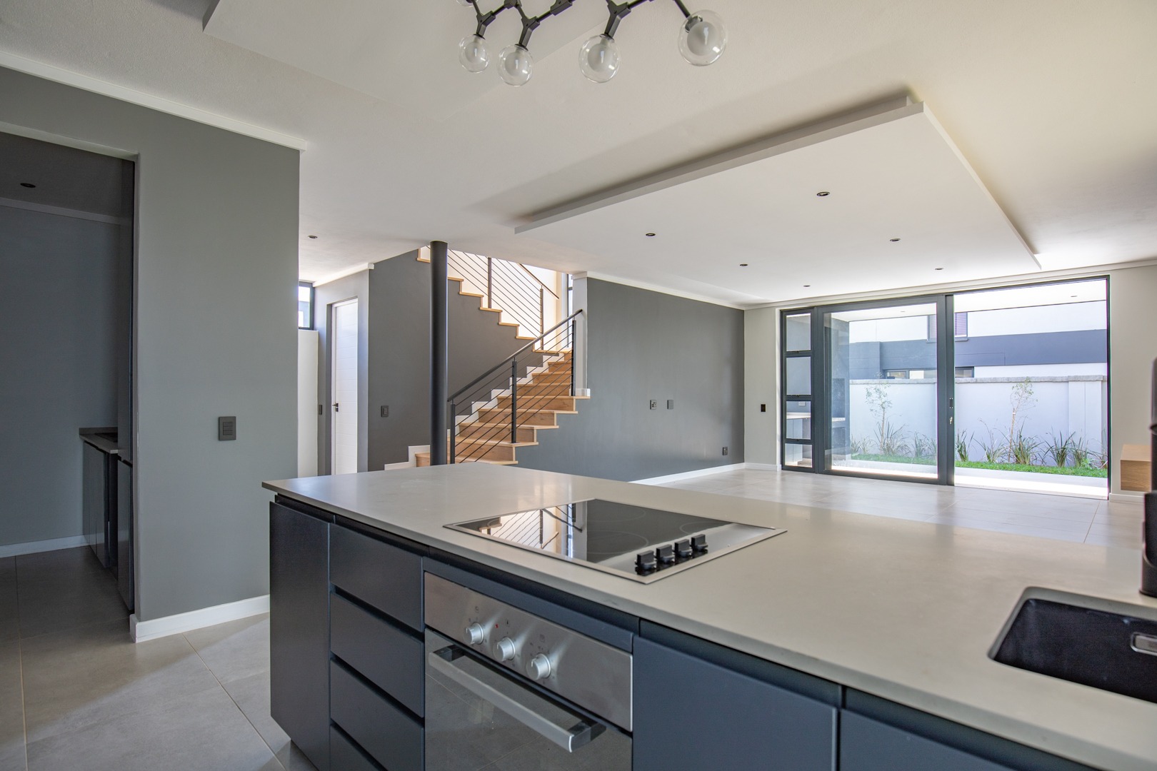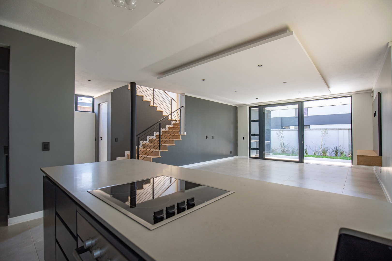 Tucked away in the sought-after suburb of Waterkloof Heights, this modern double-story home forms part of an exclusive complex of only six units. Designed with sleek lines and stylish architecture, the residence offers a perfect balance of sophistication and comfort. Inside, you are welcomed by open and inviting living spaces with great finishes throughout. The kitchen is fitted with contemporary cabinetry and a separate scullery for convenience, while the living area flows seamlessly to a private garden complete with a built-in braai, ideal for entertaining.