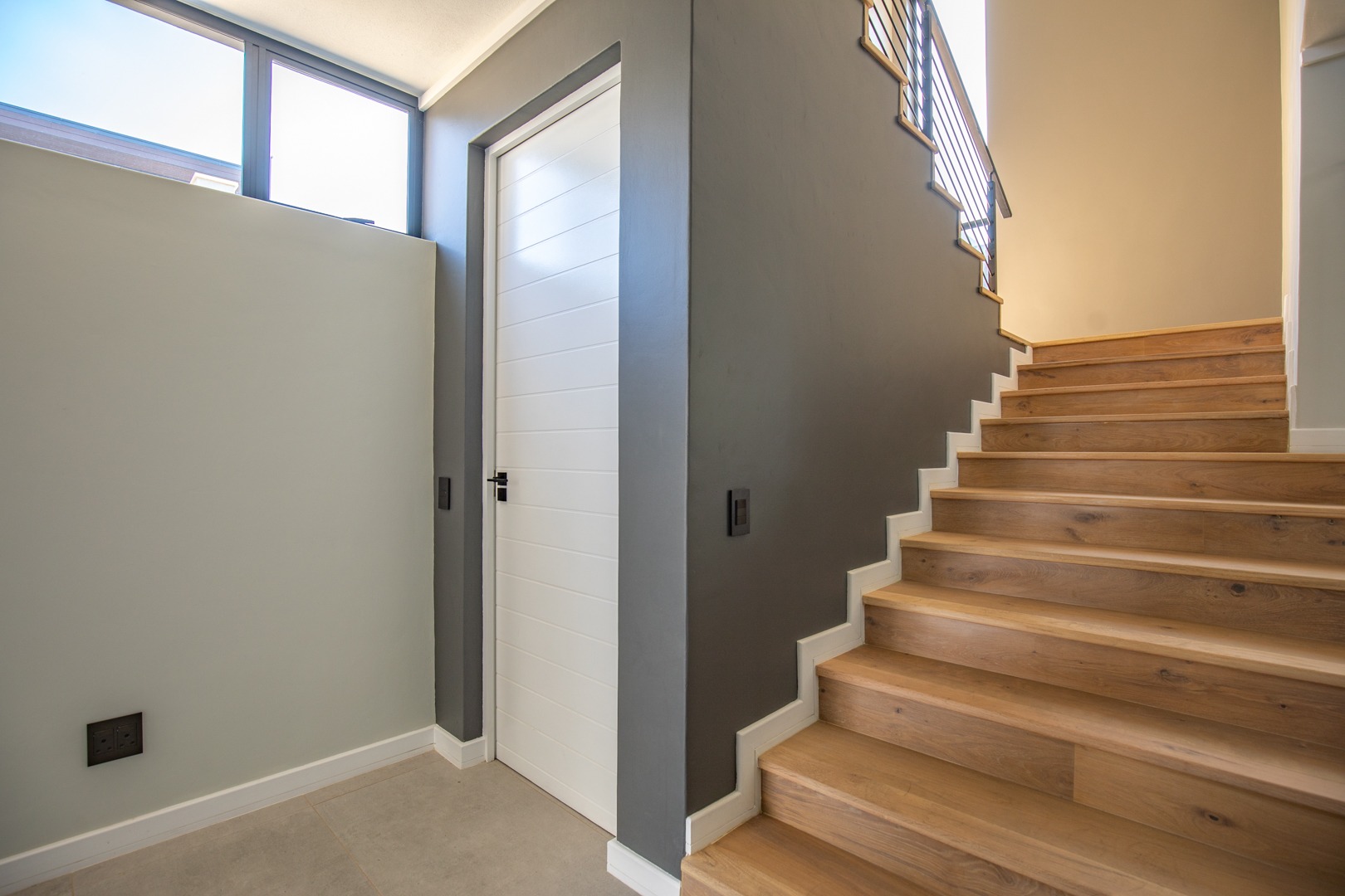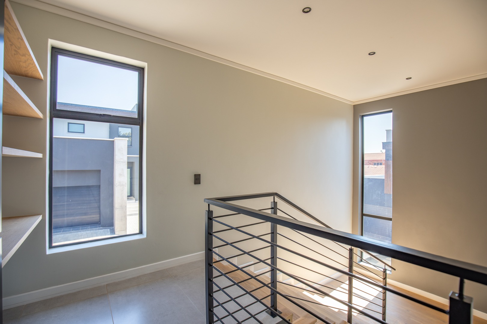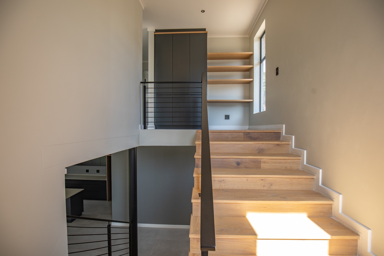 Tucked away in the sought-after suburb of Waterkloof Heights, this modern double-story home forms part of an exclusive complex of only six units. Designed with sleek lines and stylish architecture, the residence offers a perfect balance of sophistication and comfort. Inside, you are welcomed by open and inviting living spaces with great finishes throughout. The kitchen is fitted with contemporary cabinetry and a separate scullery for convenience, while the living area flows seamlessly to a private garden complete with a built-in braai, ideal for entertaining.