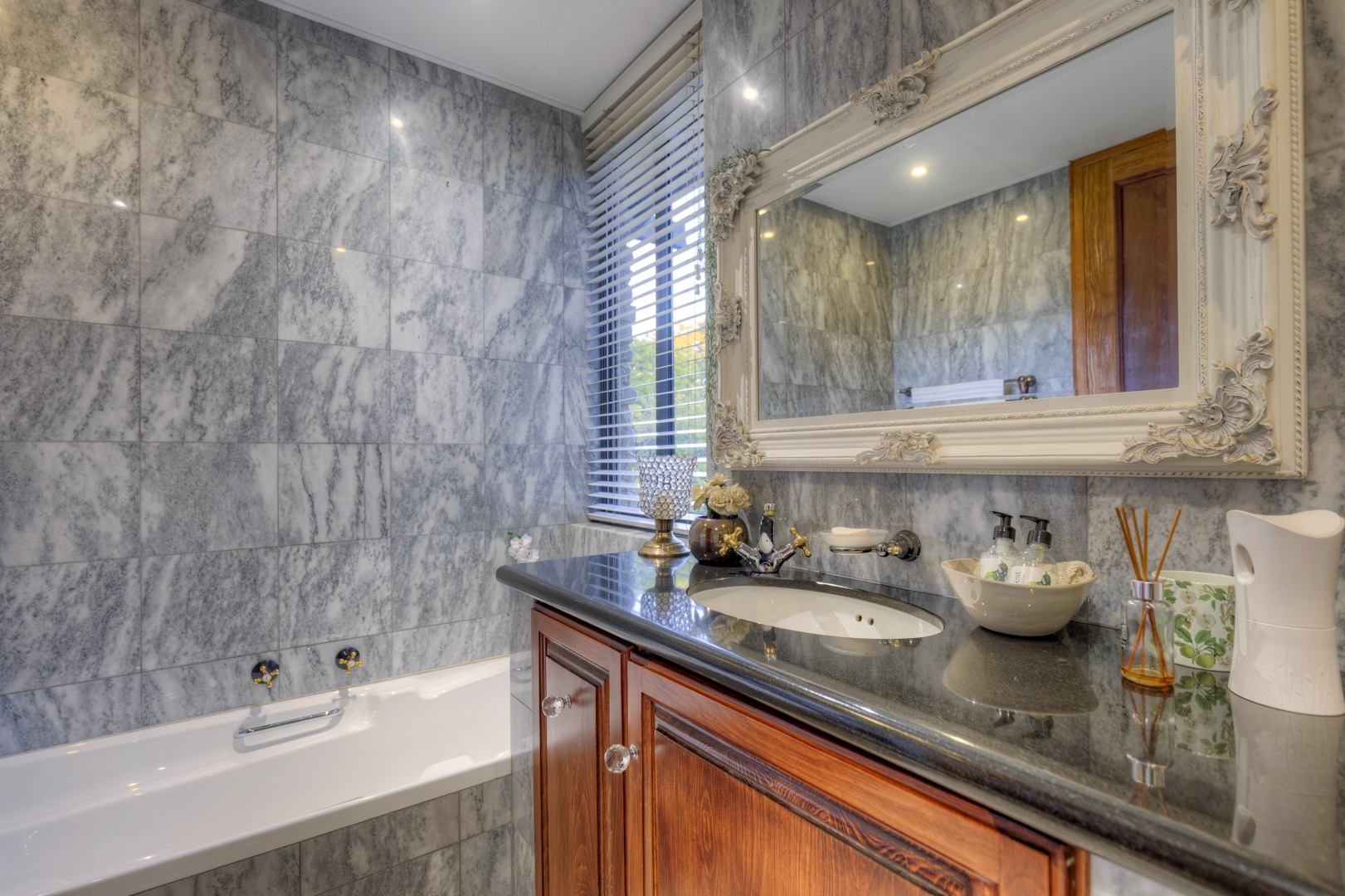 The bedroom wing houses two well-sized bedrooms that are served by a full bathroom, along with an additional ¾ bathroom featuring a shower, toilet, and basin. . The master suite is a standout with its own full ensuite bathroom and walk-in wardrobe.