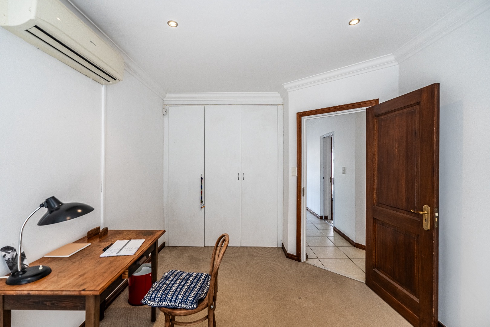 Accommodation comprises three generously sized bedrooms, ensuring personal space for all family members. The master suite boasts a private en-suite bathroom, offering a serene retreat. A further well-appointed bathroom and a convenient guest toilet cater to the needs of the household and visitors. Practical features such as air conditioning ensure year-round comfort, while the installed solar panel system highlights a commitment to energy efficiency and reduced utility costs.