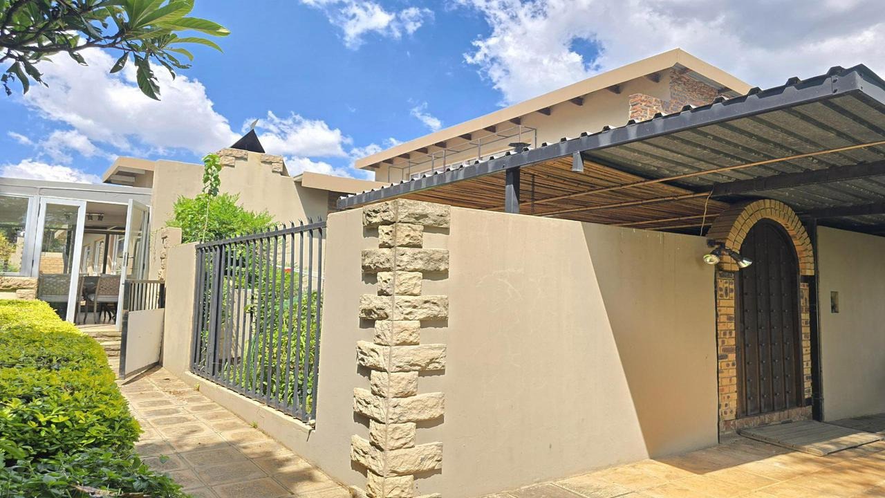 Discover this spacious four-bedroom, two-bathroom residence nestled in the desirable Waterkloof Ridge, Pretoria. Boasting a generous 423 sqm under roof on a 1565 sqm erf, this property offers ample space for comfortable family living. The home presents a distinctive architectural style with a durable brick exterior, stone accents, and an inviting arched entrance, complemented by a well-maintained paved driveway and mature tree coverage. Step inside to a welcoming interior featuring a spacious living area with a rustic wooden paneled ceiling, exposed beam, and a modern fireplace, creating a warm ambiance. The layout includes a dedicated dining room, a functional kitchen with a pantry, and a convenient guest toilet. A highlight is the expansive enclosed patio or sunroom, perfect for entertaining, complete with a built-in braai and large windows that flood the space with natural light, offering versatile areas for dining and lounging. The four bedrooms provide comfortable accommodation, with one featuring a built-in wardrobe and tiled flooring. The two bathrooms are well-appointed, including one with a modern vessel sink, integrated vanity storage, and a combination of a bathtub and shower, all finished with consistent tiling. Outdoor living is a delight with a private, well-maintained garden, a sprawling green lawn, and a refreshing swimming pool surrounded by a paved patio. The property also benefits from a covered outdoor patio and a glass-enclosed extension, enhancing the connection to the outdoors. Practical features include an impressive six garages and a covered carport, ensuring extensive parking and storage solutions. The property is totally walled, fenced, and features burglar bars and an access gate for enhanced security, with fibre connectivity available. Solar panels are also visible, hinting at potential energy efficiency. Waterkloof Ridge is a sought-after metropolitan suburb in South Africa, known for its established community and convenient access to amenities. Key Features: * 4 Bedrooms, 2 Bathrooms * 6 Garages & Covered Carport * Spacious Living Area with Fireplace * Enclosed Patio with Built-in Braai * Swimming Pool & Private Garden * Fibre Ready * Pets Allowed * Erf Size: 1565 sqm, Floor Size: 423 sqm