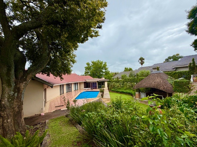 Outdoor living is a true pleasure on the expansive 1896 sqm erf. A private swimming pool, a spacious paved patio, and a charming thatched lapa with a built-in braai create an ideal setting for entertaining and relaxation. The terraced garden, mature trees, and a borehole ensure a vibrant and sustainable landscape. Parking is abundant with three garages and additional open parking for up to ten vehicles.