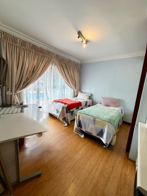 Discover this inviting suburban residence, perfectly situated in the desirable Waterkloof Ridge, Pretoria. This property presents a welcoming kerb appeal with a brick paver driveway, high perimeter wall, and lush, mature gardens, setting a serene tone for family living.