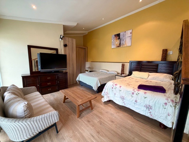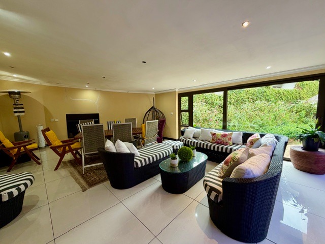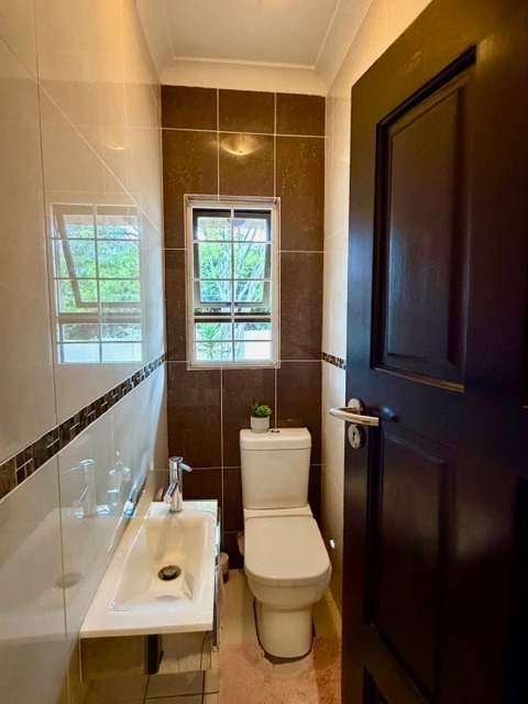 Accommodation comprises four comfortable bedrooms and four bathrooms, with two offering en-suite facilities for enhanced privacy. A convenient guest toilet is also available. The property further benefits from a separate flatlet and domestic rooms, providing versatile living options or staff accommodation.