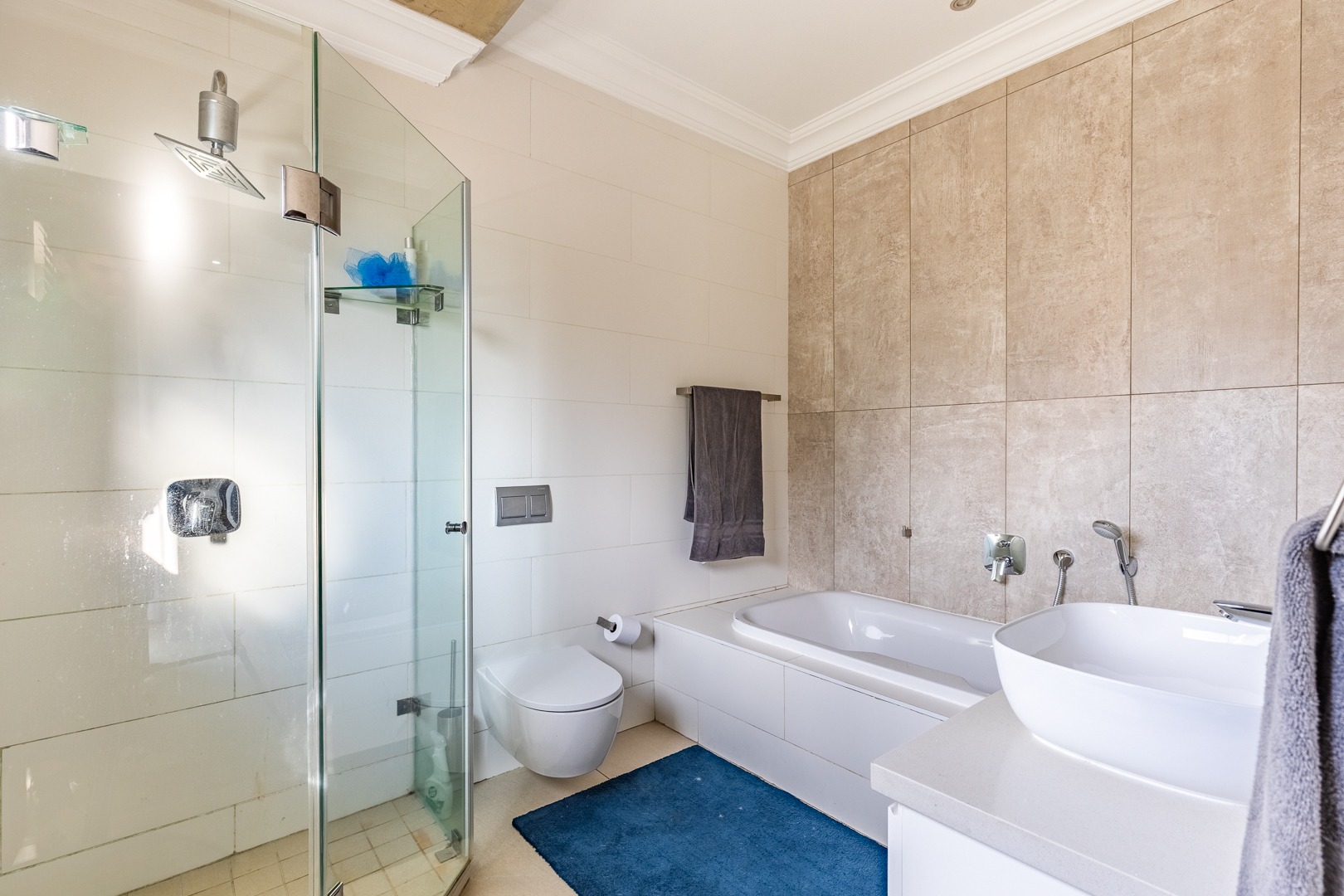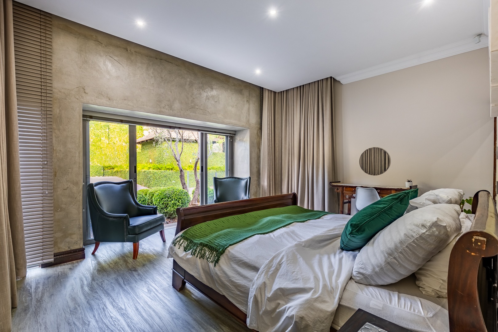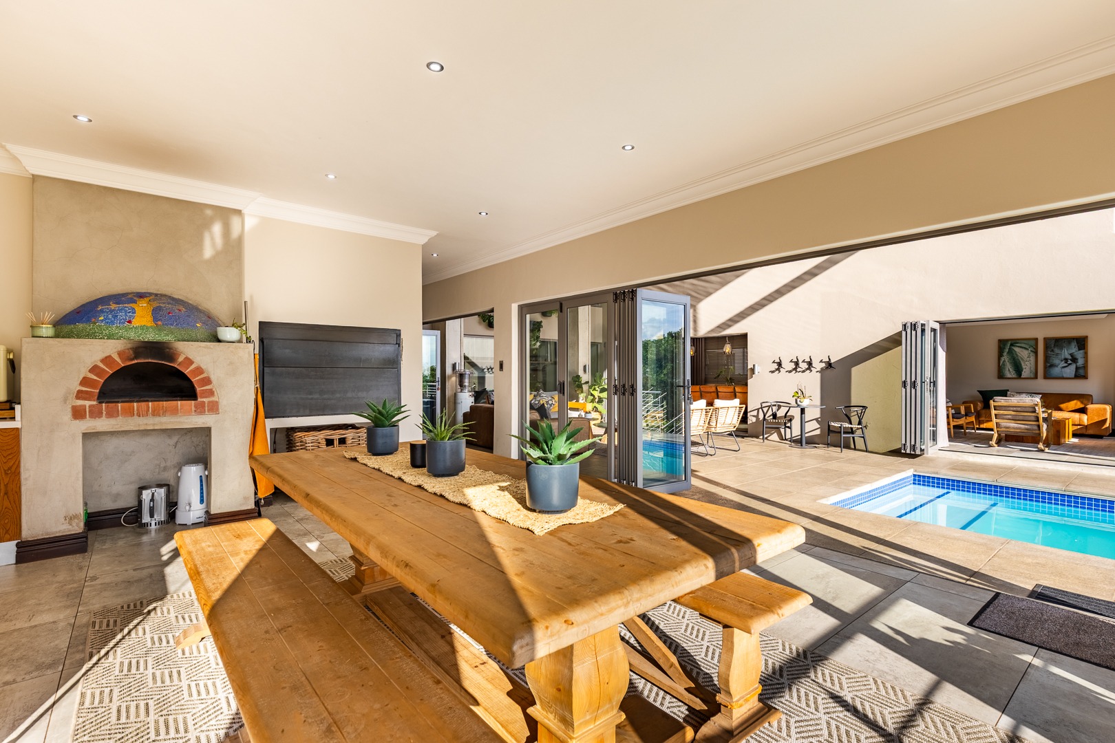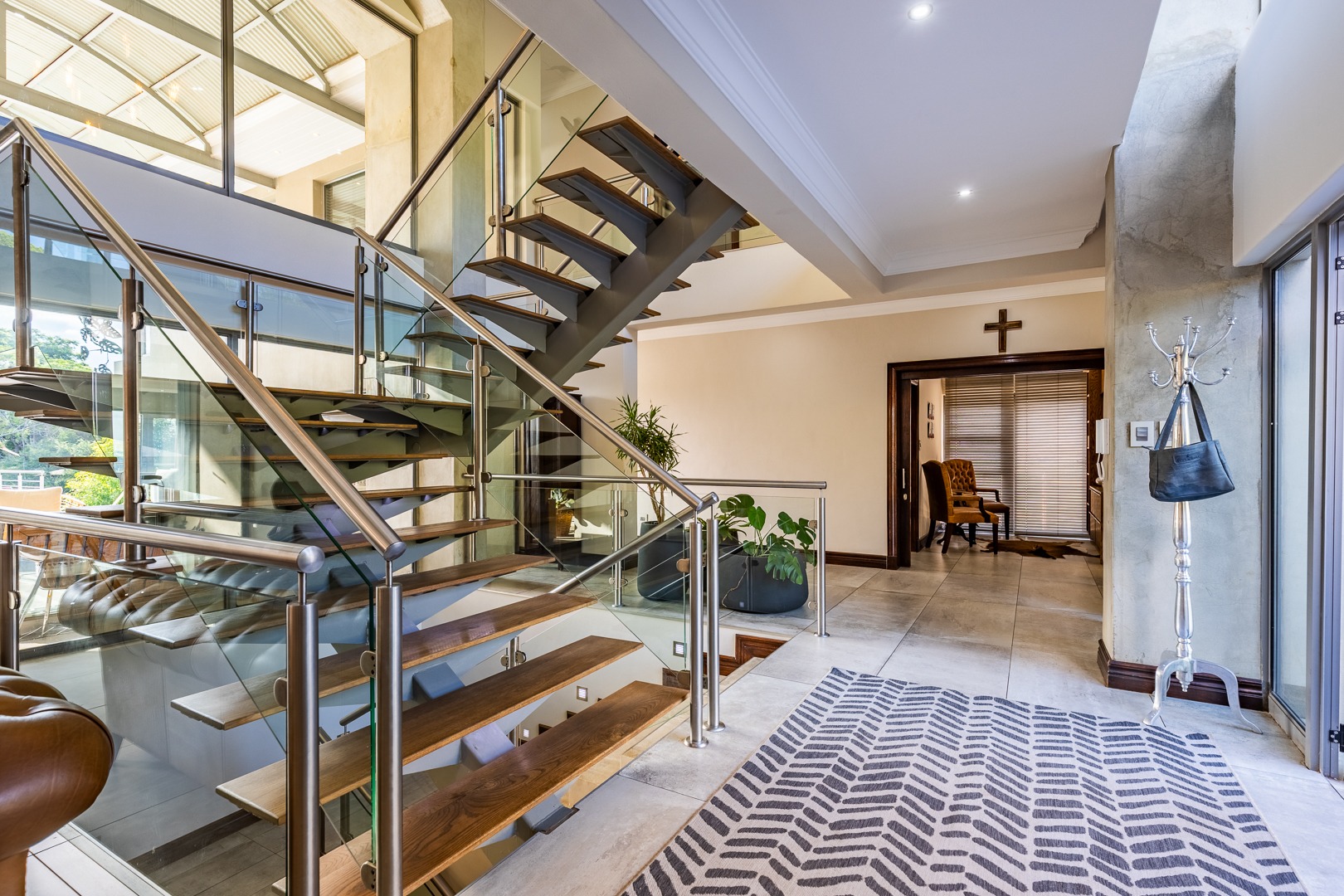 Premium features include heated flooring in selected bathrooms and living areas, aluminium windows (partially double glazed), soft-close cabinetry, Geberit sanitaryware, Legrand electrical fittings, excellent lighting throughout, and three-phase electricity. The home is further enhanced by a 24kW solar system with 70kW battery storage, borehole with JoJo tanks, central and zoned air-conditioning, full WiFi and network infrastructure, and exceptional security with AI-enabled CCTV, alarm system, electric fencing and ADT street patrols. The lower level offers six motor garages (three double garages), including extended garages suitable for 4x4s and larger vehicles, with direct access into the home. All buildings are fully approved to plans. A comprehensive information pack is available on request for serious buyers. VAT applicable – no transfer duty payable.