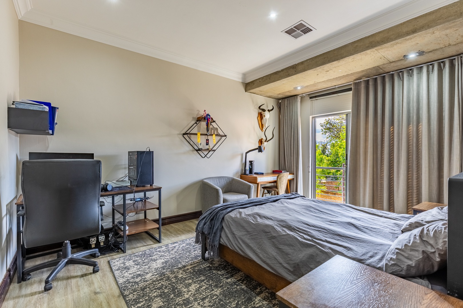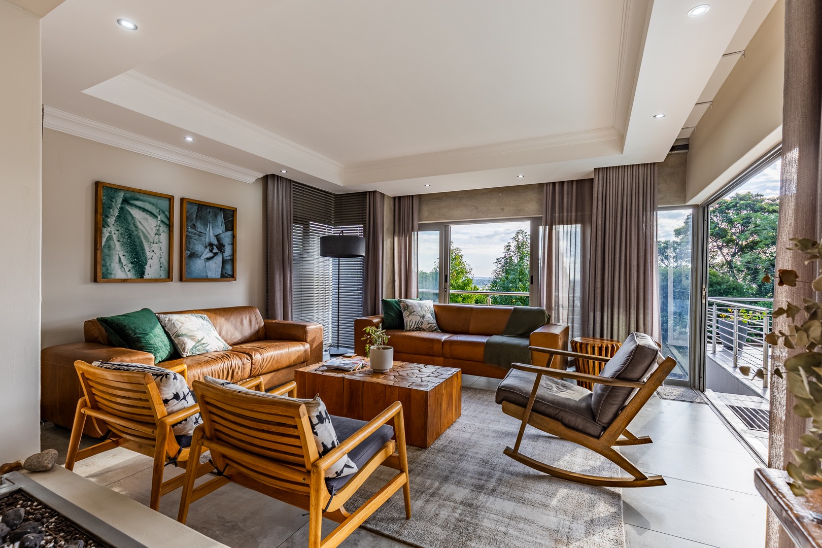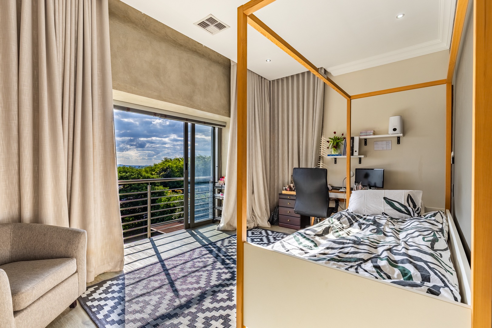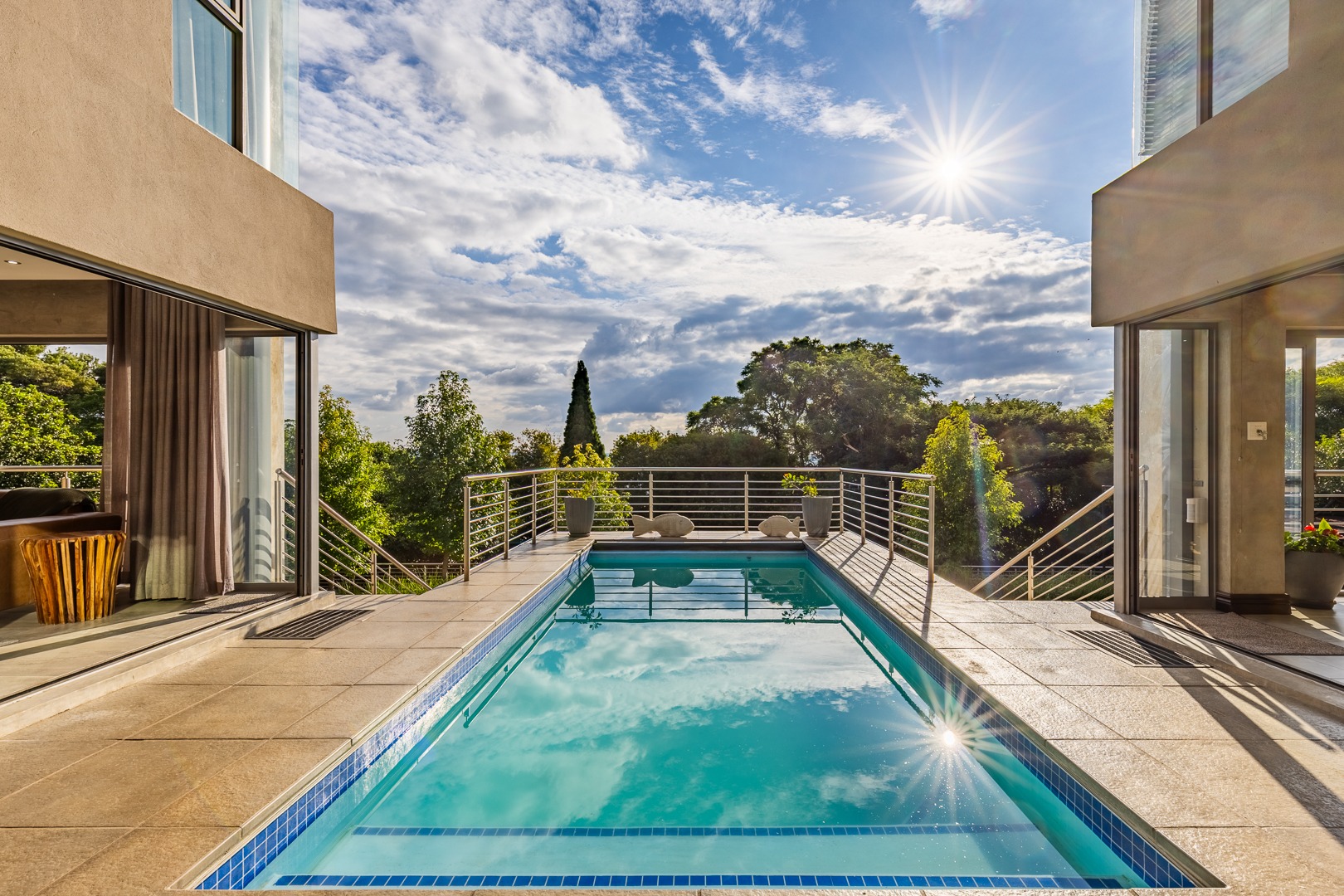 This exceptional three-level contemporary residence, designed by the renowned Arté Lifestyle Group, offers approximately 900m² under roof on a 2,363m² stand in the heart of Waterkloof Ridge. Designed to maximise panoramic views across Centurion, Midrand, Johannesburg and the Voortrekker Monument, the home features five en-suite bedrooms, including a luxurious main suite and a separate ground-level guest suite with private entrance. Expansive open-plan living areas flow seamlessly to entertainment spaces and landscaped gardens, making the home ideal for both refined family living and large-scale entertaining.