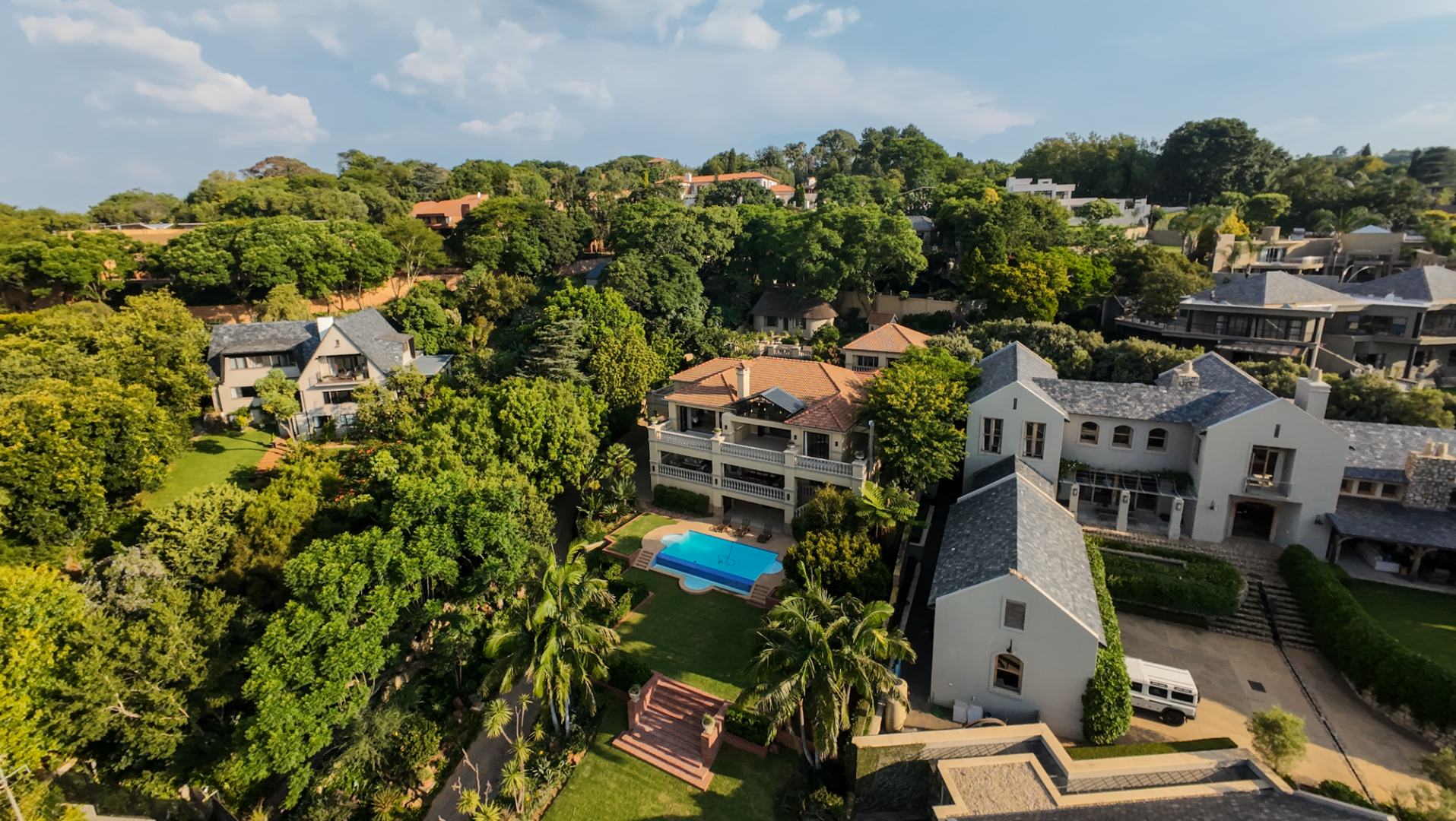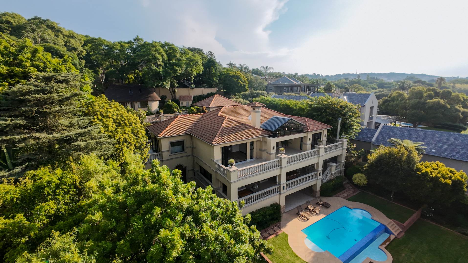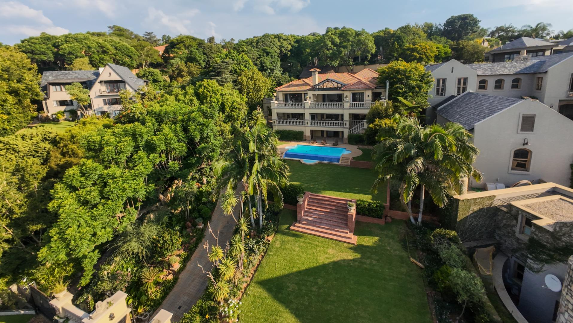 Set within a prestigious estate in Waterkloof Ridge, this remarkable six bedroom mansion with a separate cottage offers space, views, and a lifestyle designed around entertaining and comfort.