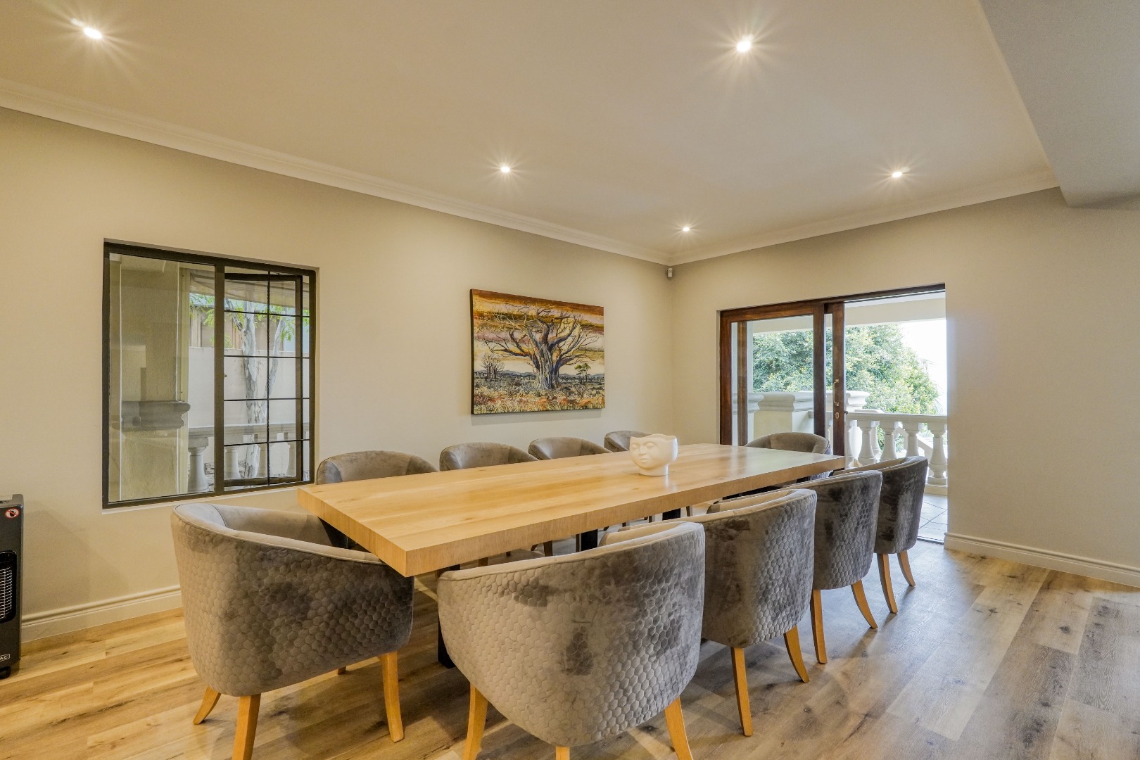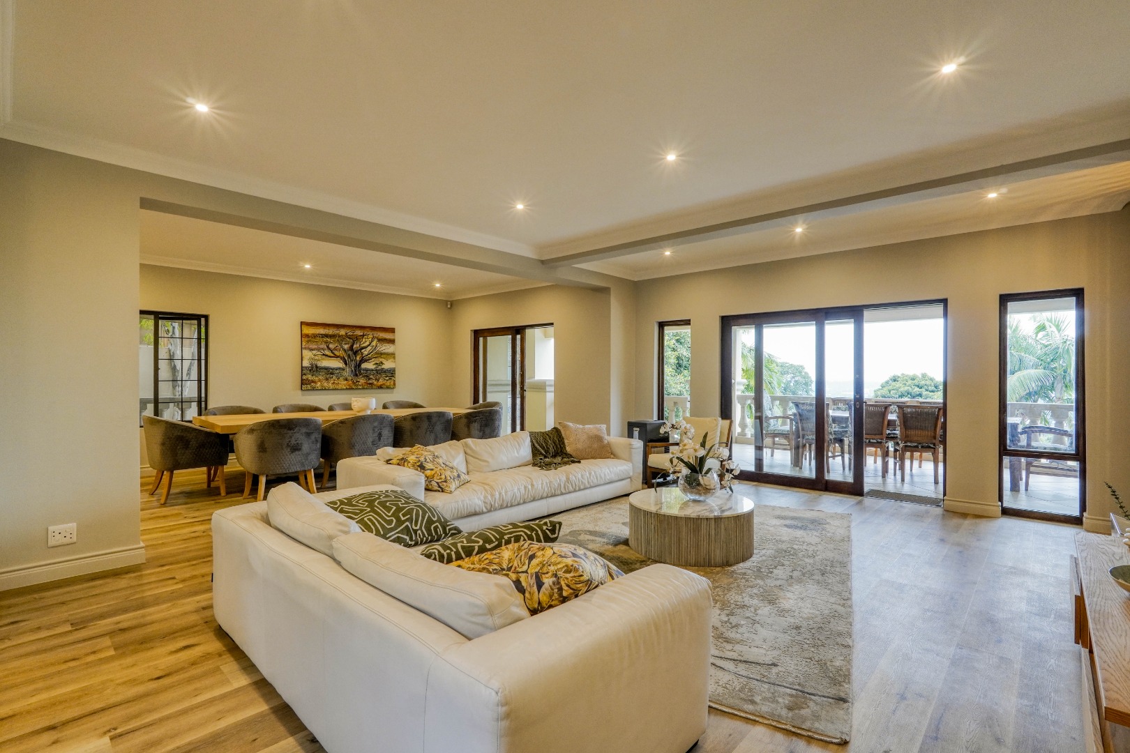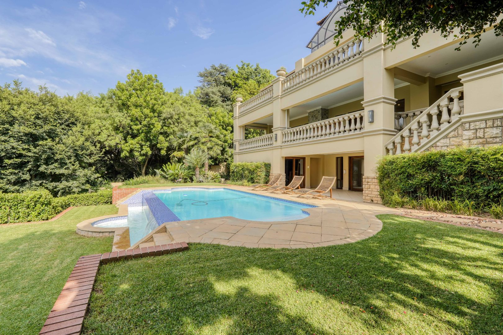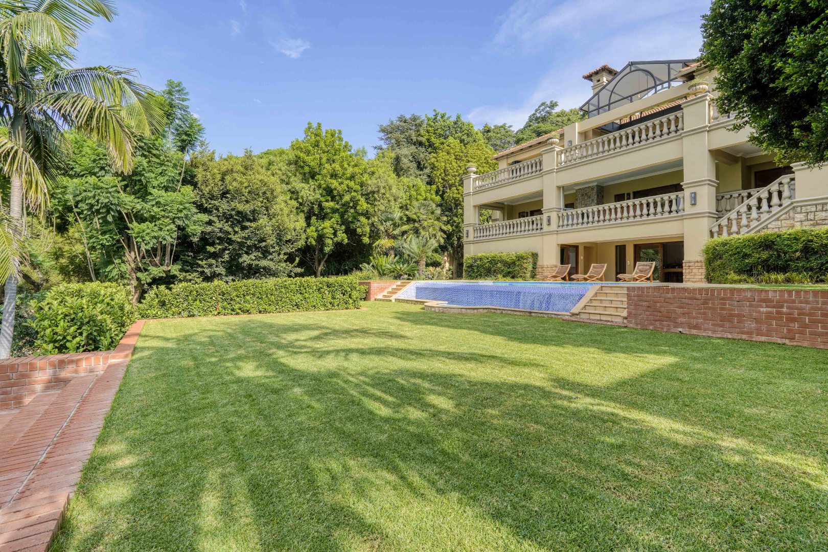 Set within a prestigious estate in Waterkloof Ridge, this remarkable six bedroom mansion with a separate cottage offers space, views, and a lifestyle designed around entertaining and comfort.
