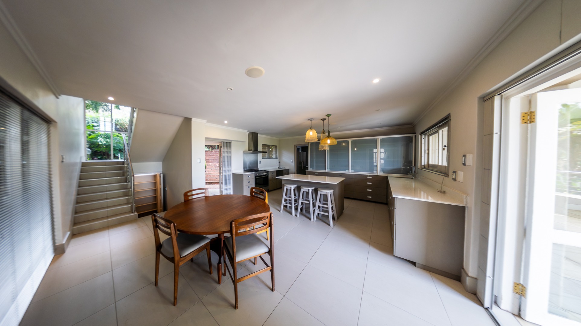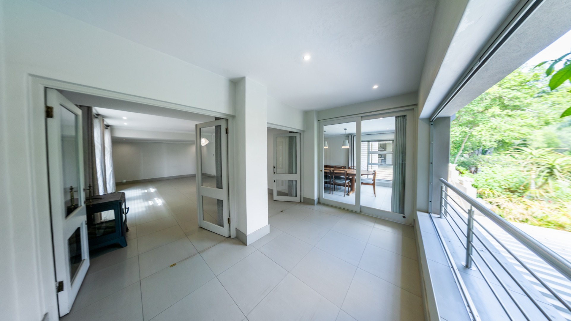 An expansive ground-floor patio features a built-in gas braai for effortless entertaining.