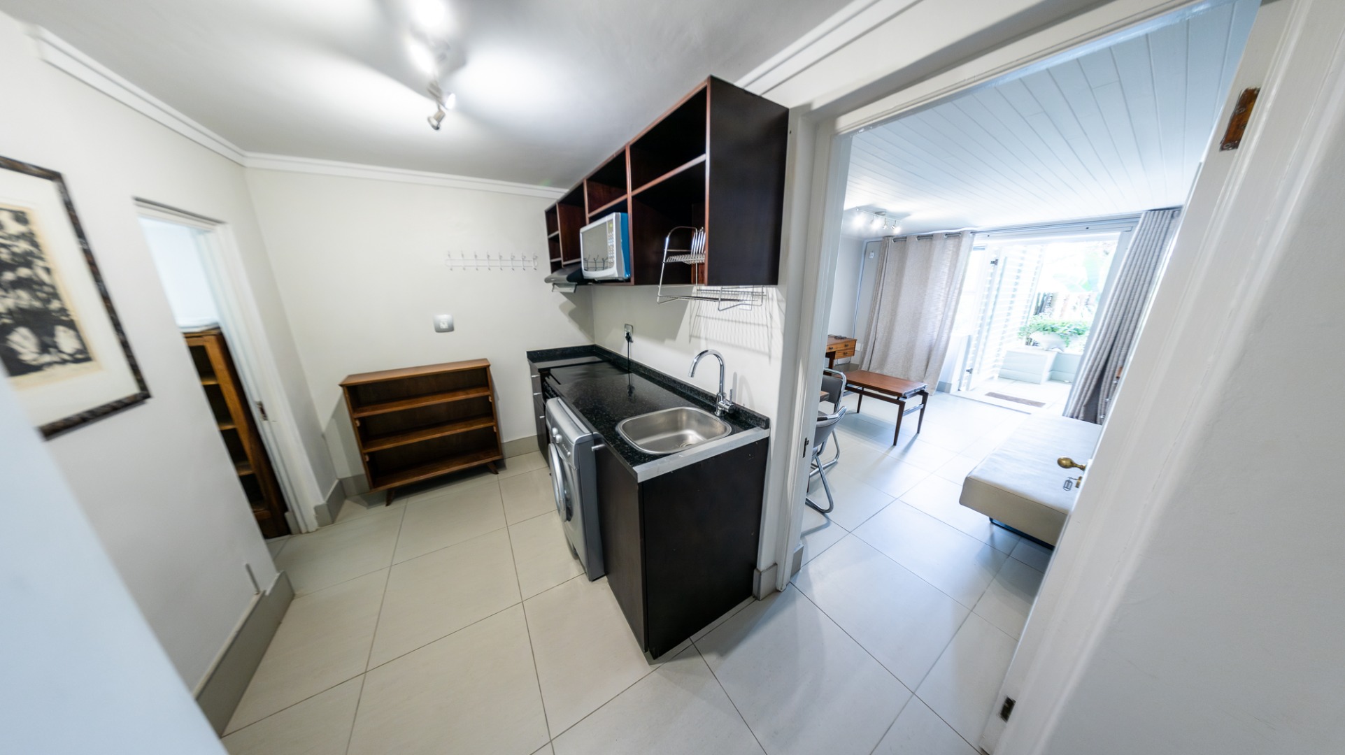 Includes a dedicated living area, a small kitchen with a pantry, and its own private garden and patio.
