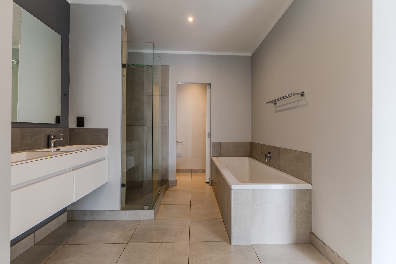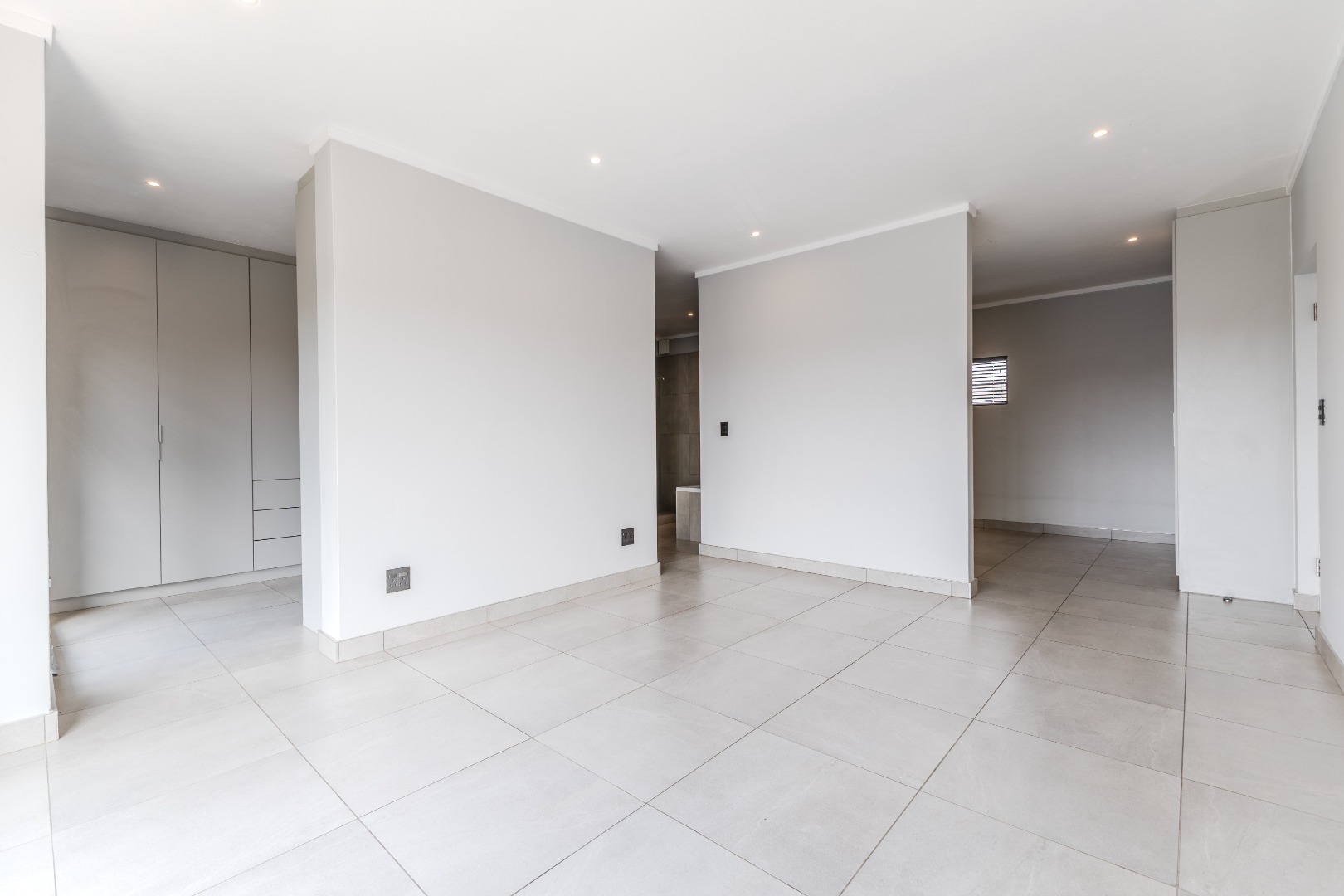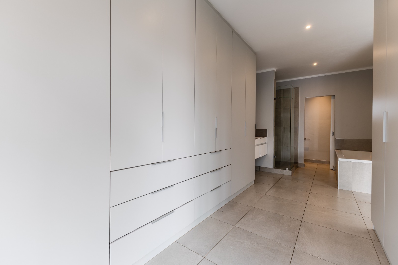 The main bedroom is exceptionally spacious, offering a private pajama lounge or study, a walk-in closet, and a luxurious en-suite bathroom. Two additional bedrooms are well-sized with built-in cupboards, one of which is en-suite.